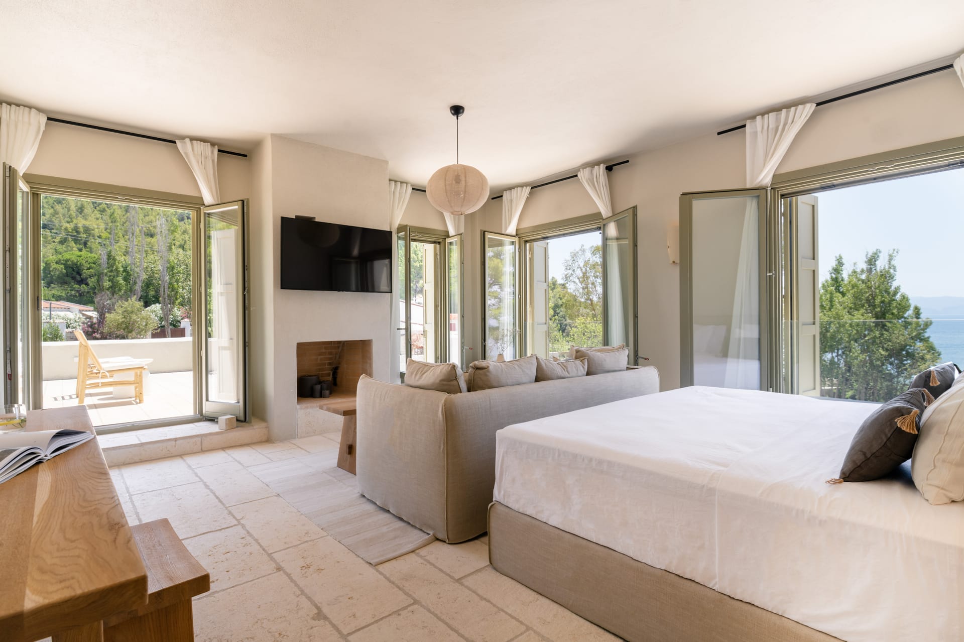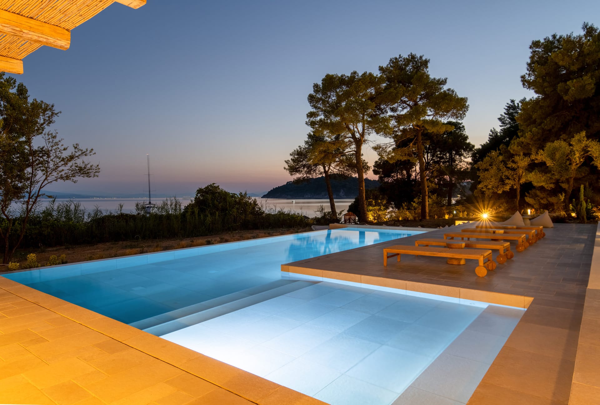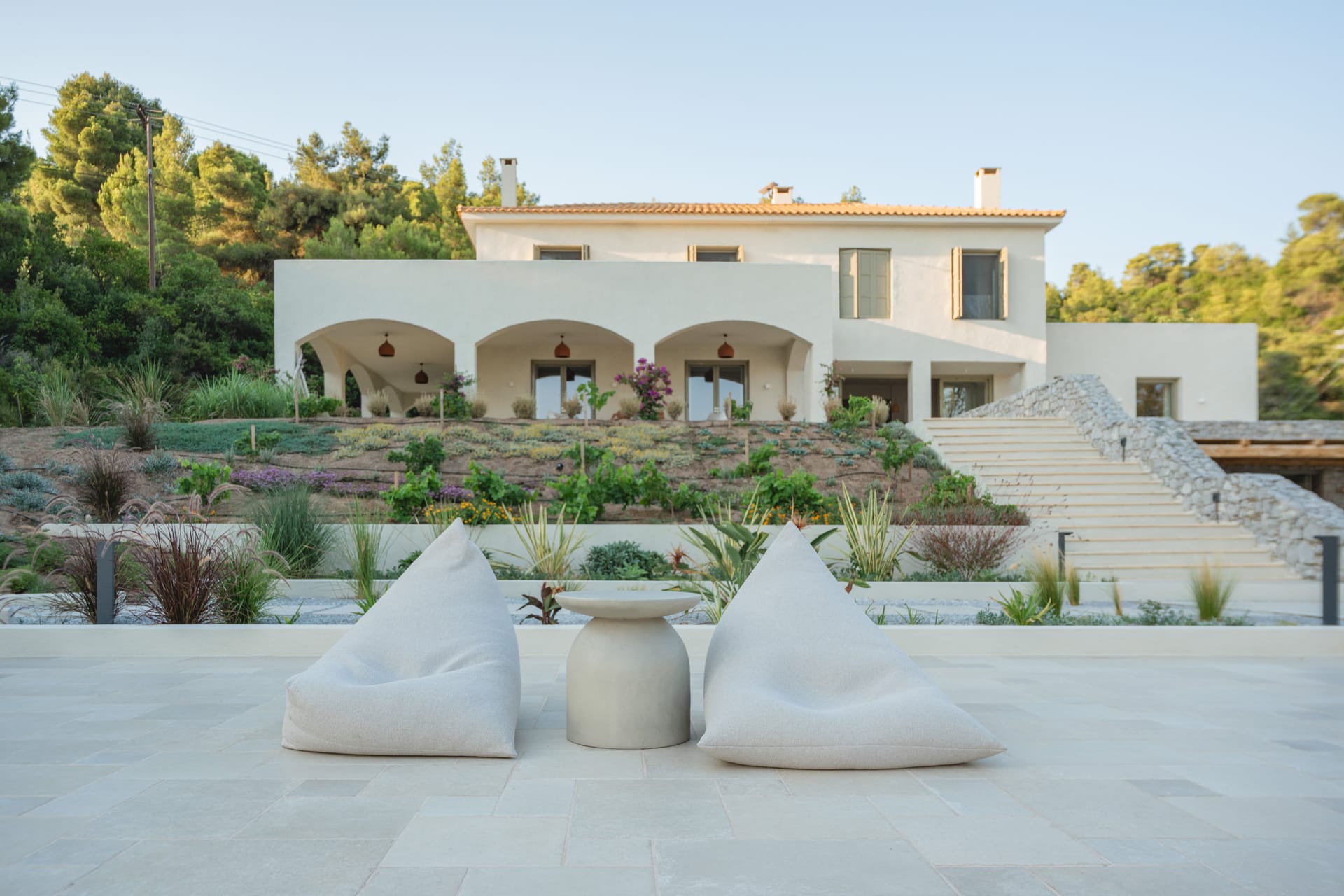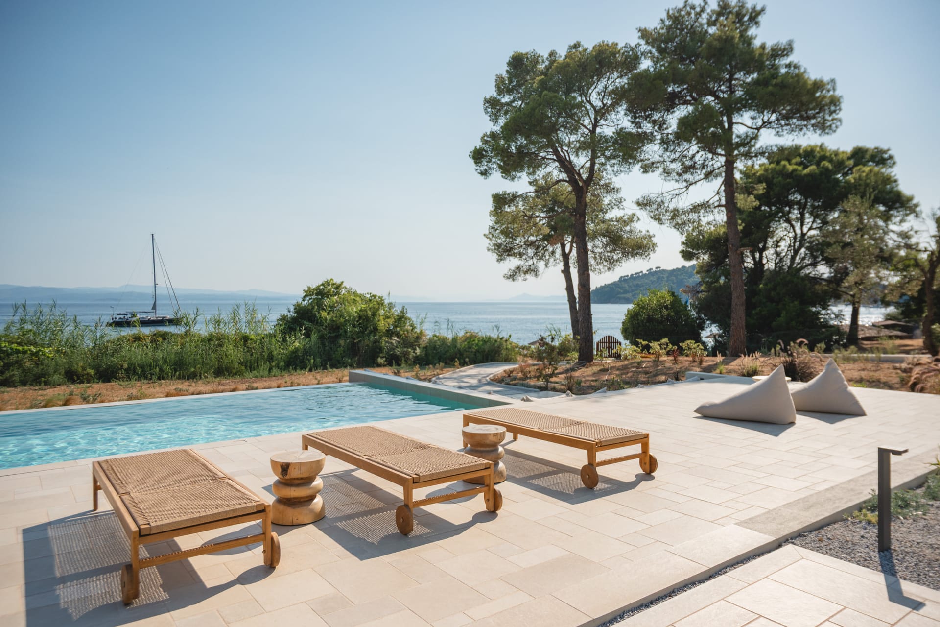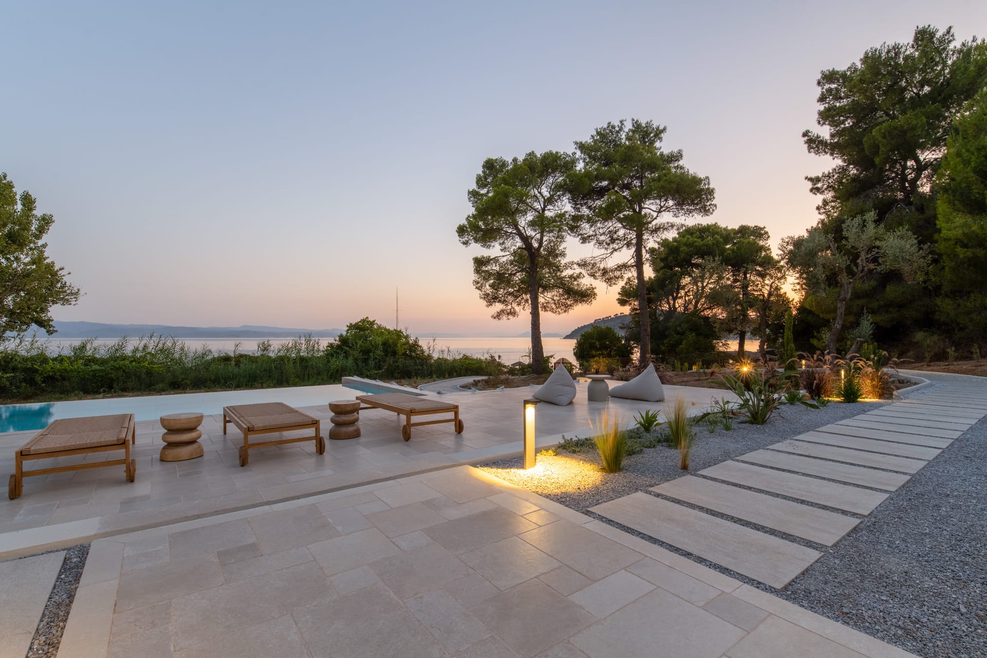 Villa Delta Skiathos is a superior beachfront retreat, with its entrance just steps from the golden sands of Maratha Beach—one of the island’s most serene and beautiful shores. Offering 600 sqm of elegantly designed living space, this exclusive villa combines luxury, comfort, and breathtaking views of both the Aegean Sea and the lush surrounding mountains.