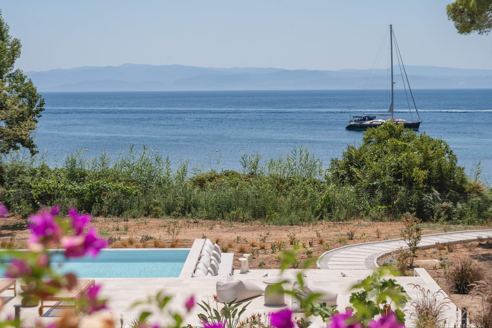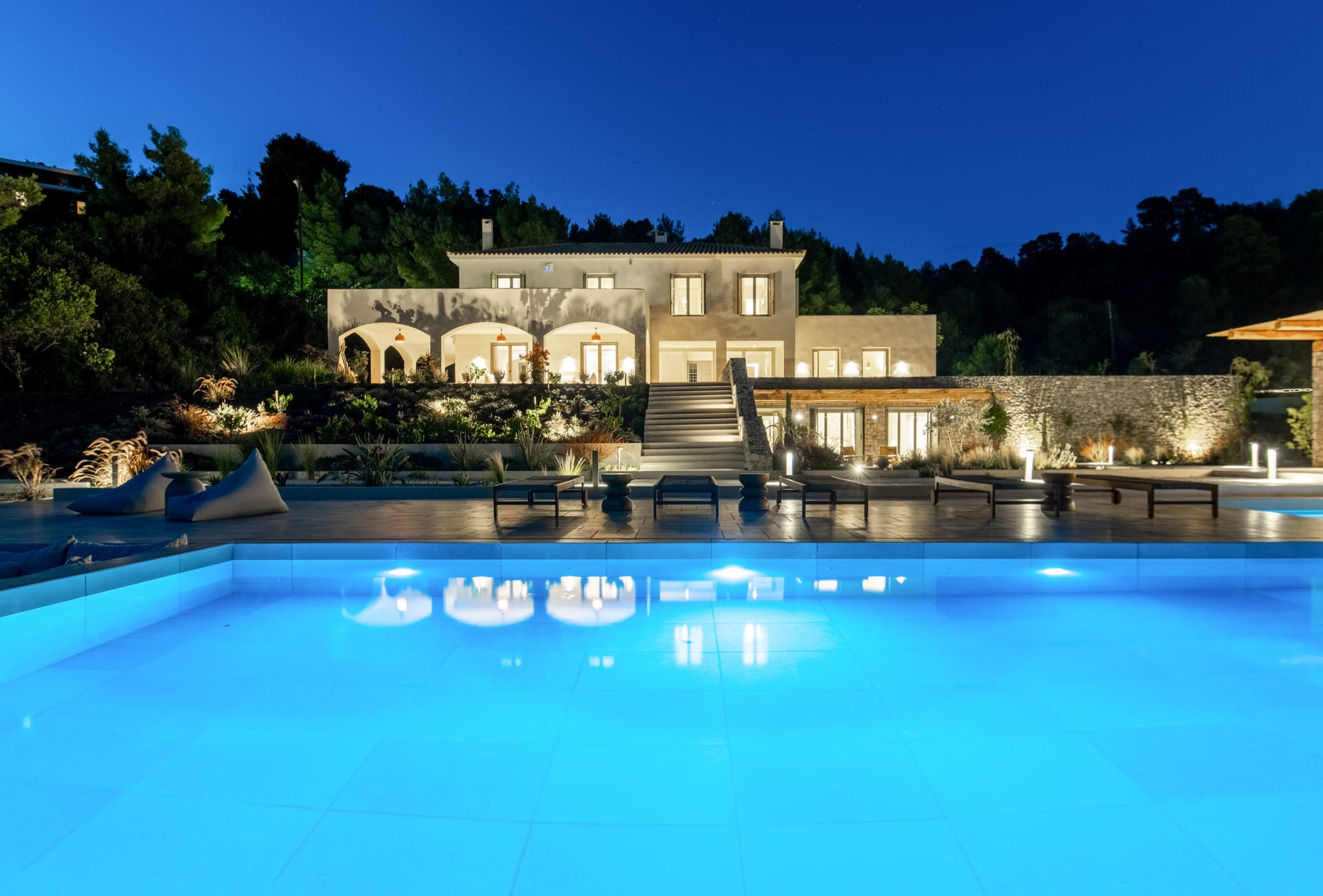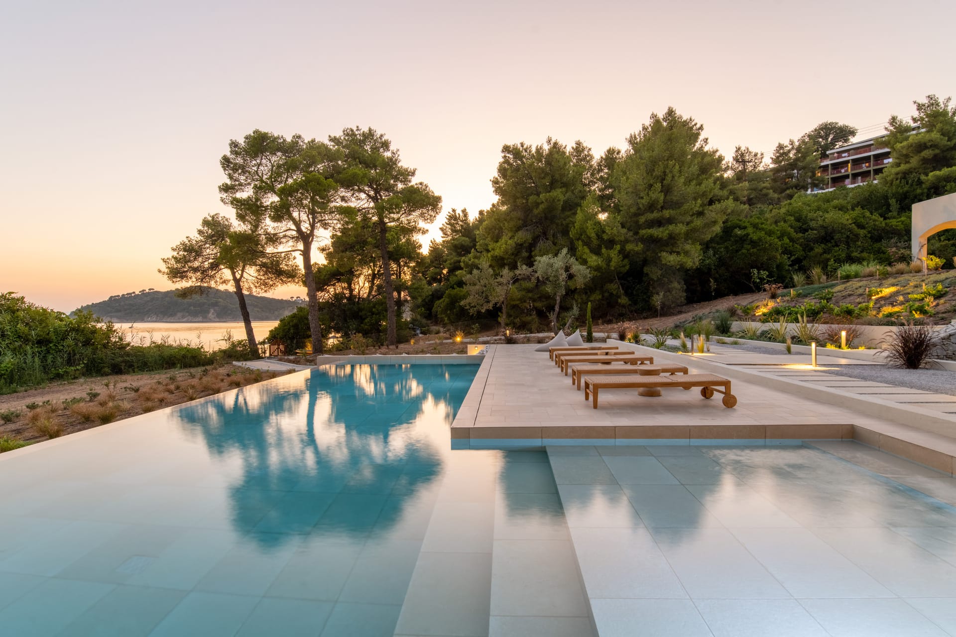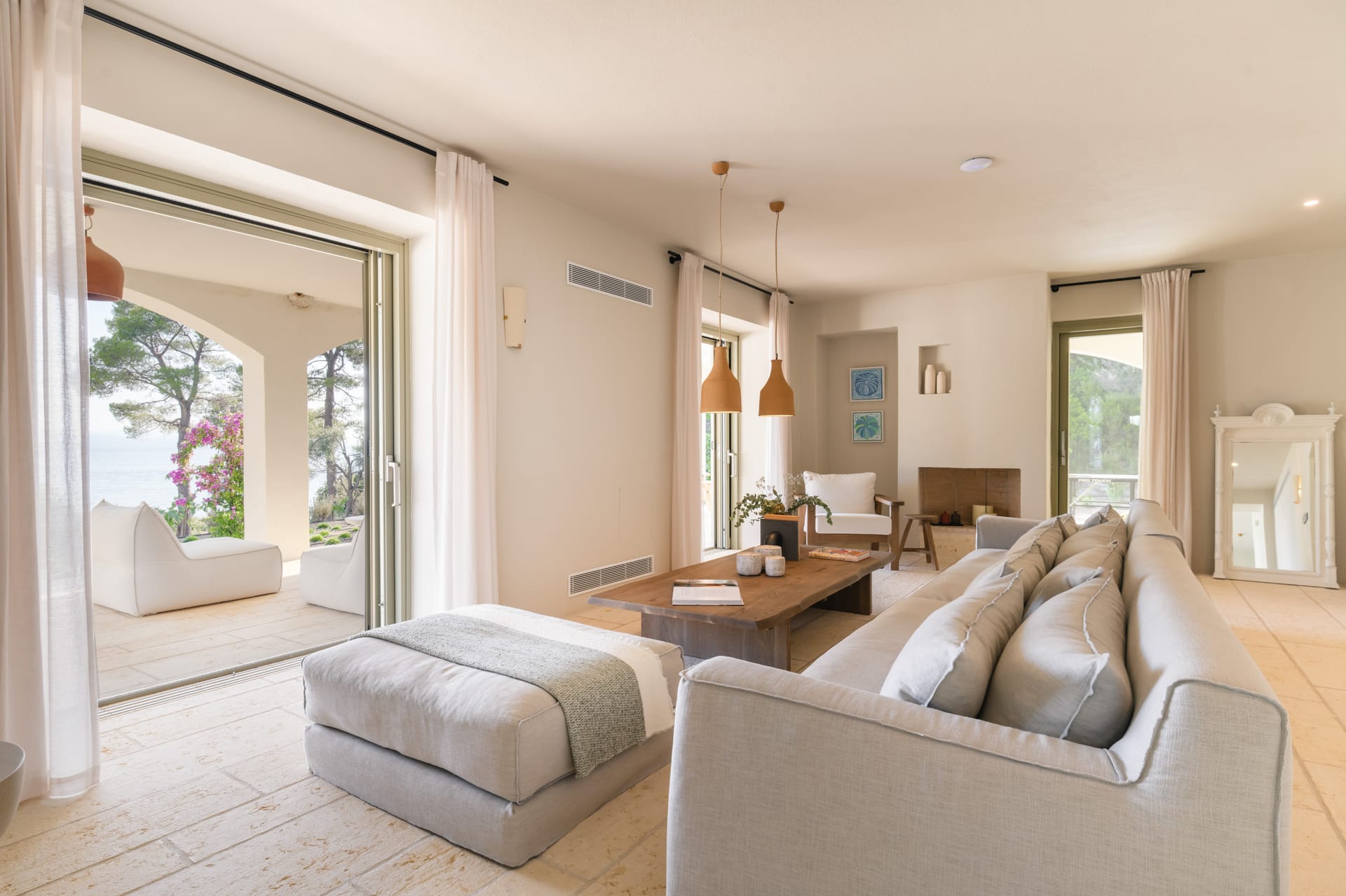 Villa Delta Skiathos is a superior beachfront retreat, with its entrance just steps from the golden sands of Maratha Beach—one of the island’s most serene and beautiful shores. Offering 600 sqm of elegantly designed living space, this exclusive villa combines luxury, comfort, and breathtaking views of both the Aegean Sea and the lush surrounding mountains.