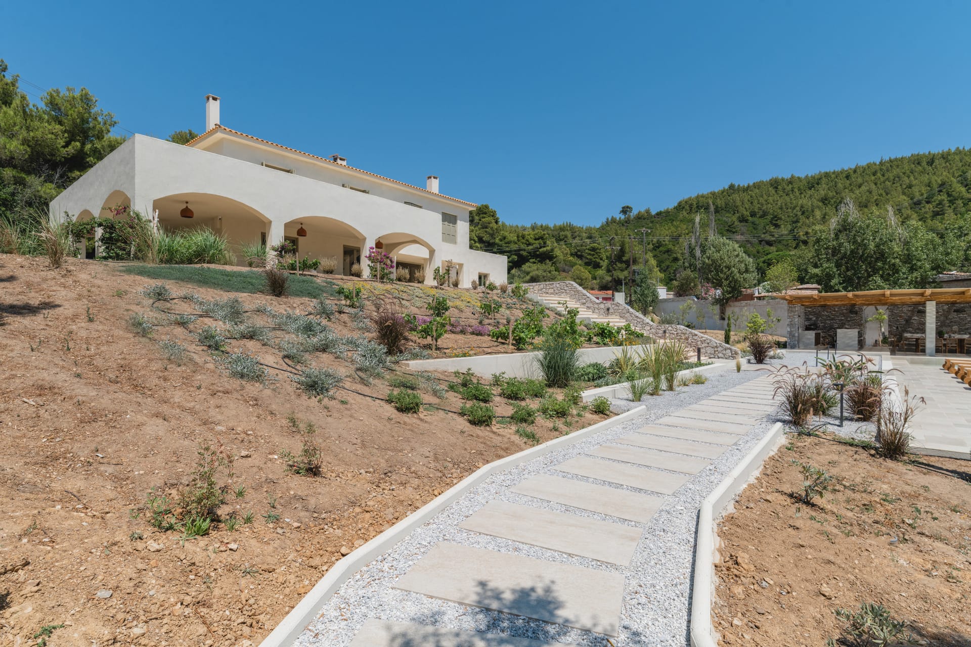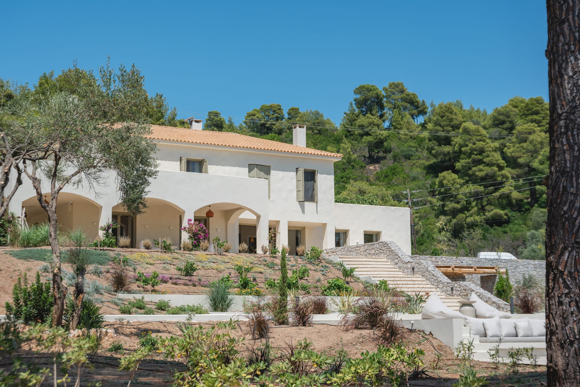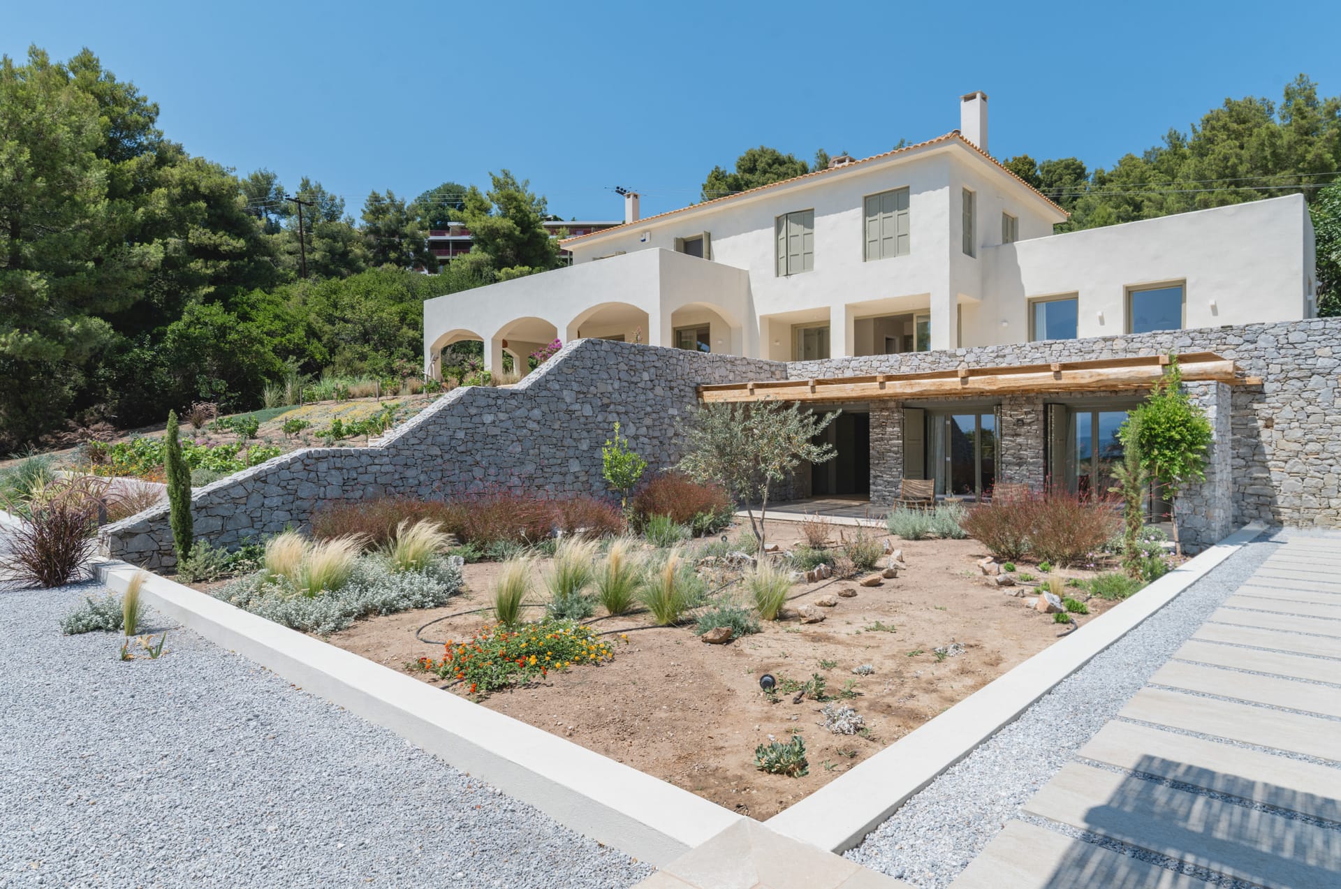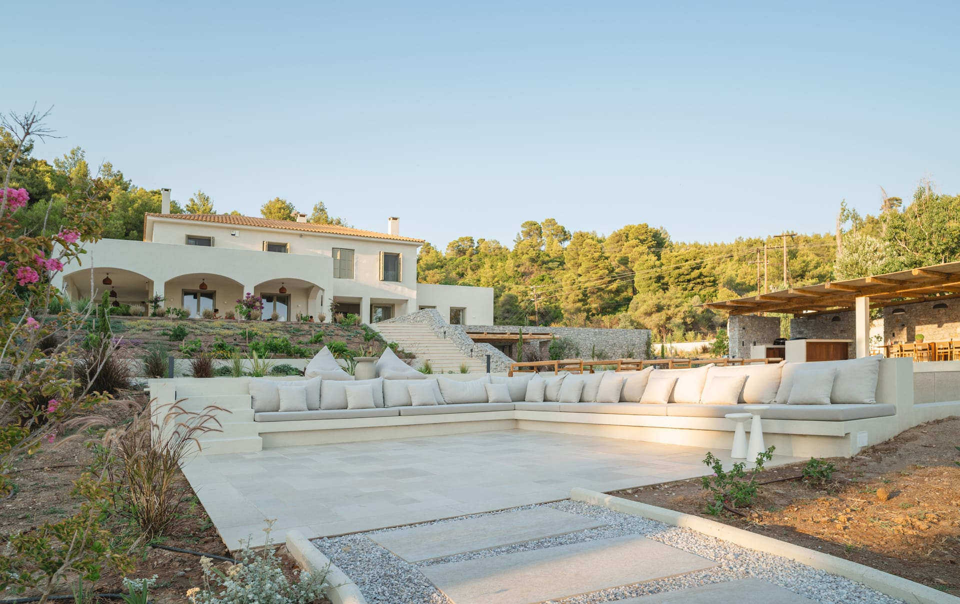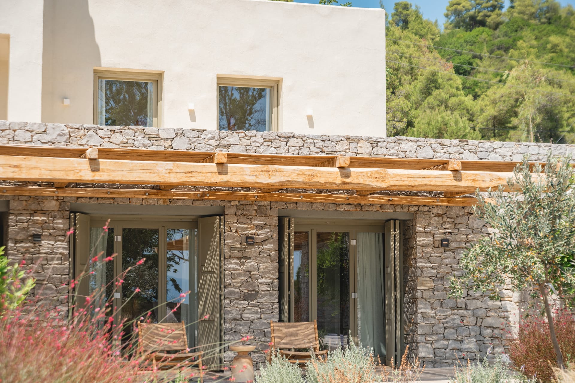 Villa Delta Skiathos is a superior beachfront retreat, with its entrance just steps from the golden sands of Maratha Beach—one of the island’s most serene and beautiful shores. Offering 600 sqm of elegantly designed living space, this exclusive villa combines luxury, comfort, and breathtaking views of both the Aegean Sea and the lush surrounding mountains.