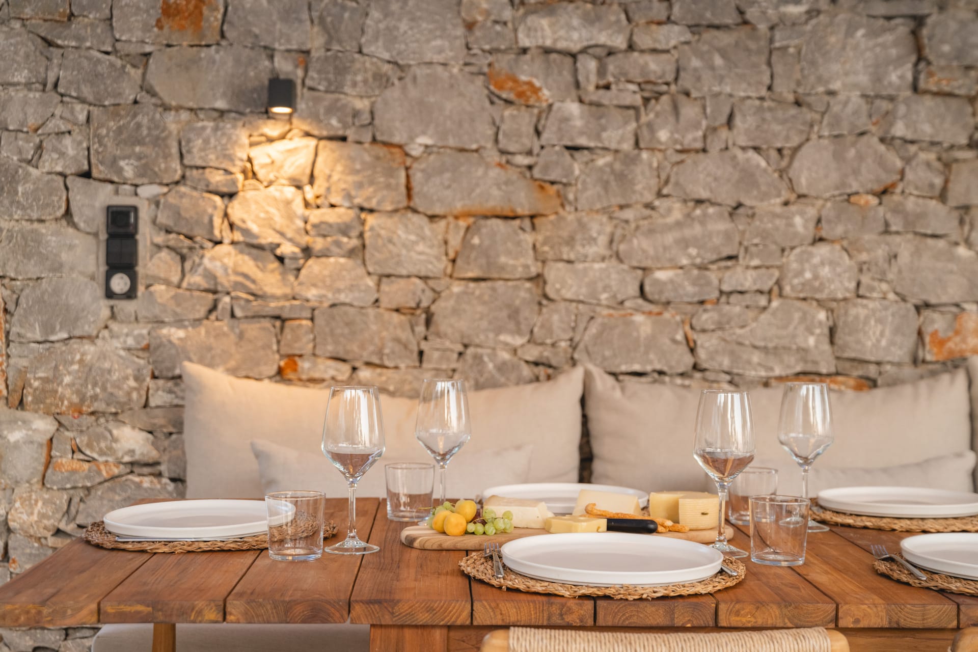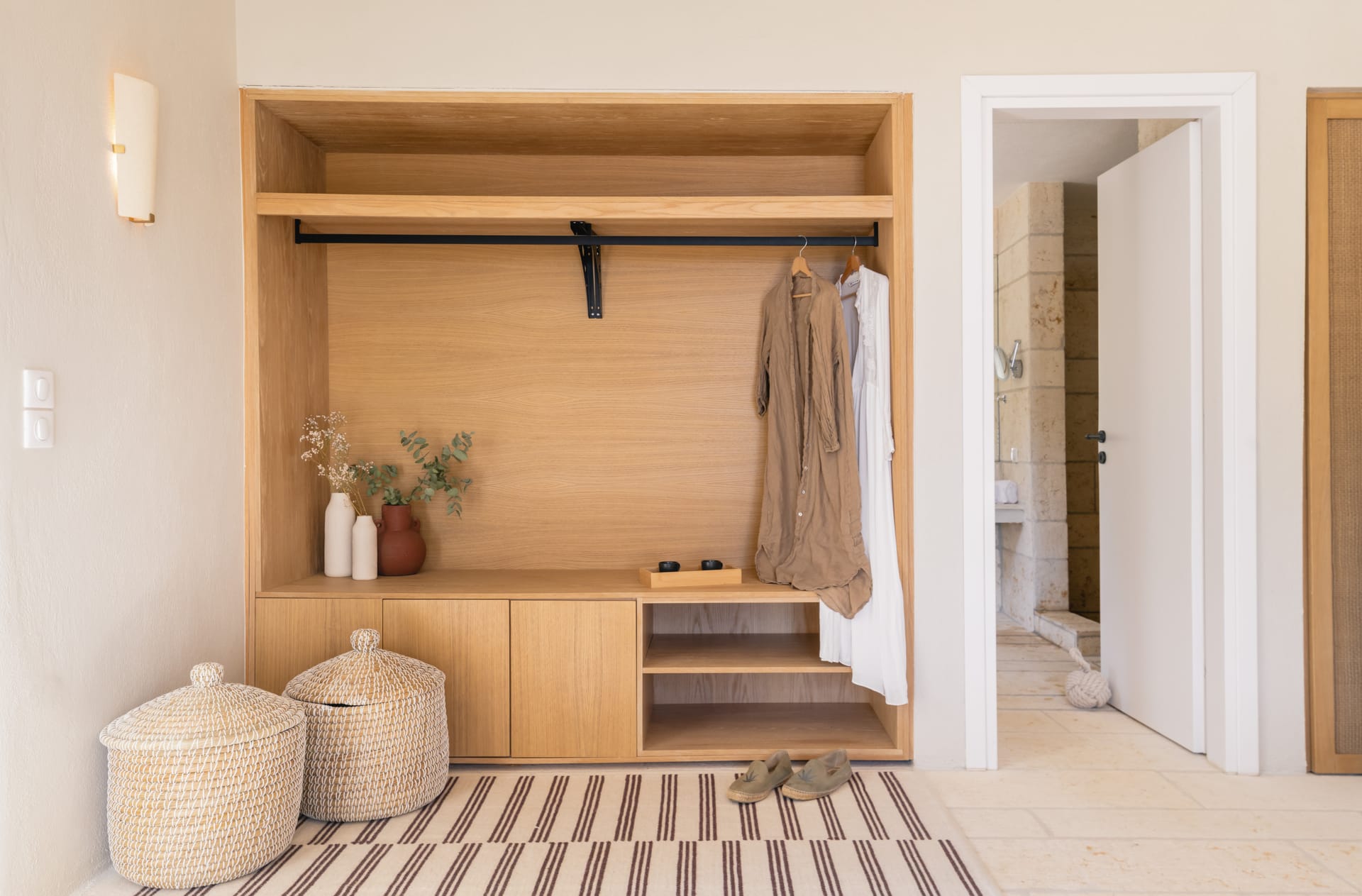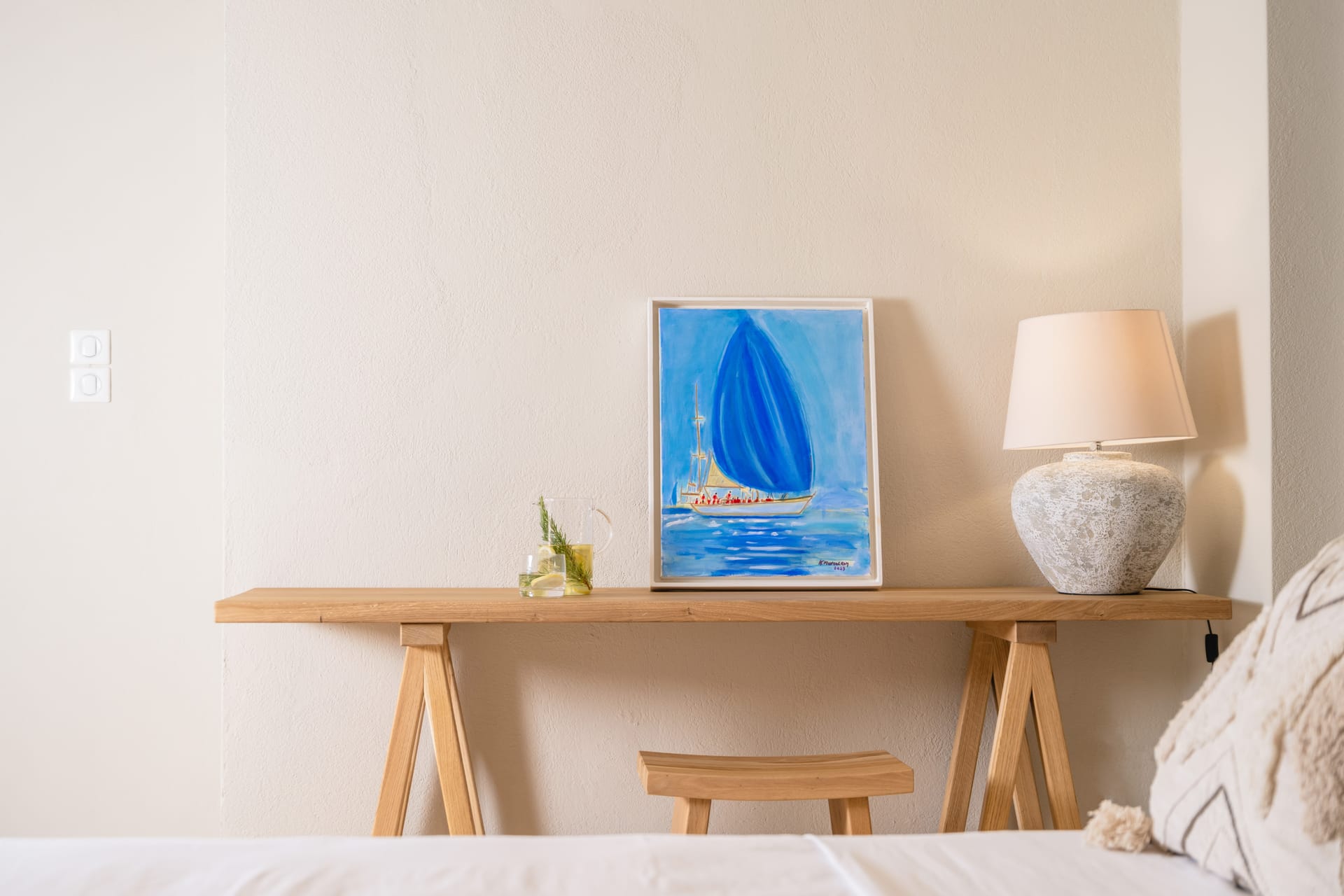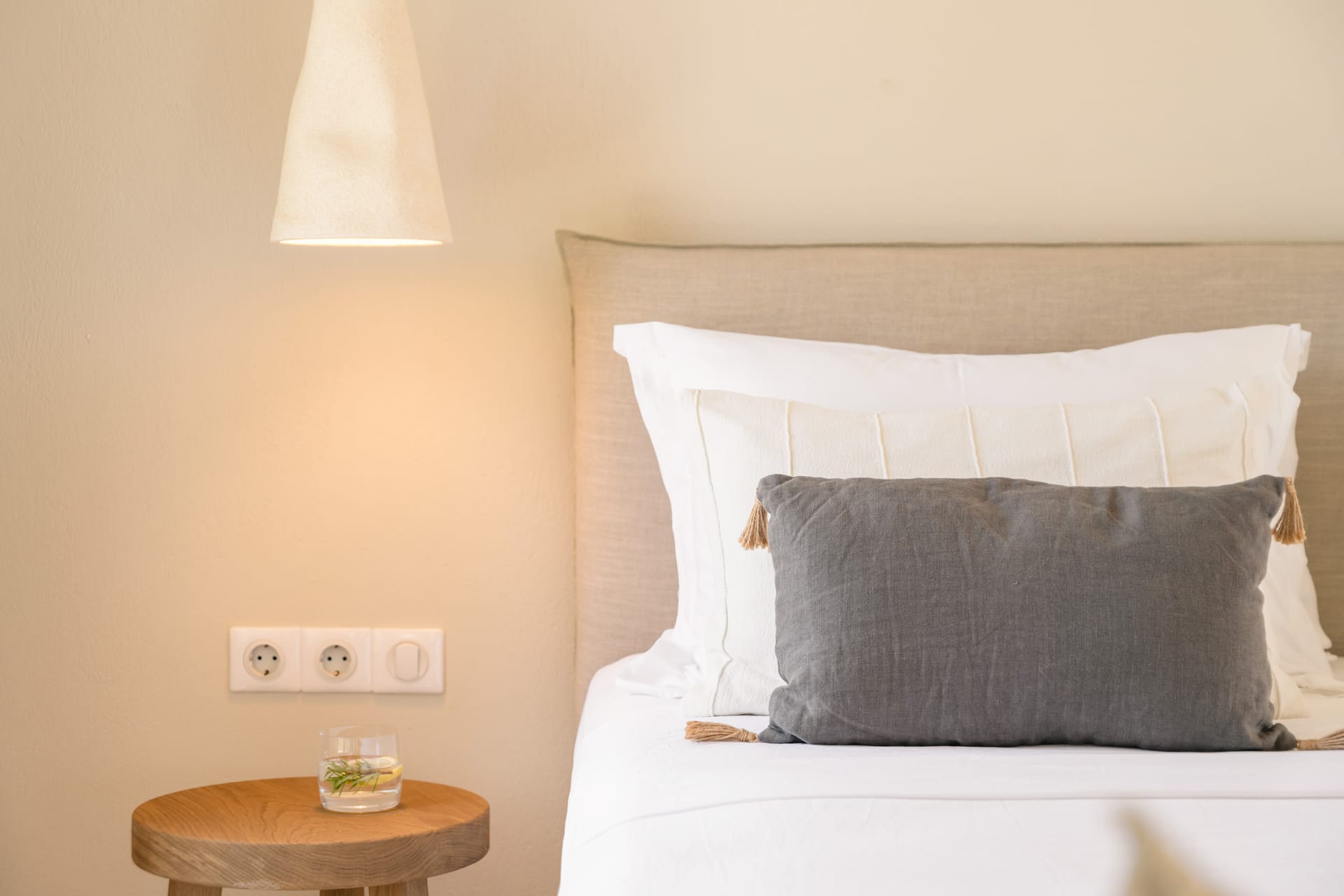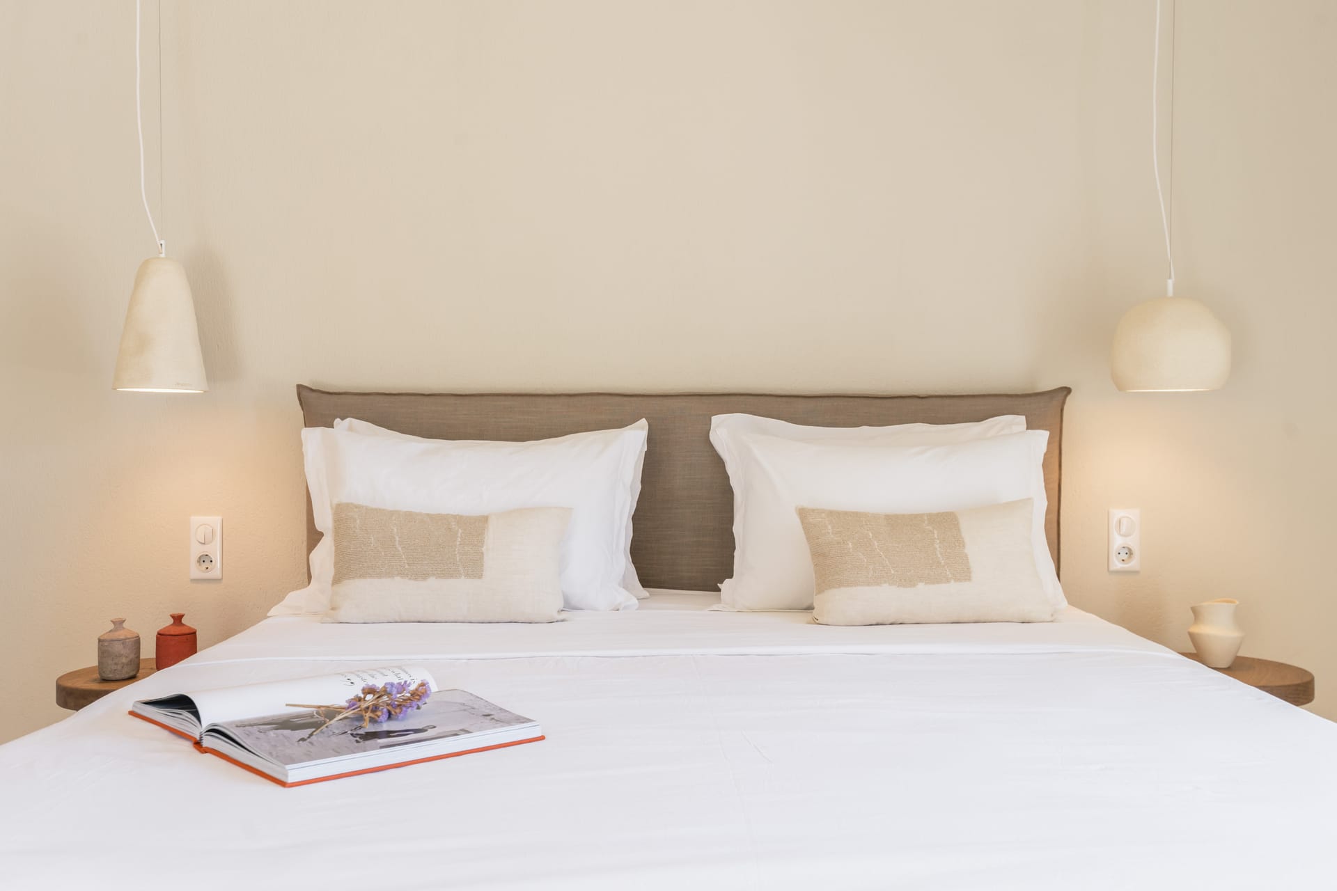 Inside, the villa features a bright and airy living room and a fully equipped kitchen, perfect for preparing meals with local ingredients. Accommodation includes six beautifully appointed bedrooms: five with queen-size beds—one of which also features a double sofa bed, making it ideal as a family room if desired—and a sixth bedroom with two single beds. With eight full bathrooms plus an additional WC, every guest enjoys privacy and convenience. For those who like to stay active, a dedicated gym space with its own bathroom is at your disposal.