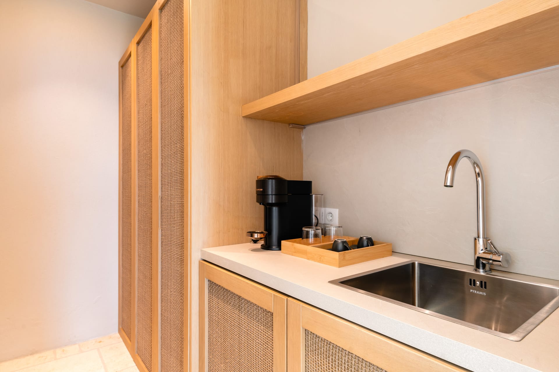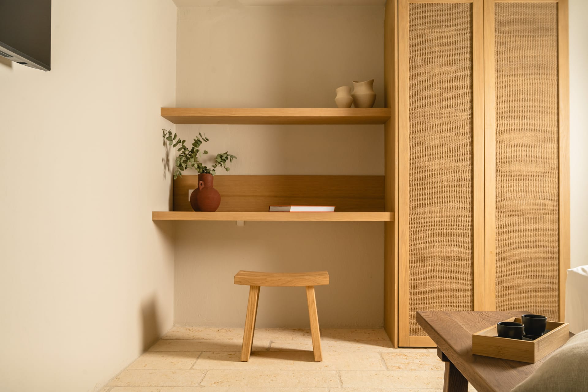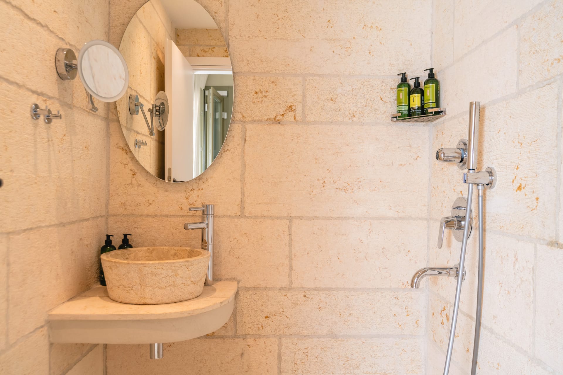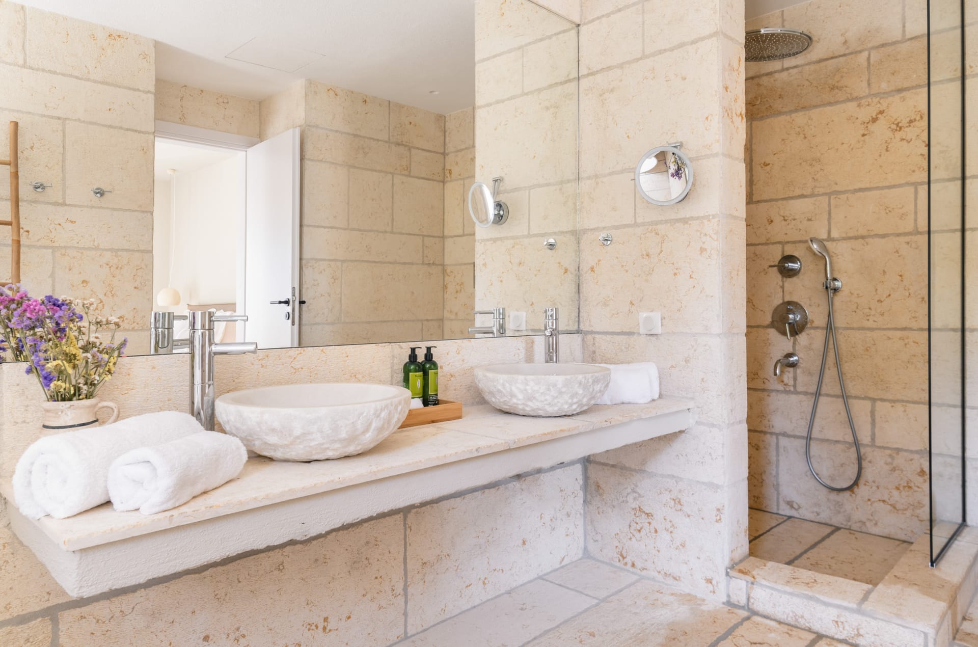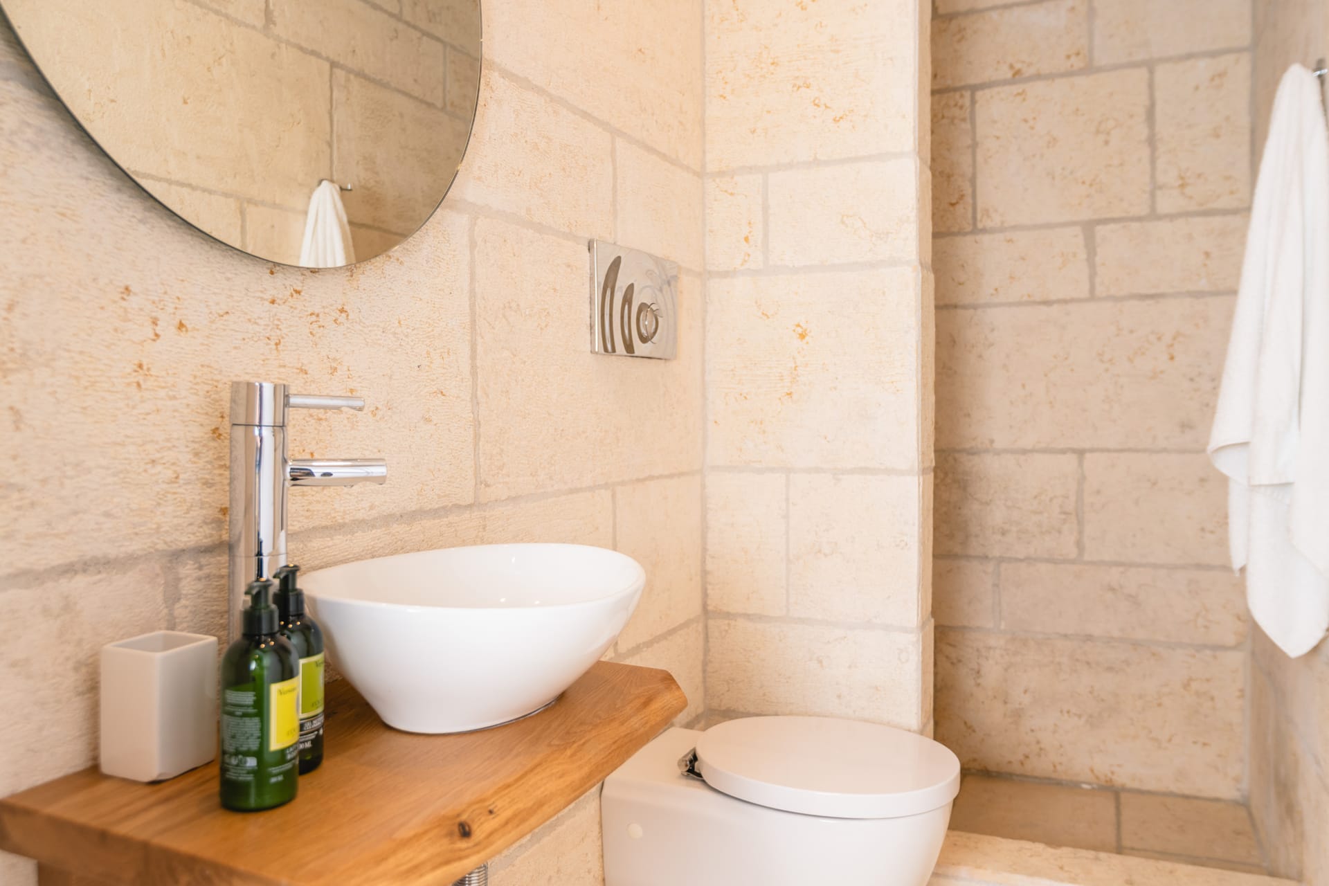 Inside, the villa features a bright and airy living room and a fully equipped kitchen, perfect for preparing meals with local ingredients. Accommodation includes six beautifully appointed bedrooms: five with queen-size beds—one of which also features a double sofa bed, making it ideal as a family room if desired—and a sixth bedroom with two single beds. With eight full bathrooms plus an additional WC, every guest enjoys privacy and convenience. For those who like to stay active, a dedicated gym space with its own bathroom is at your disposal.