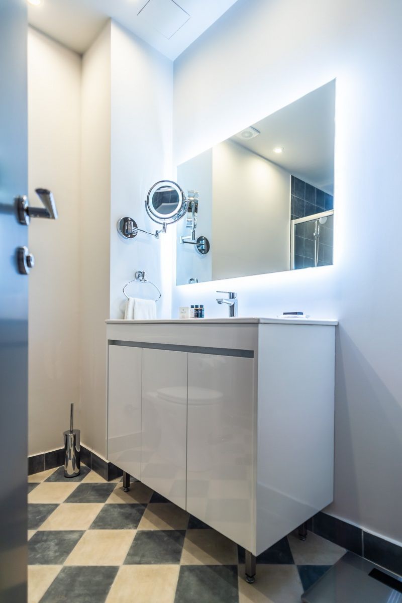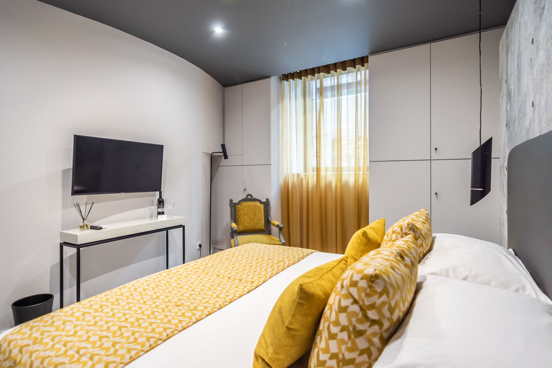 Our Double Deluxe Rooms can comfortable accommodate 2 guests and offers city views. It features a queen-size bed and a rainforest shower; the linens in this suite are dressed in comforting and distinct dark yellow hues. In the bathroom, guests will find a range of branded Zealots of Nature wellness products, a hairdryer and a flat iron. There’s also bespoke furniture, a minibar, a flatscreen TV, and a Bluetooth speaker. The room features a fully equipped kitchenette, an Espresso bar and safety deposit box. All bedrooms come with free Wi-Fi.These types of rooms are located at the semi-basement of the hotel.