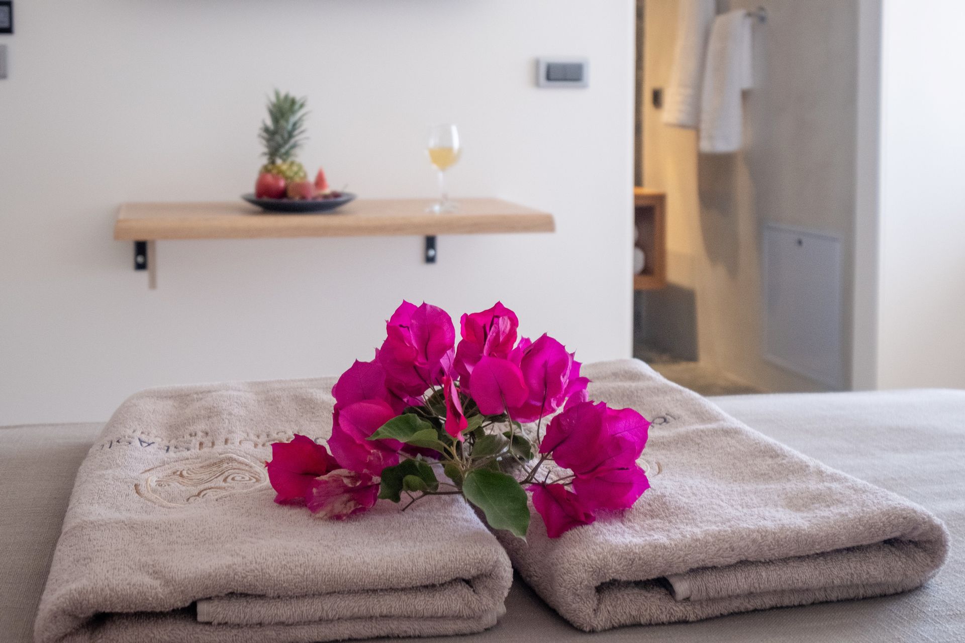 Opening into large and elegant spaces, our Superior Suites are arranged with a comfortable king size bed, laid out with hypoallergenic, anatomic mattress and topper, a lovely sitting area with a double sofa that can accommodate up to two other people, and a modern bathroom with marble tiles, a natural stone washbasin and a rain-style shower or a bathtub. Moreover, the Superior Suites offer you a large furnished veranda with scintillating views to the sea, the mountains, and the gardens.