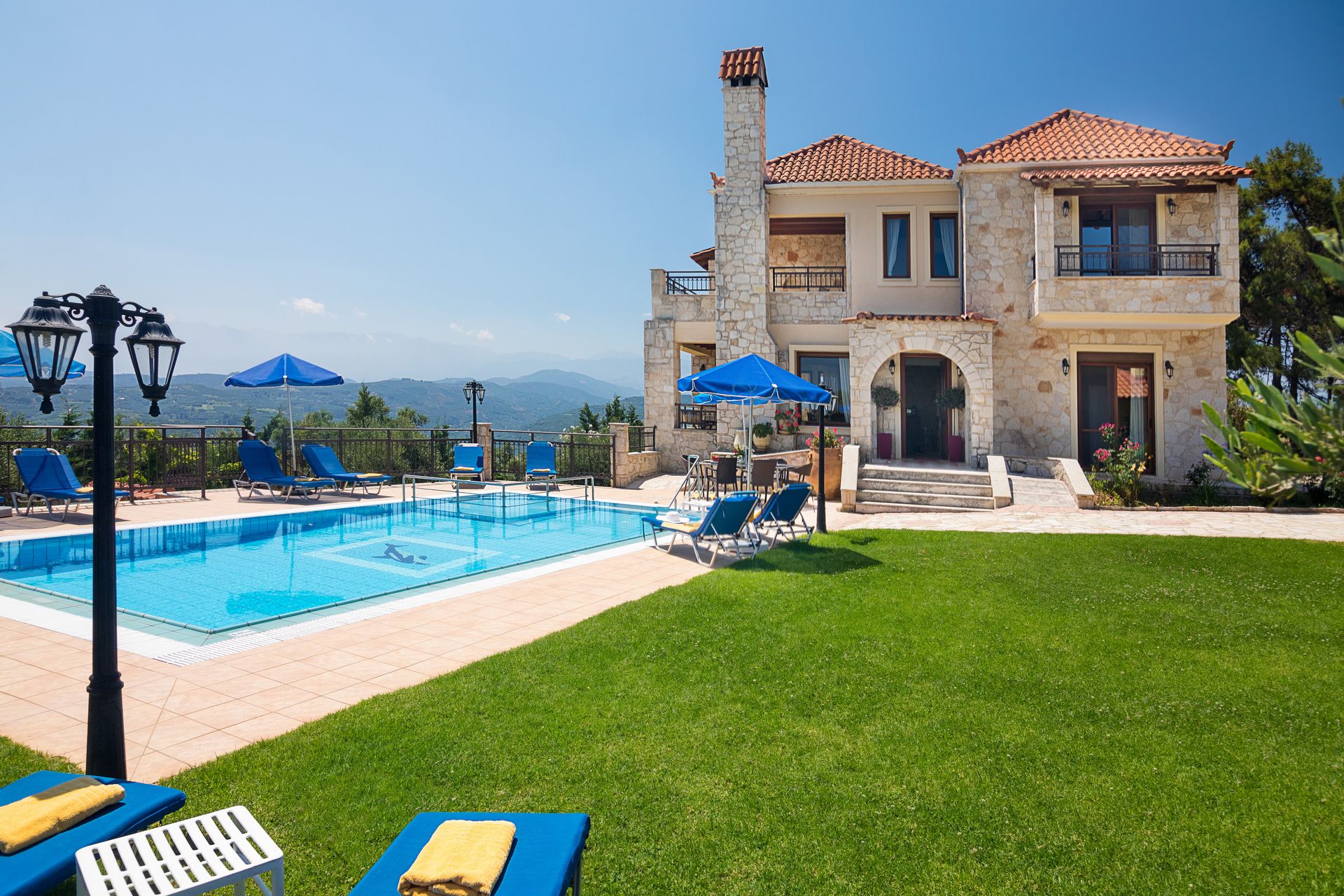 The villa’s outdoor spaces are designed for relaxation and privacy: