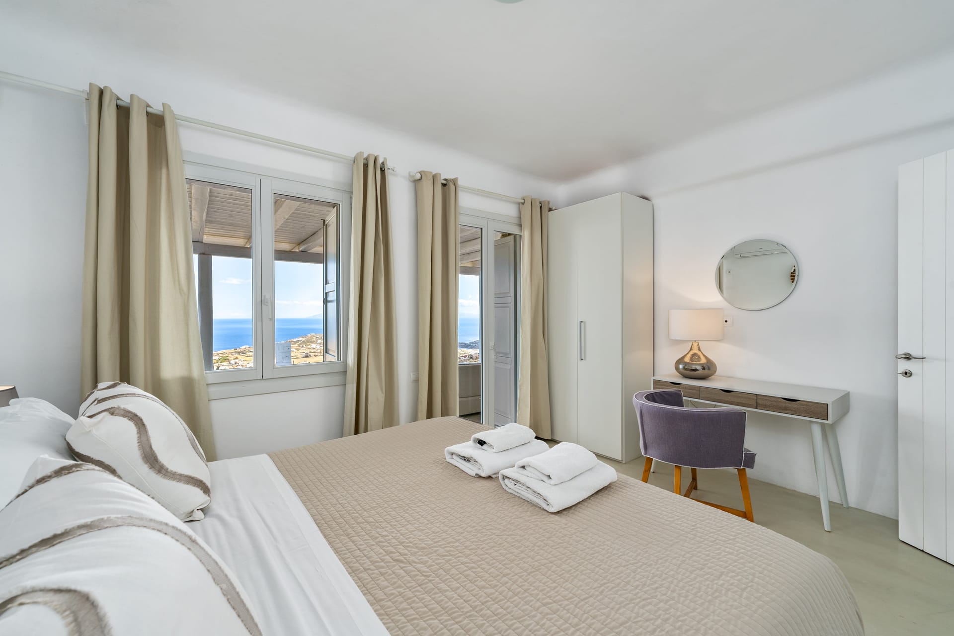 The nearest public transportation stop is 800 meters from the villa, though it’s uphill. We recommend Using our Convenient Private mini van service or renting a car or motorcycle to explore all that Mykonos has to offer—from stunning beaches by day to the vibrant nightlife.