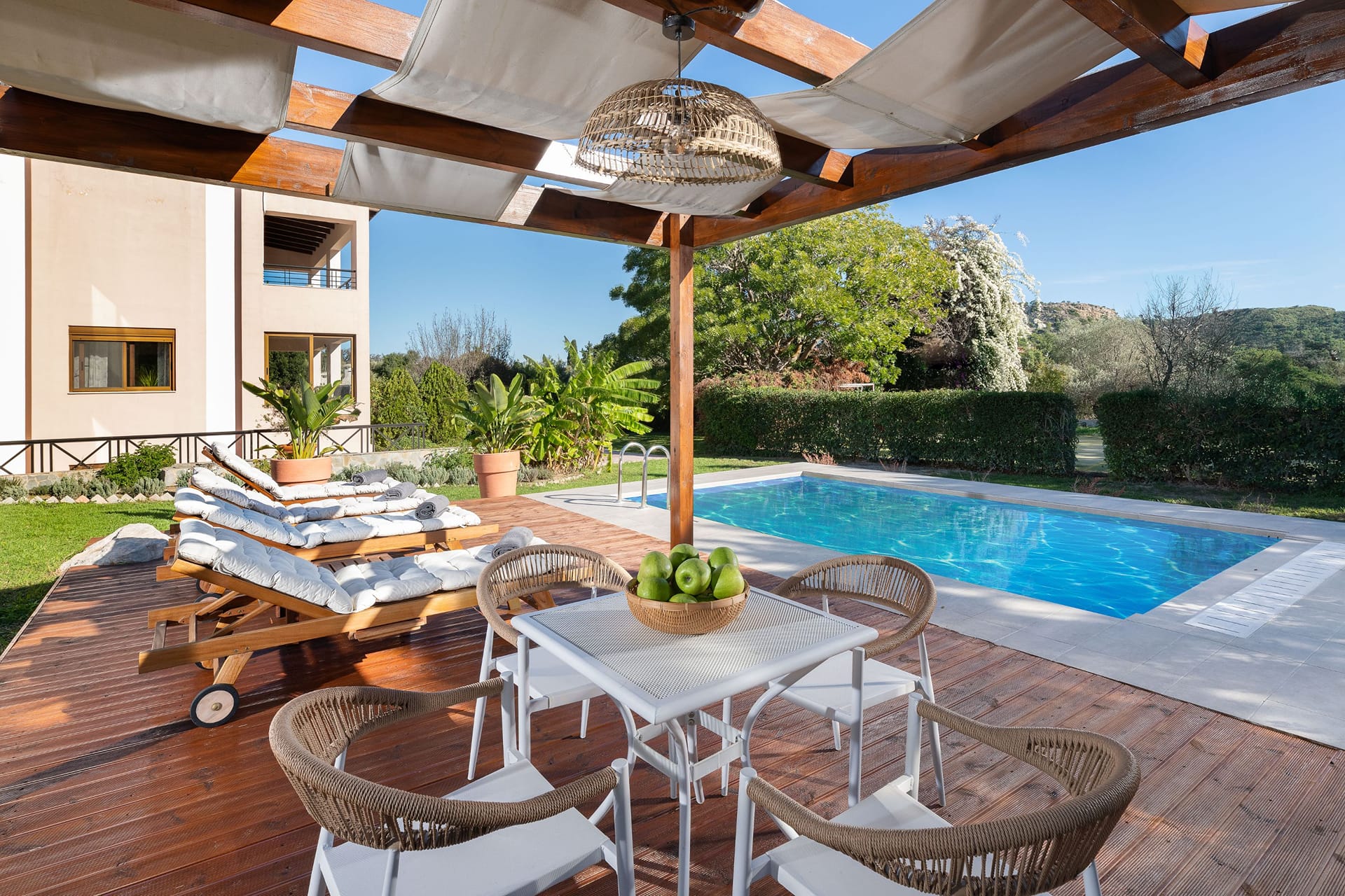 - Open-plan living and dining area with direct access to the pool terrace