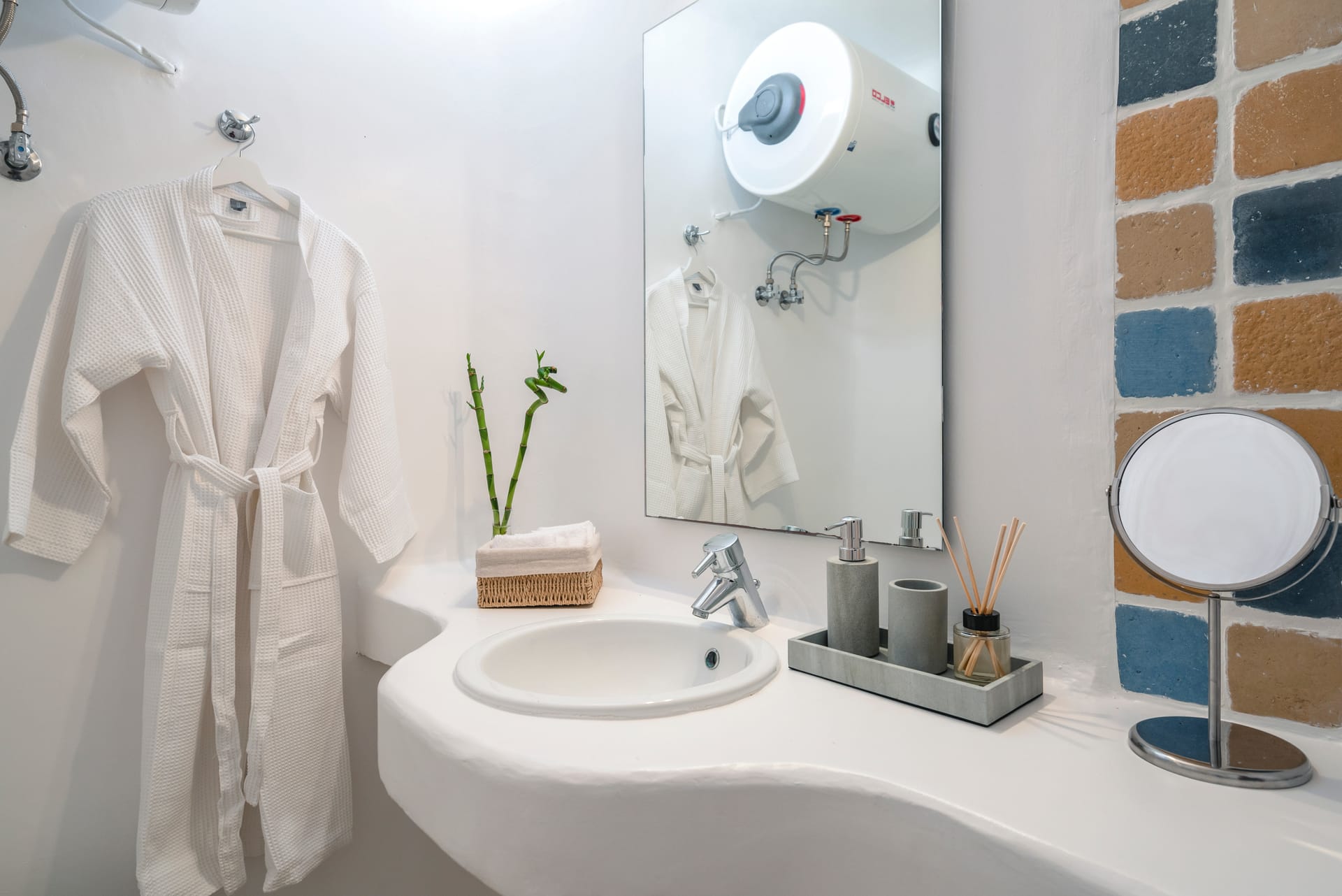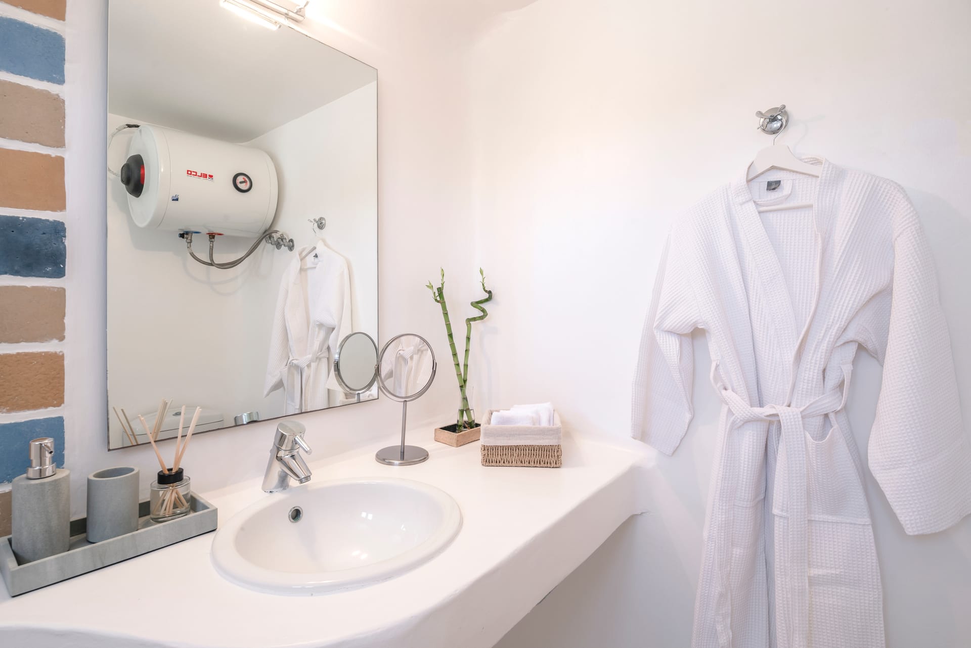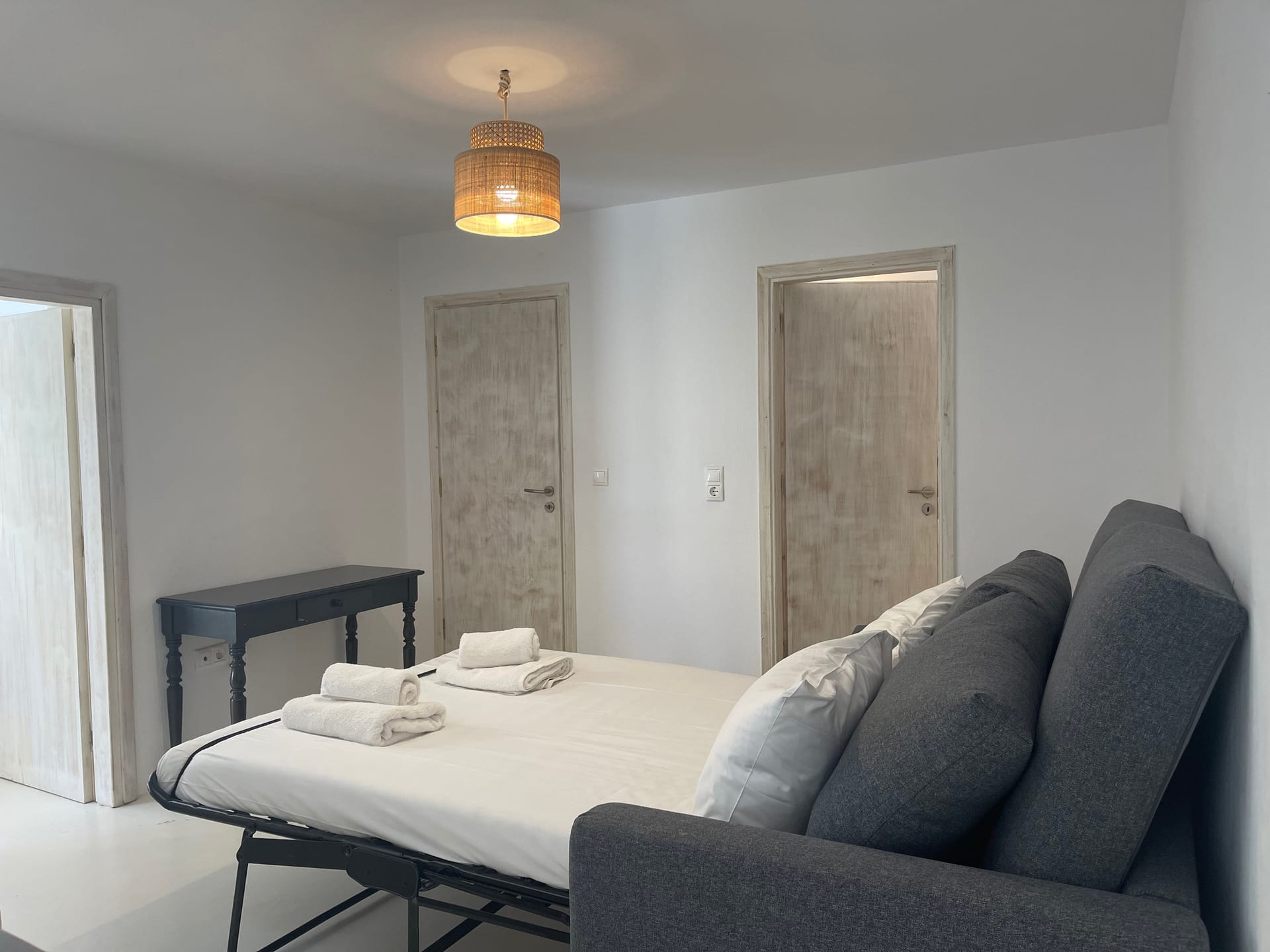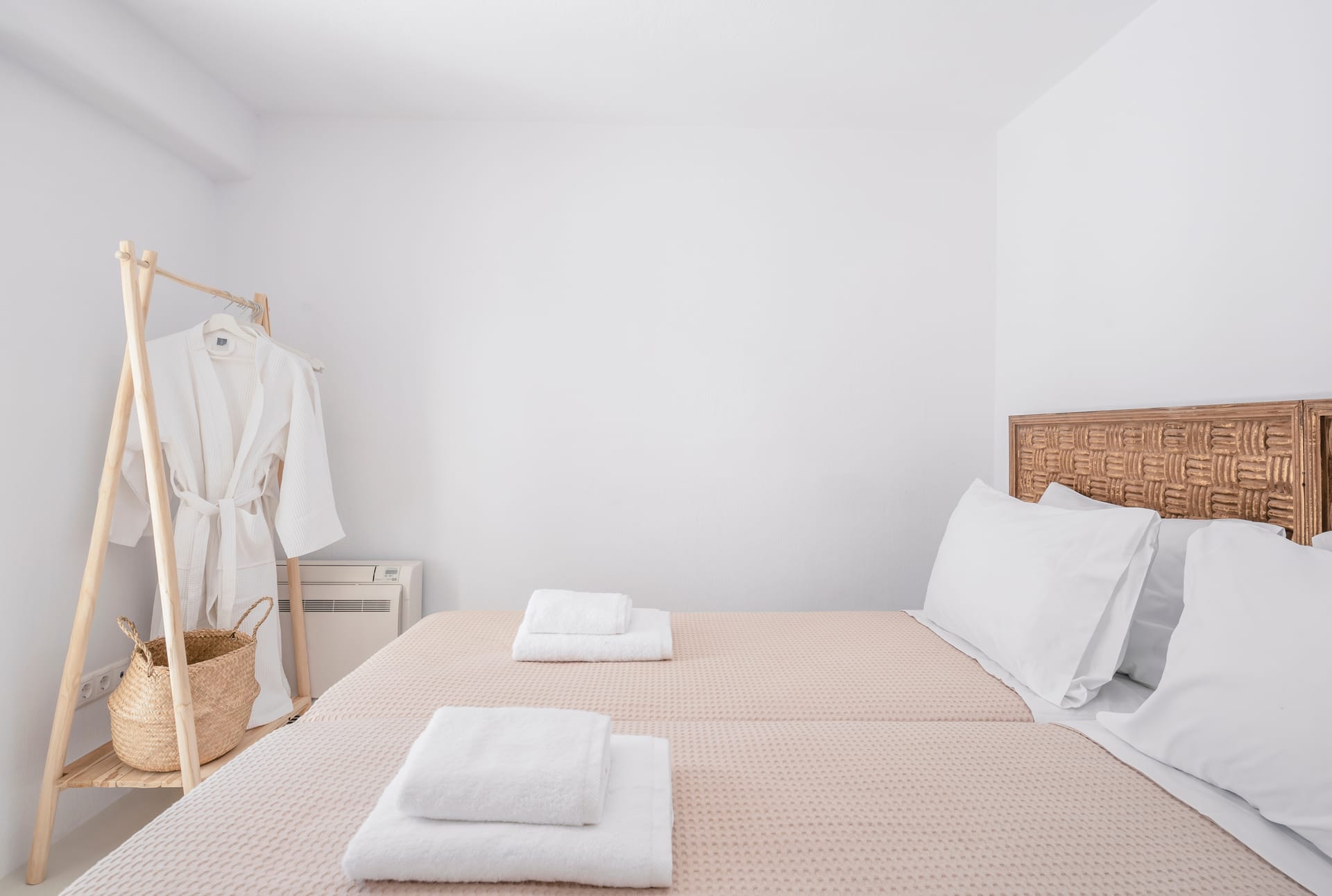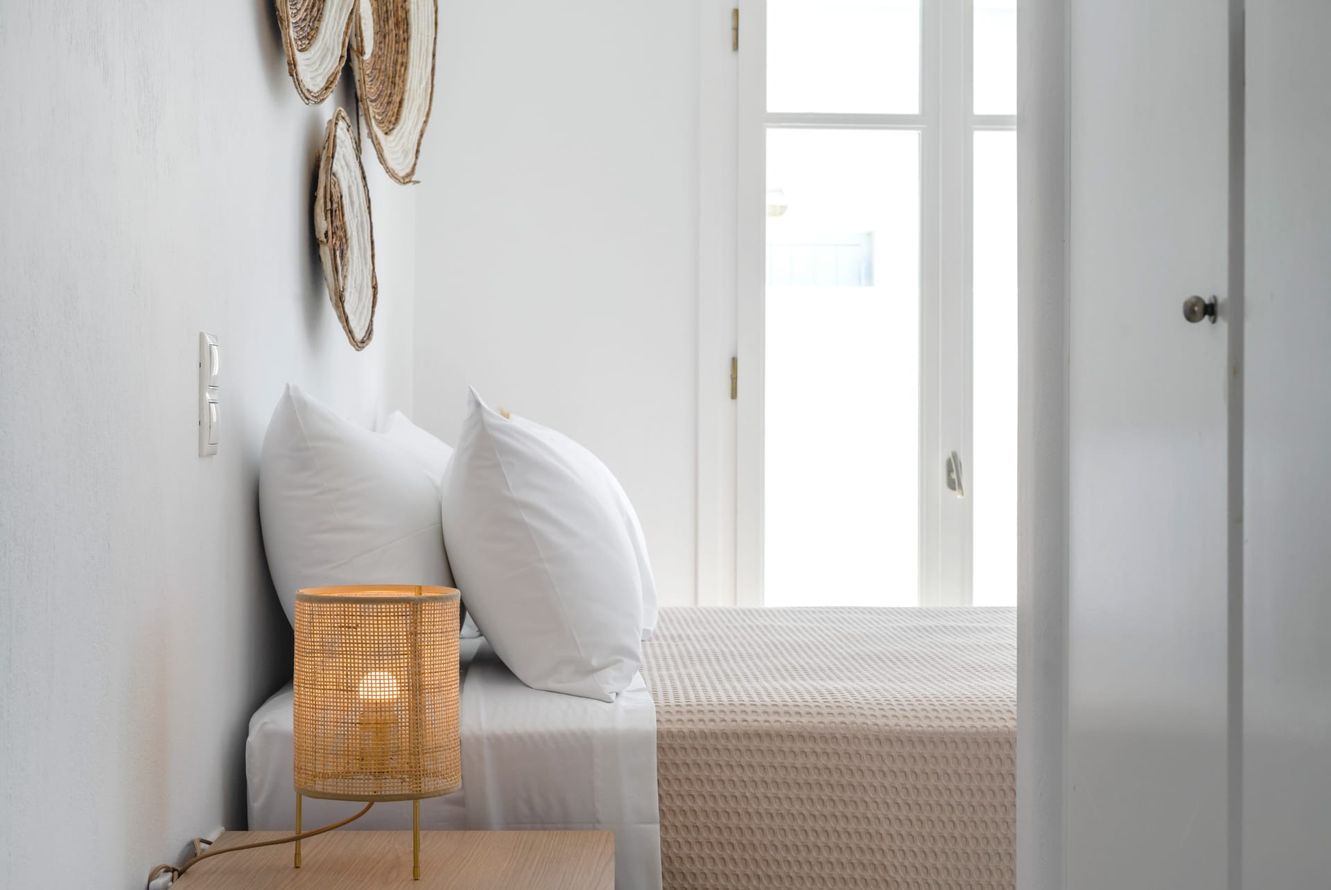 Our Villa is a 107sqm modern Mykonian house with private pool, incorporating 3 master-bedrooms with en-suite bathrooms, kitchen-living room and a large patio and bohemian style garden.