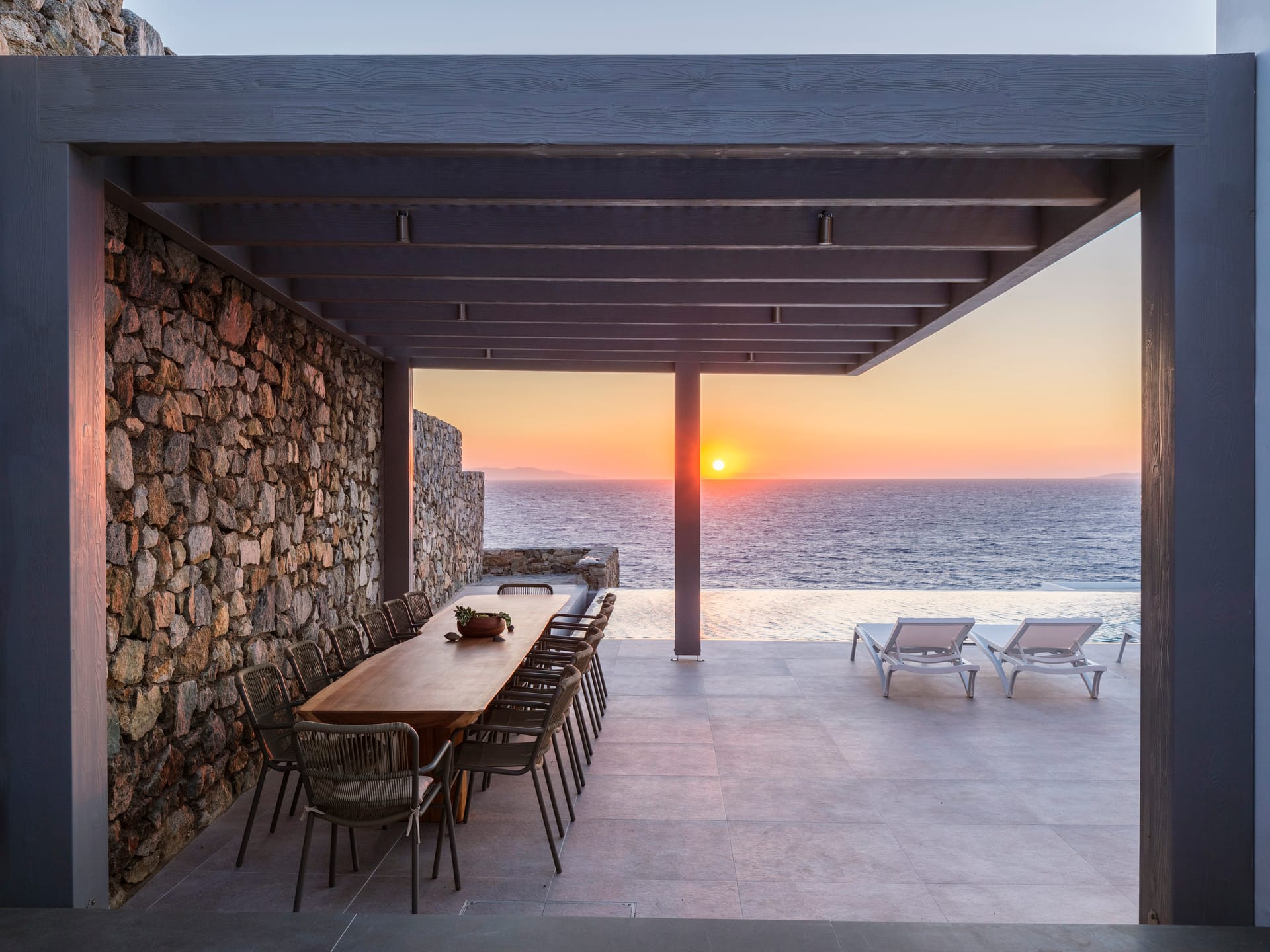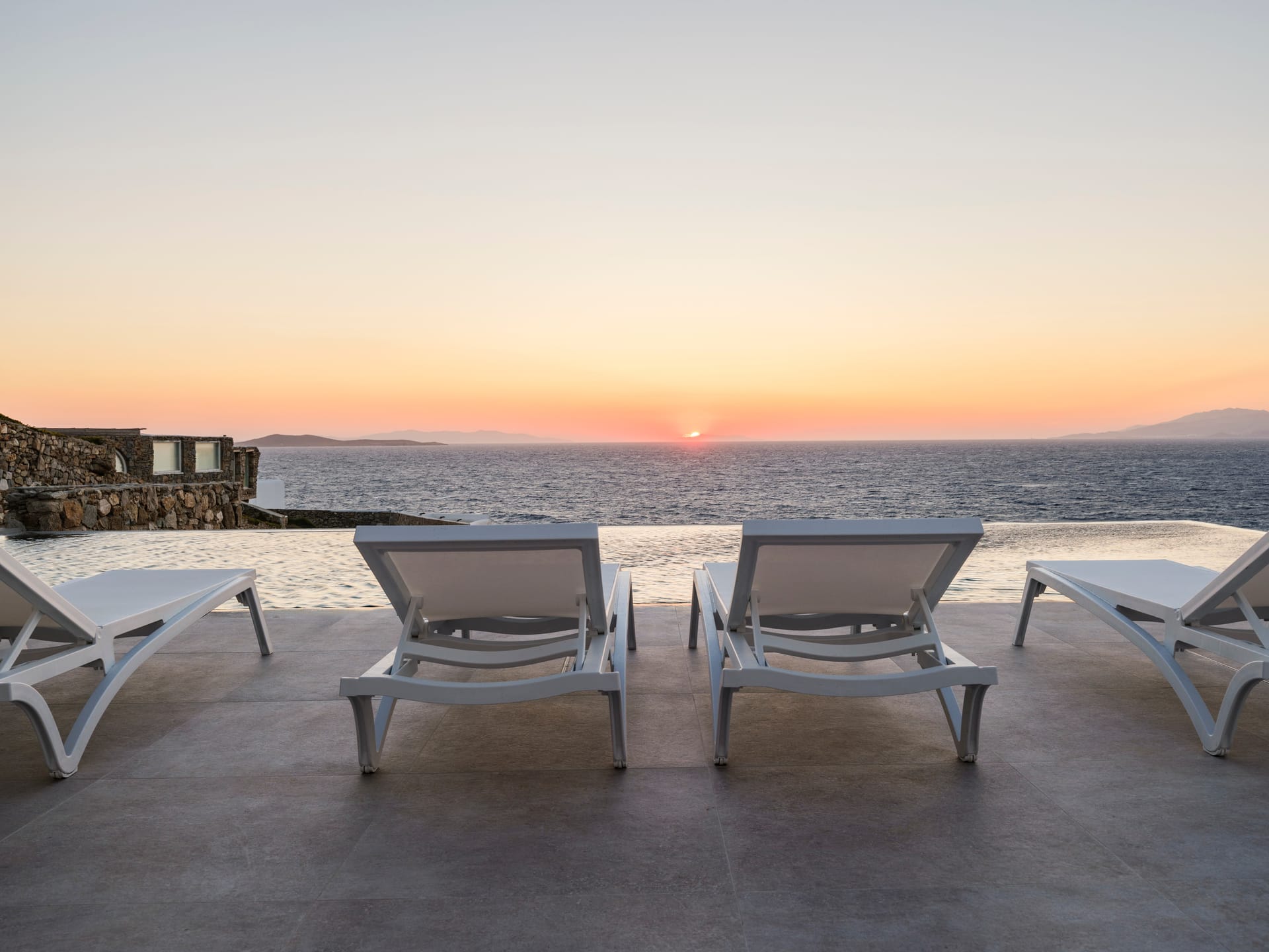 Located at Pouli, this newly constructed two-story villa (370m2,) offers unobstructed sea views, complete seclusion, and close access to Mykonos town. It gazes across the Aegean waters towards the islands of Tinos, Rhinia, and Delos enjoying amazing energizing sunsets and provides direct access to a private beach.