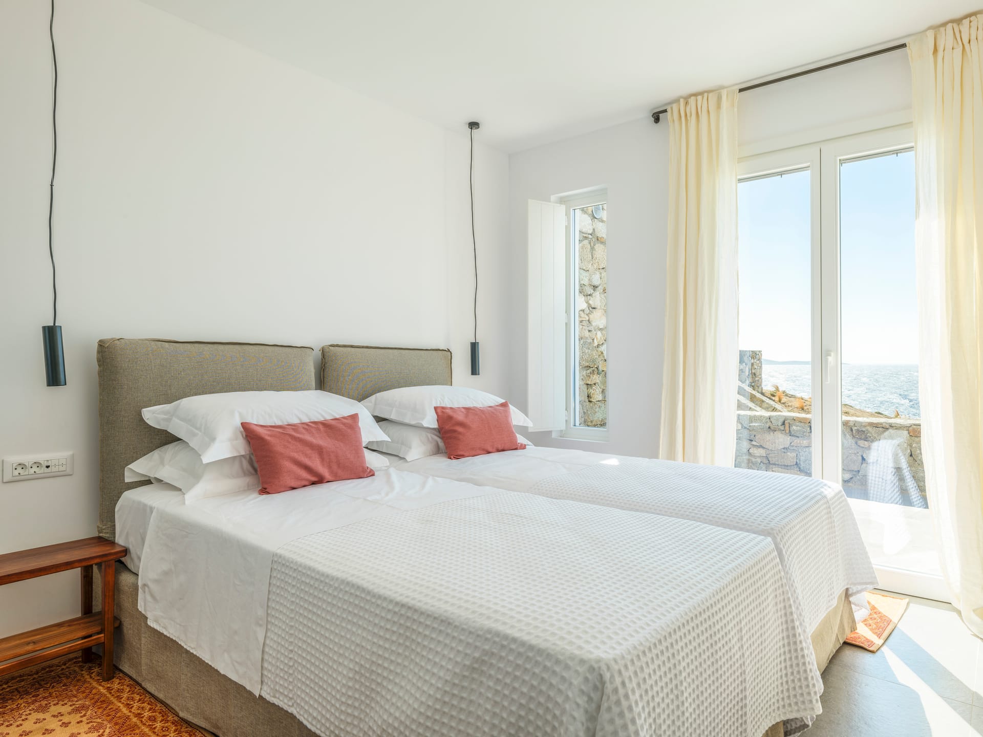 • 1 spacey master bedroom with en-suite bathroom, with a large private terrace (240’ sea/pool view). The epitome of sea-side luxury.