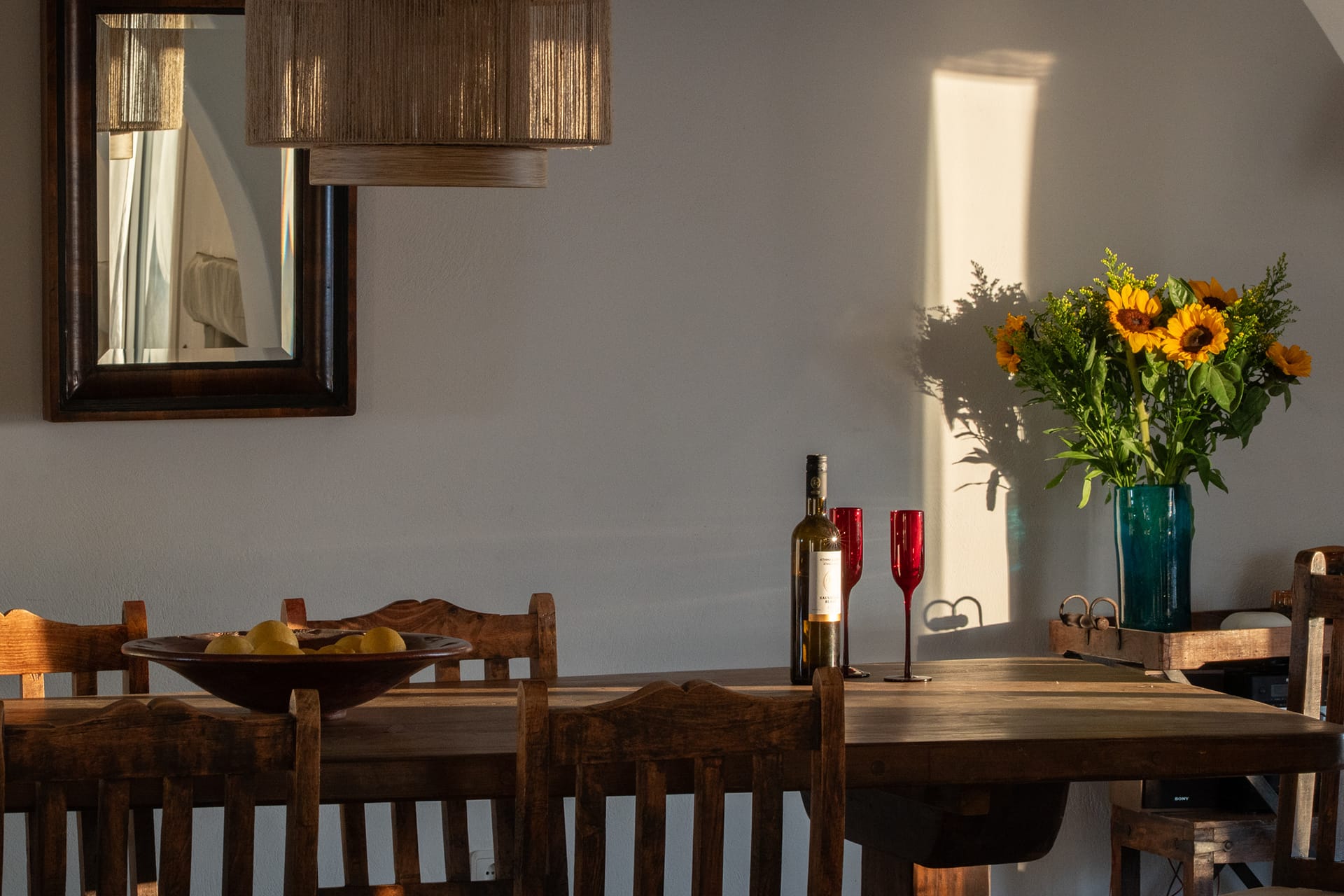 The beautiful 4-bedroom villa is located in a residential complex in Aleomandra. The three-level villa consists of 4 large bedrooms, spacious sitting areas and nice terraces with amazing sunset and sea view. There is also a dining area and a fully equipped kitchen. The complex shares one of the largest pools of the island! Moreover, it is only a few meters walking from a semi-private