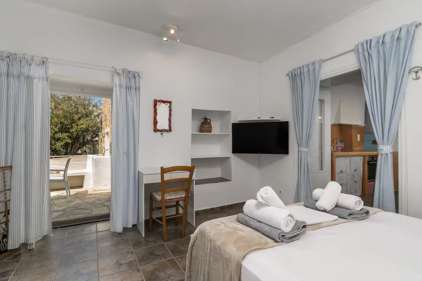 1 x Double Bedroom with queen size bed connected with a double bedroom with two single beds with kitchenette, balcony, and independent access
