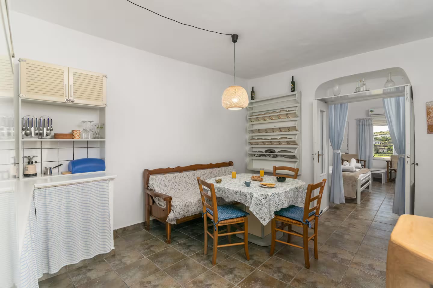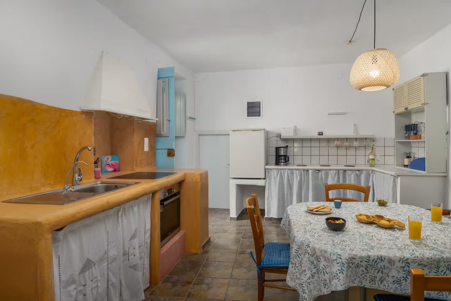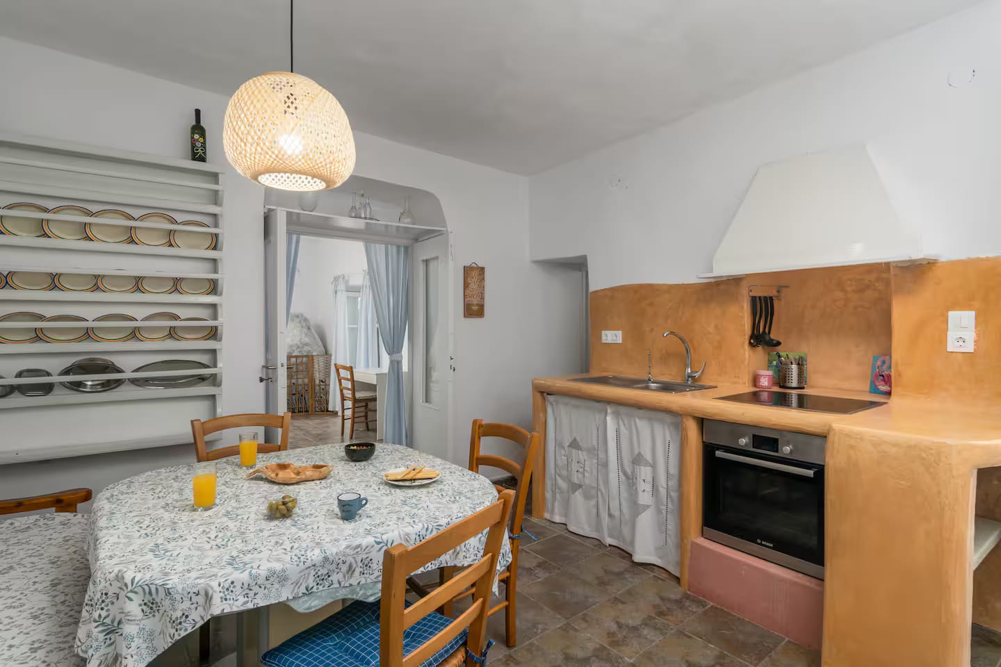 Open plan fully equipped kitchen with dining area