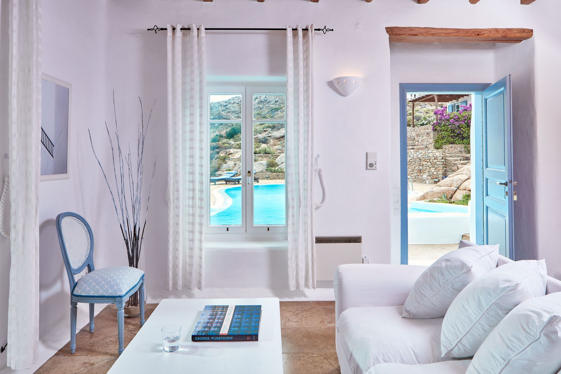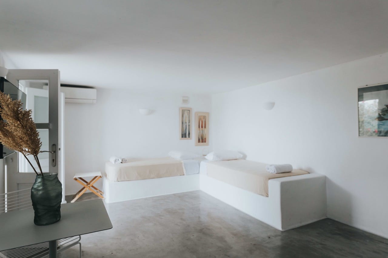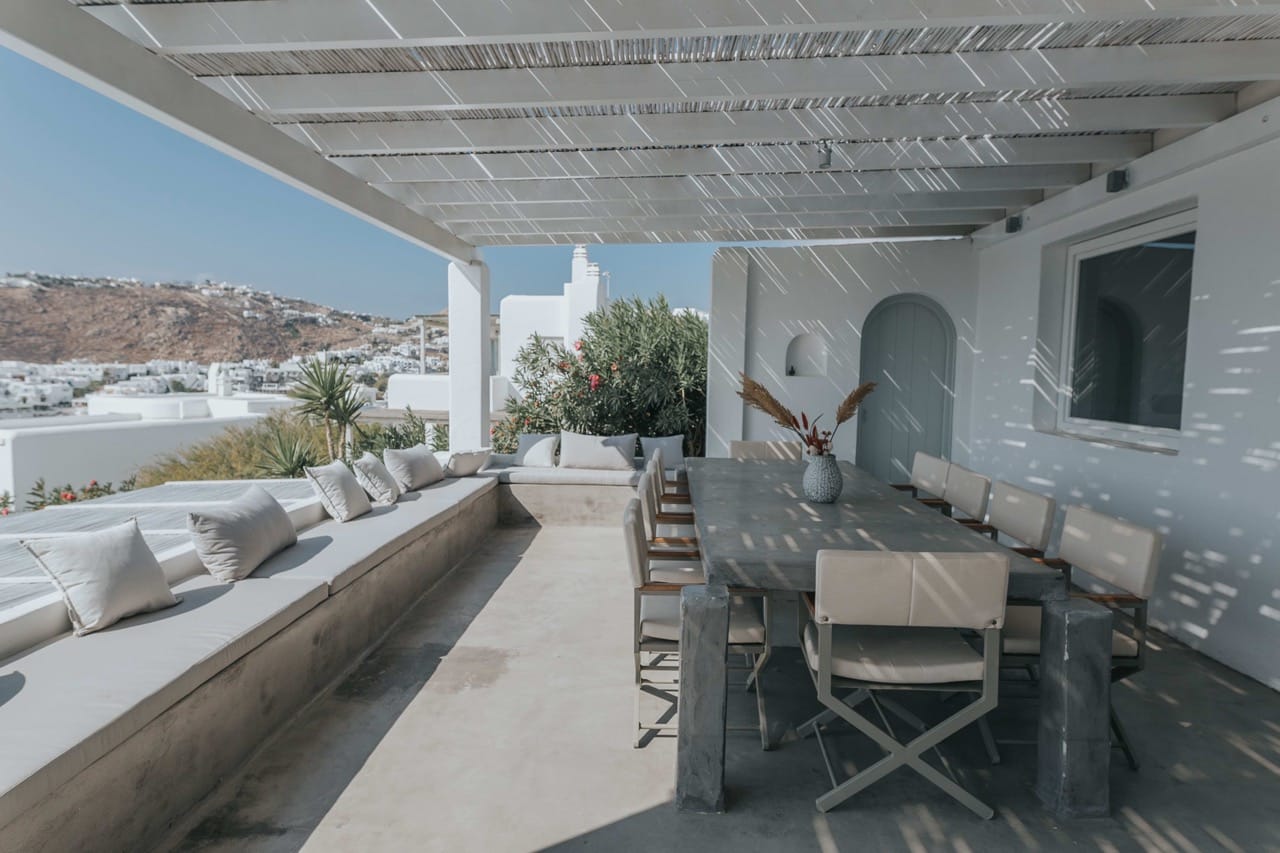 Pylon Estate is a modern villa nestled in the heart of the Cyclades, right on the Platis Gialos Bay's shoreline. The estate consists of three distinct buildings, each occupying its own plot of land, perched gracefully atop gentle hills that provide breathtaking vistas of sunset and the Aegean Sea. This extraordinary blend of seclusion and convenient access to Mykonos Town makes it an irresistible destination for discerning visitors. The villas are elegantly furnished and designed to offer a relaxing and refreshing experience.