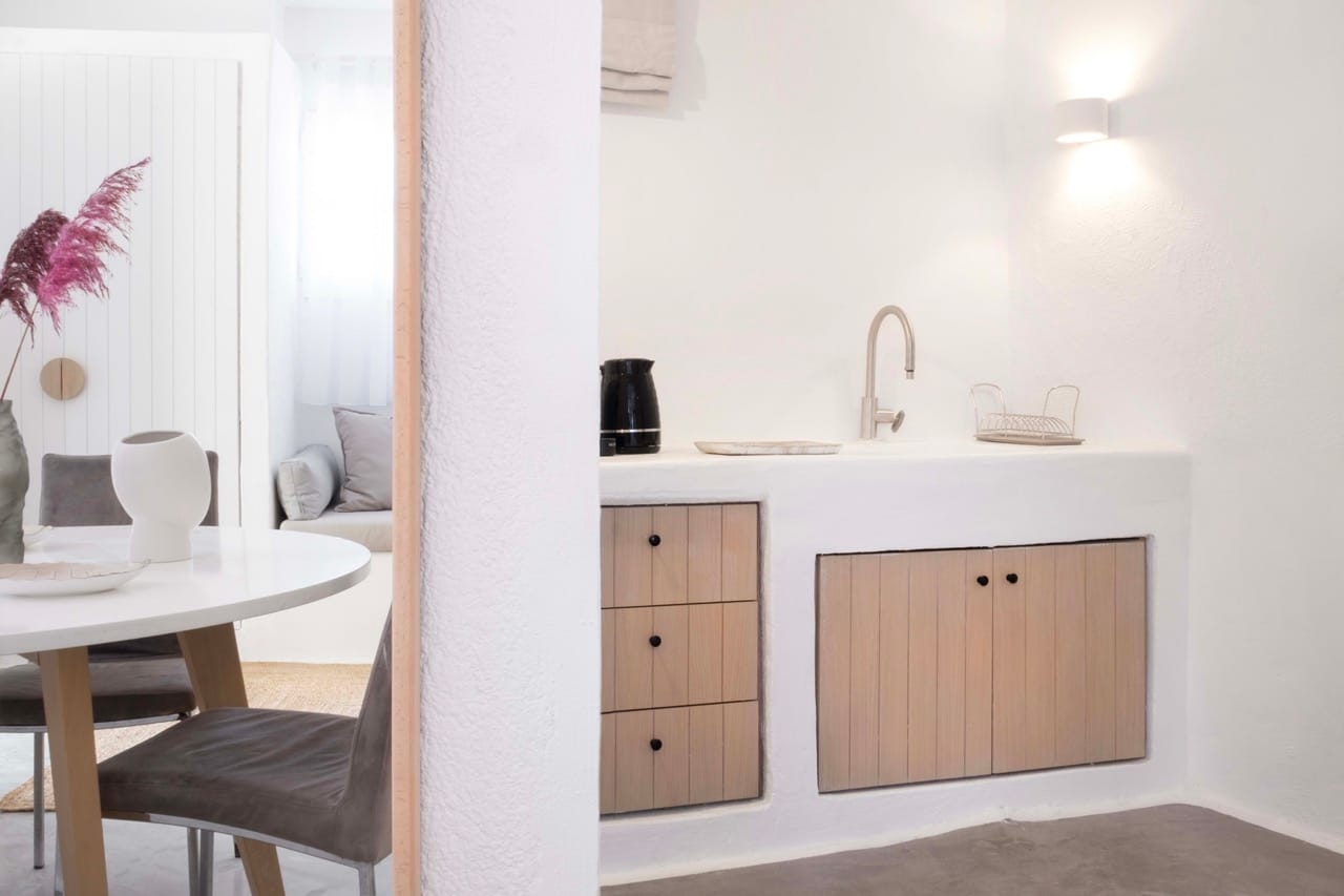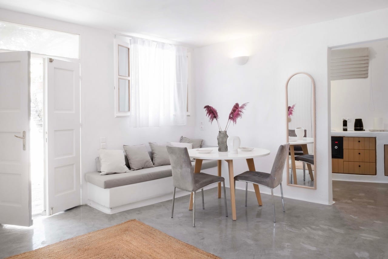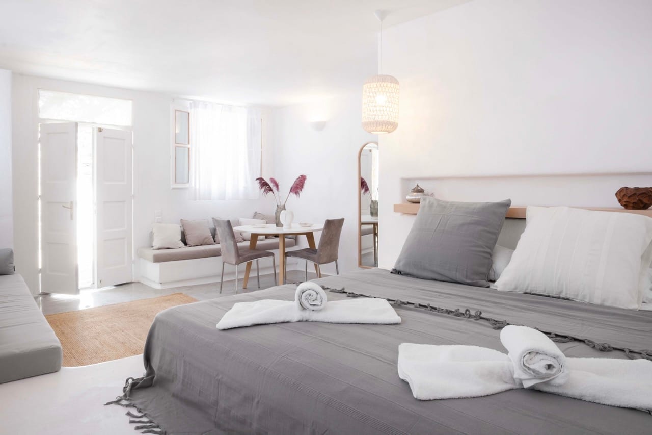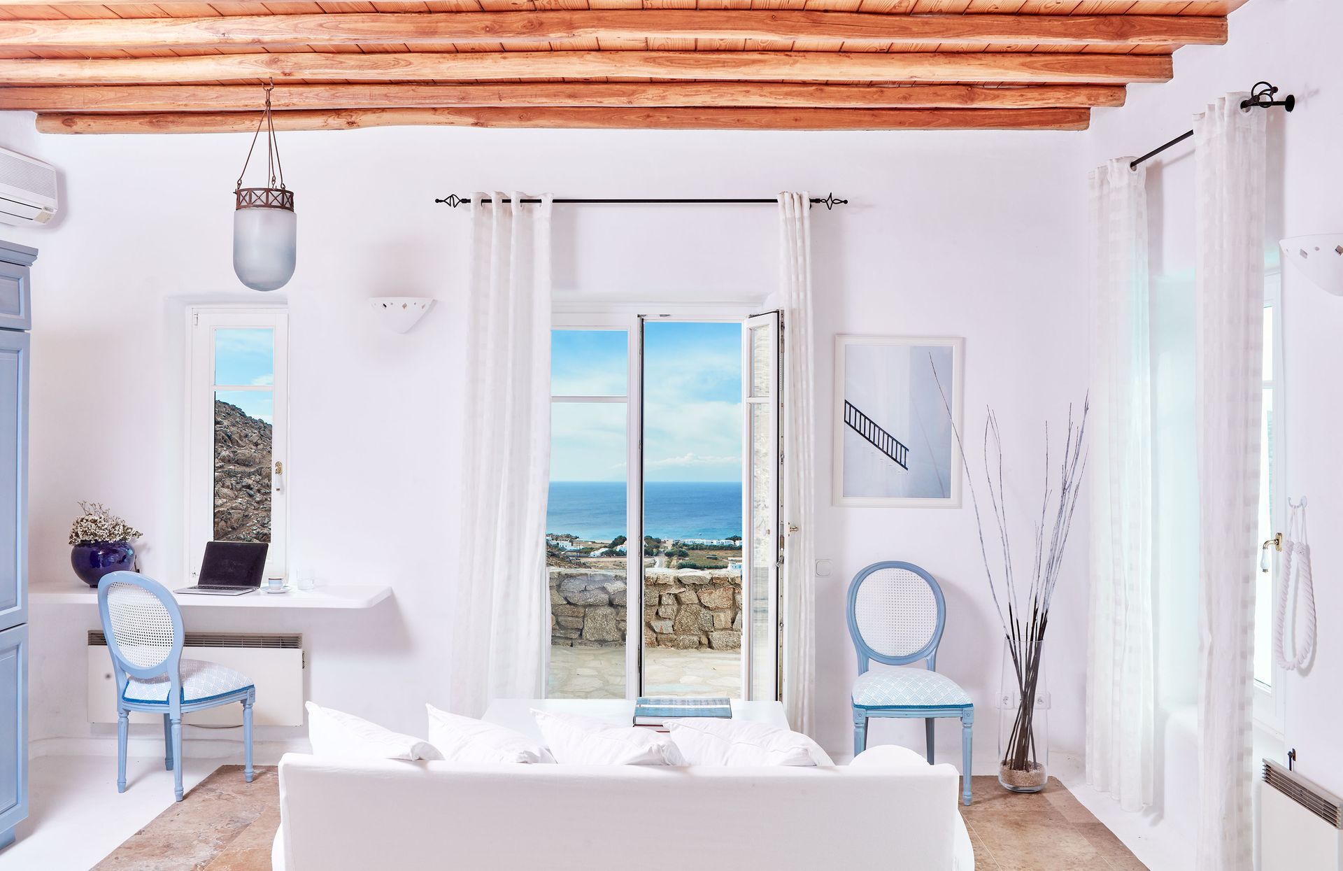 Pylon Estate is a modern villa nestled in the heart of the Cyclades, right on the Platis Gialos Bay's shoreline. The estate consists of three distinct buildings, each occupying its own plot of land, perched gracefully atop gentle hills that provide breathtaking vistas of sunset and the Aegean Sea. This extraordinary blend of seclusion and convenient access to Mykonos Town makes it an irresistible destination for discerning visitors. The villas are elegantly furnished and designed to offer a relaxing and refreshing experience.