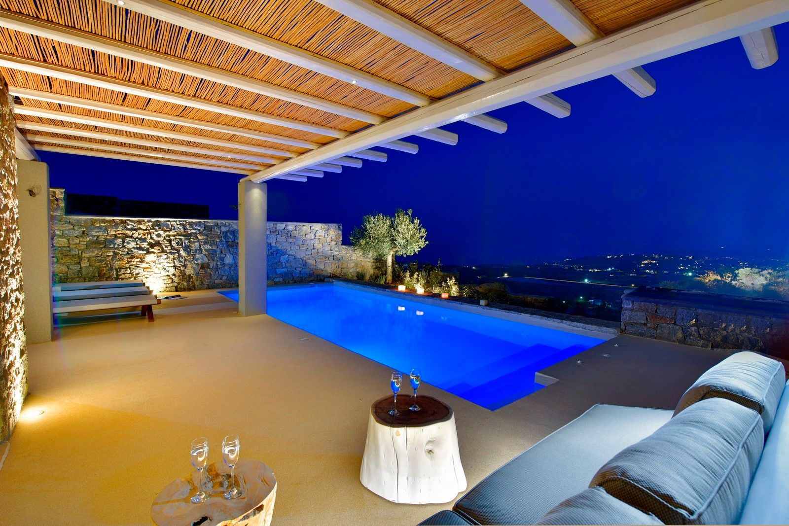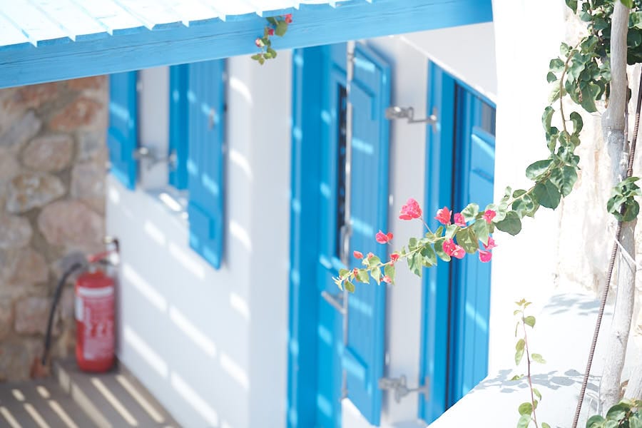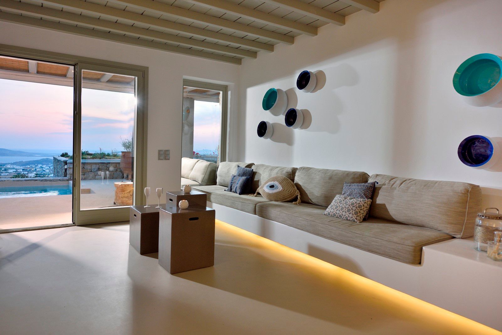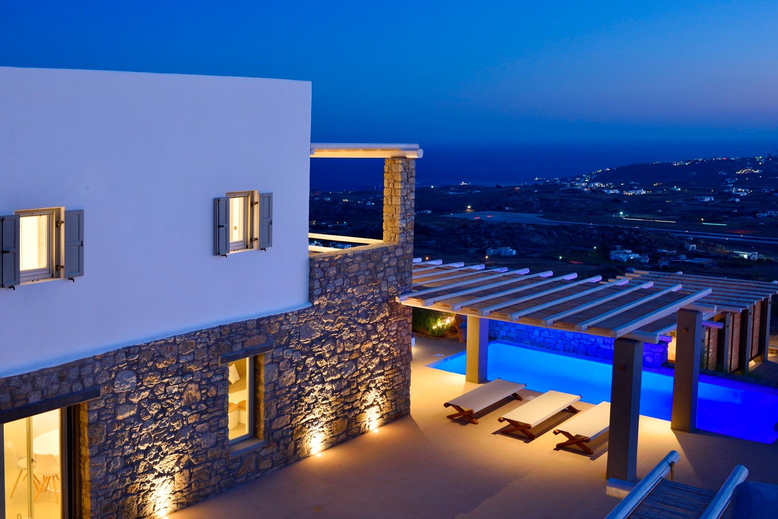 The second-level bedrooms are ergonomically designed to offer comfort and several amenities, have en-suite bathrooms, modern and stylish furniture, and views of the endless Aegean blue.