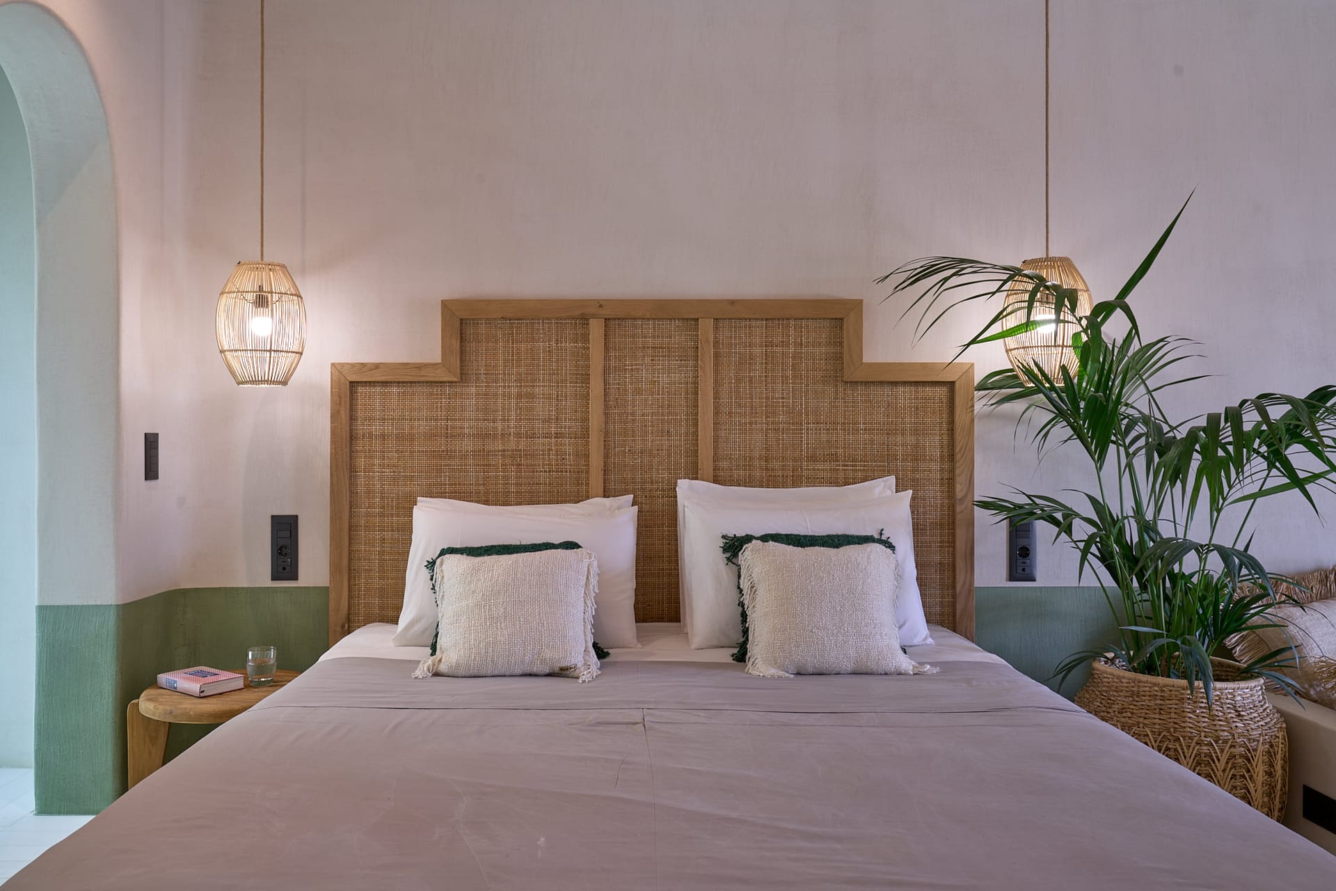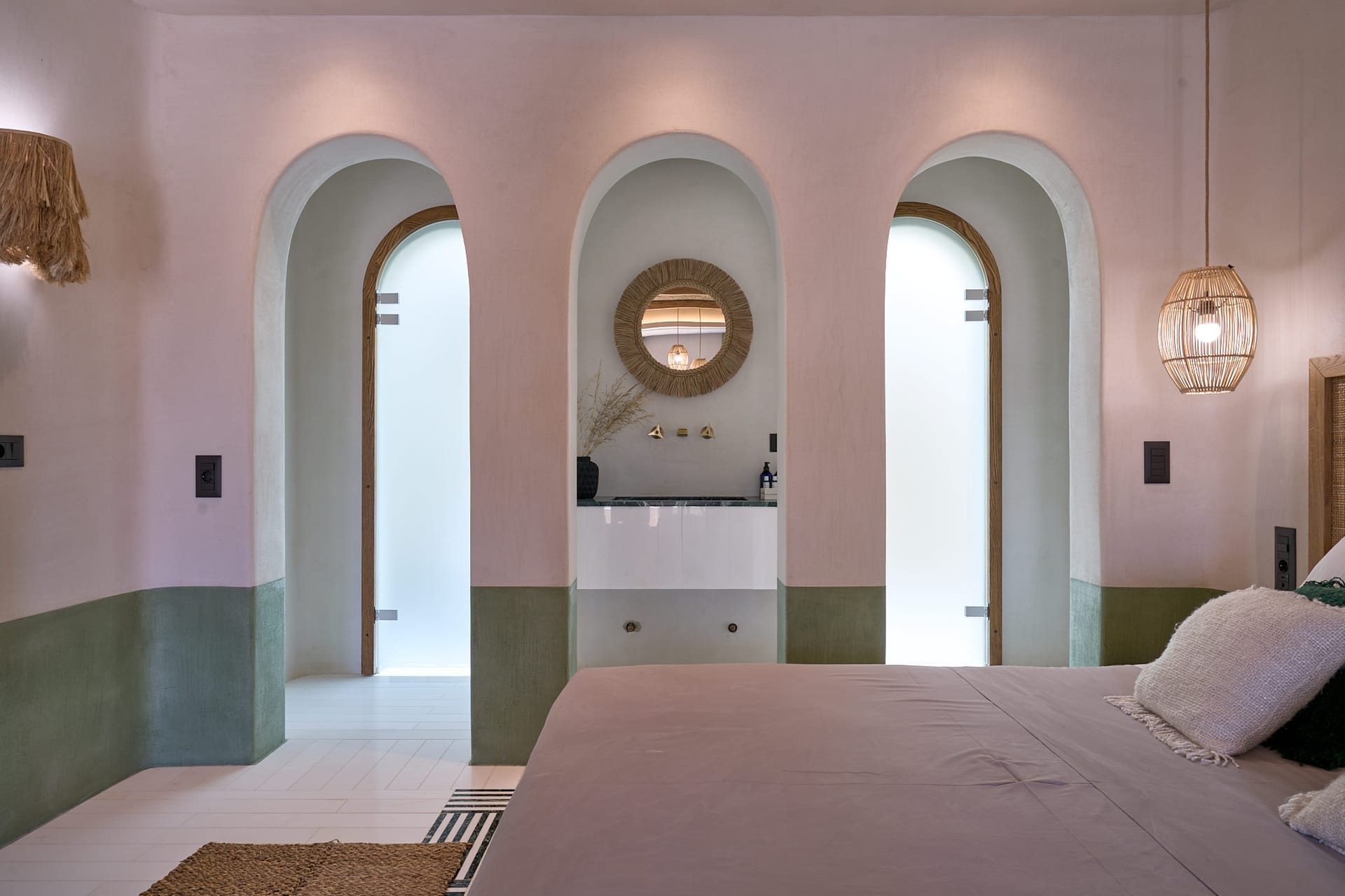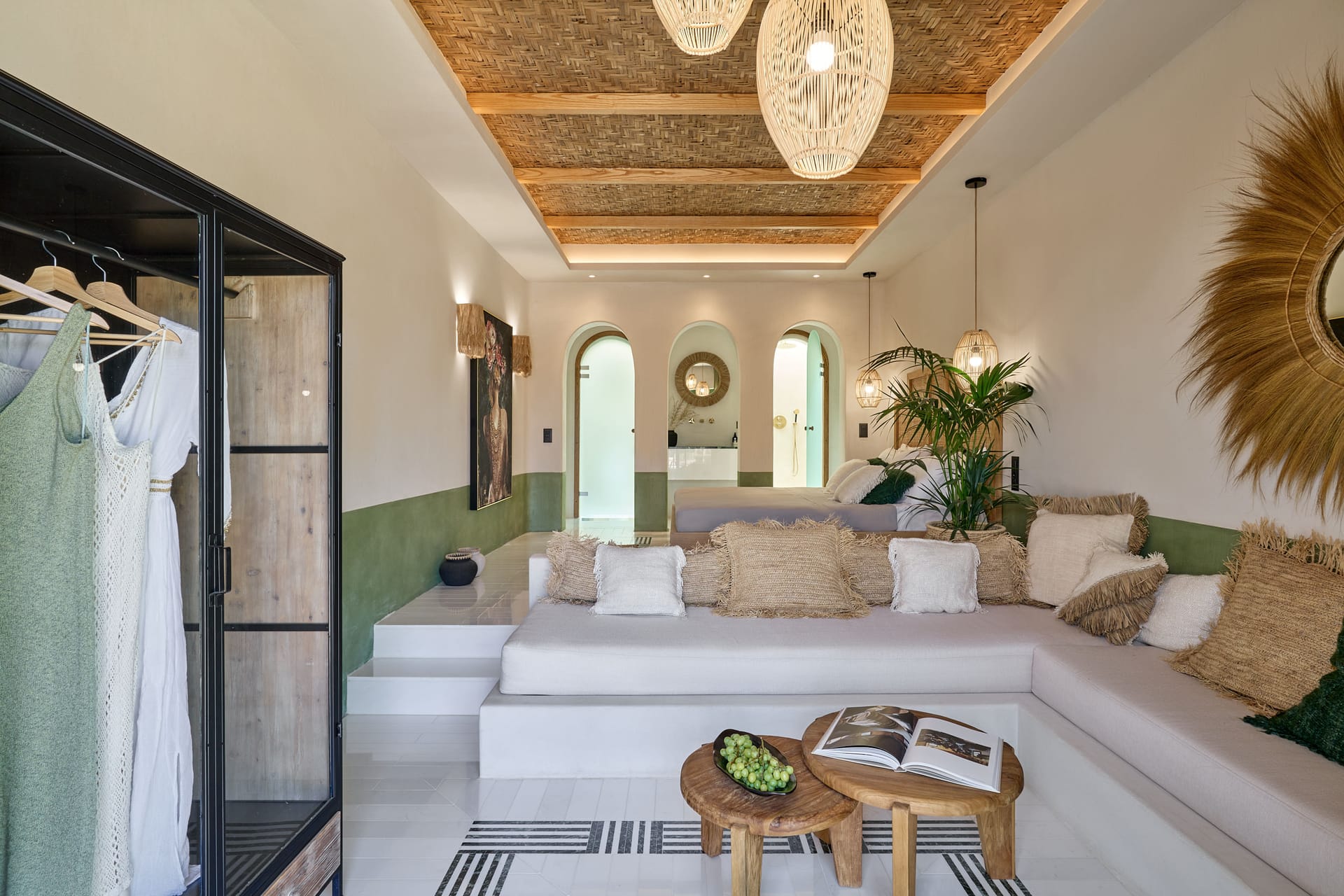 The luxury of a king-size bed, accompanied by two single sofa beds to accommodate up to 4 guests, make this suite perfect for families or intimate gatherings. Spanning a generous 42 m², our suite is meticulously designed to evoke the essence of Tinos' islandic beauty, creating an idyllic backdrop for your vacation.