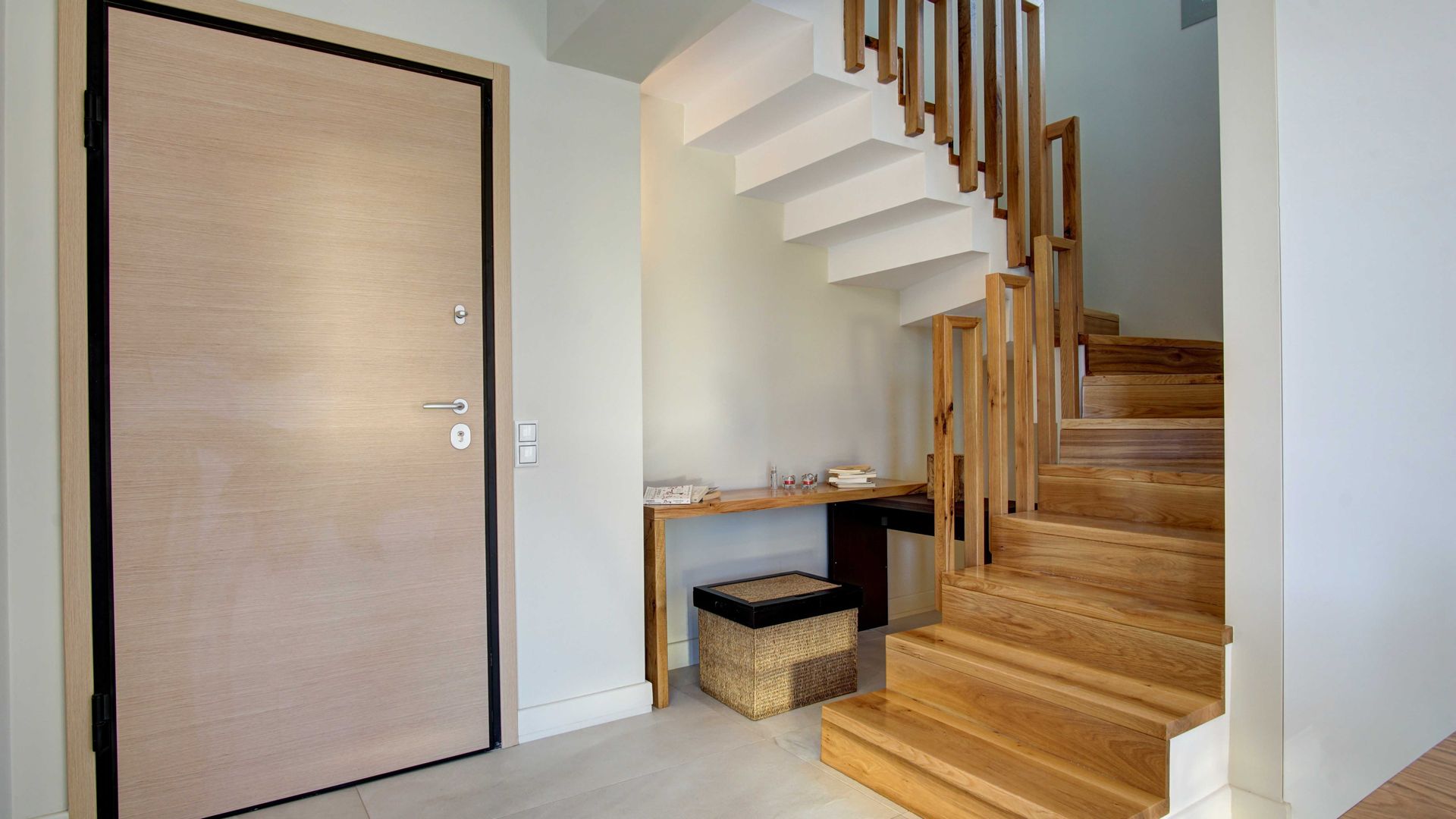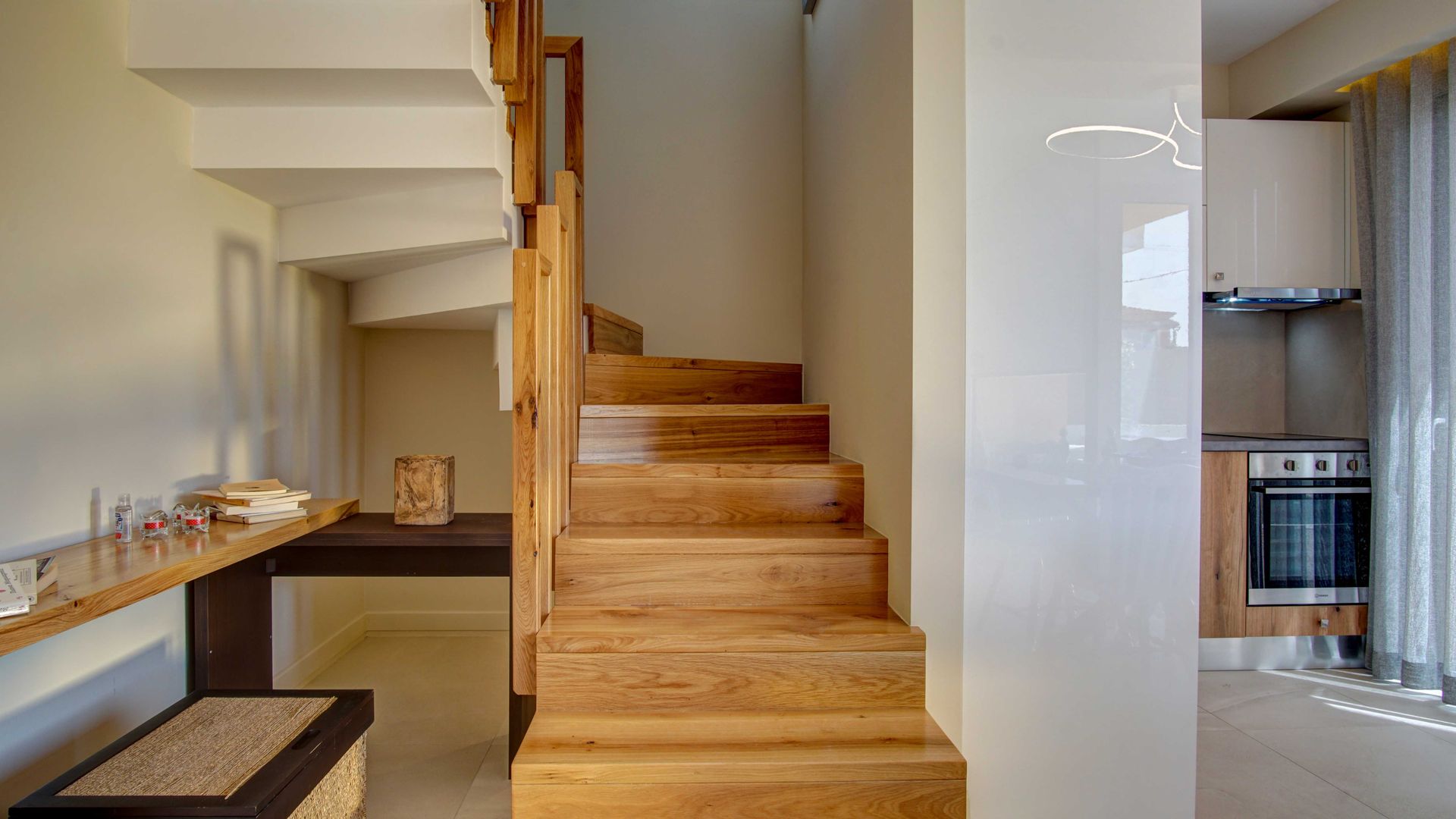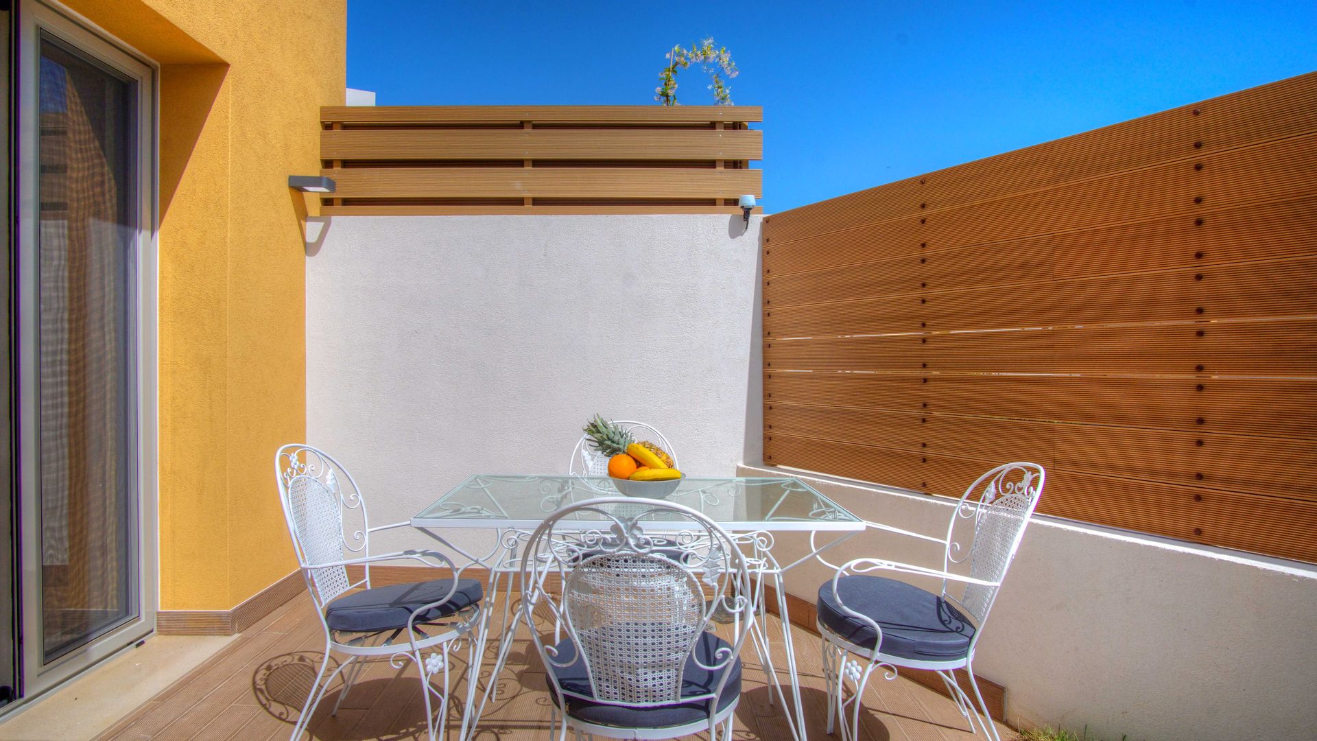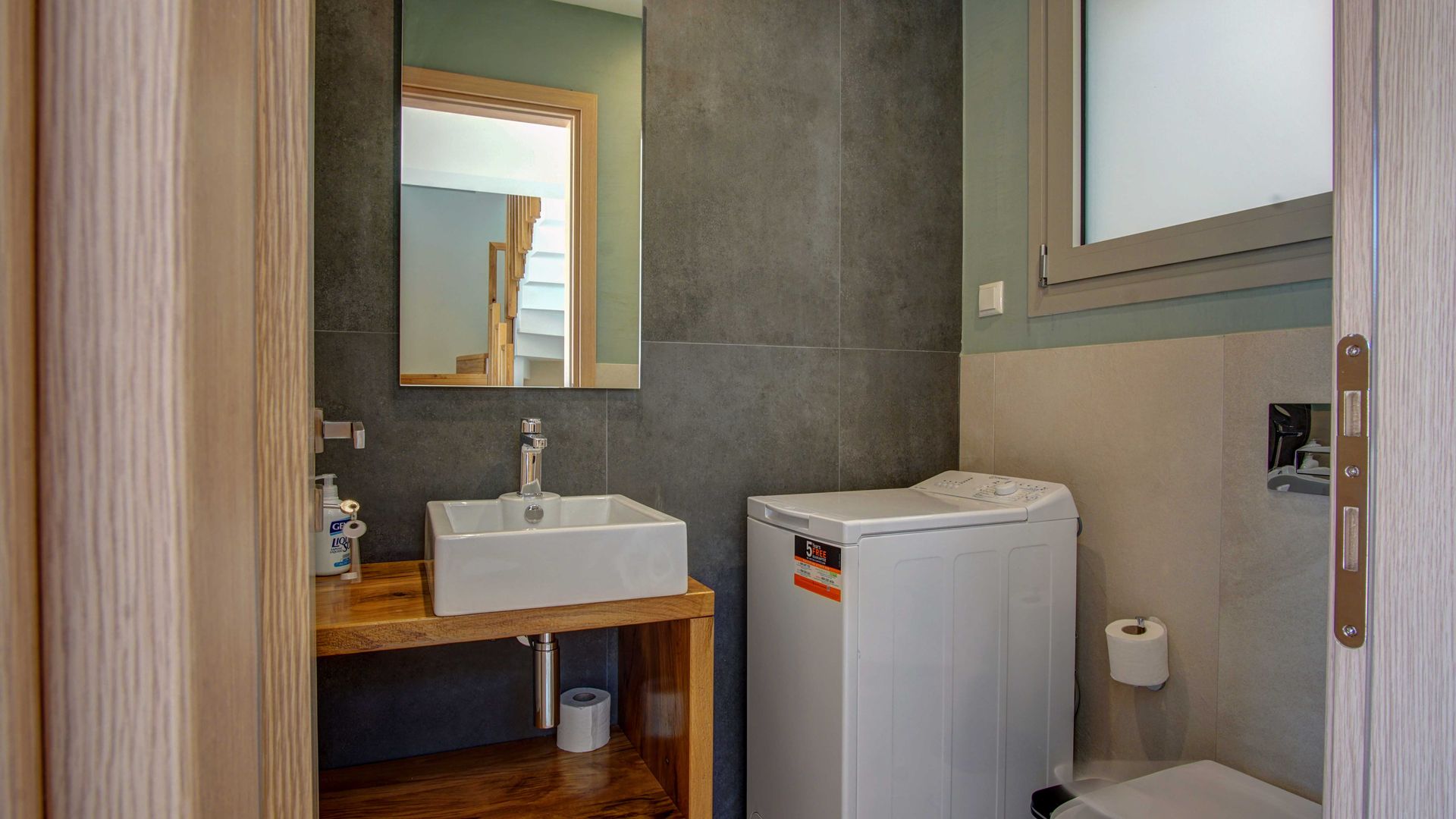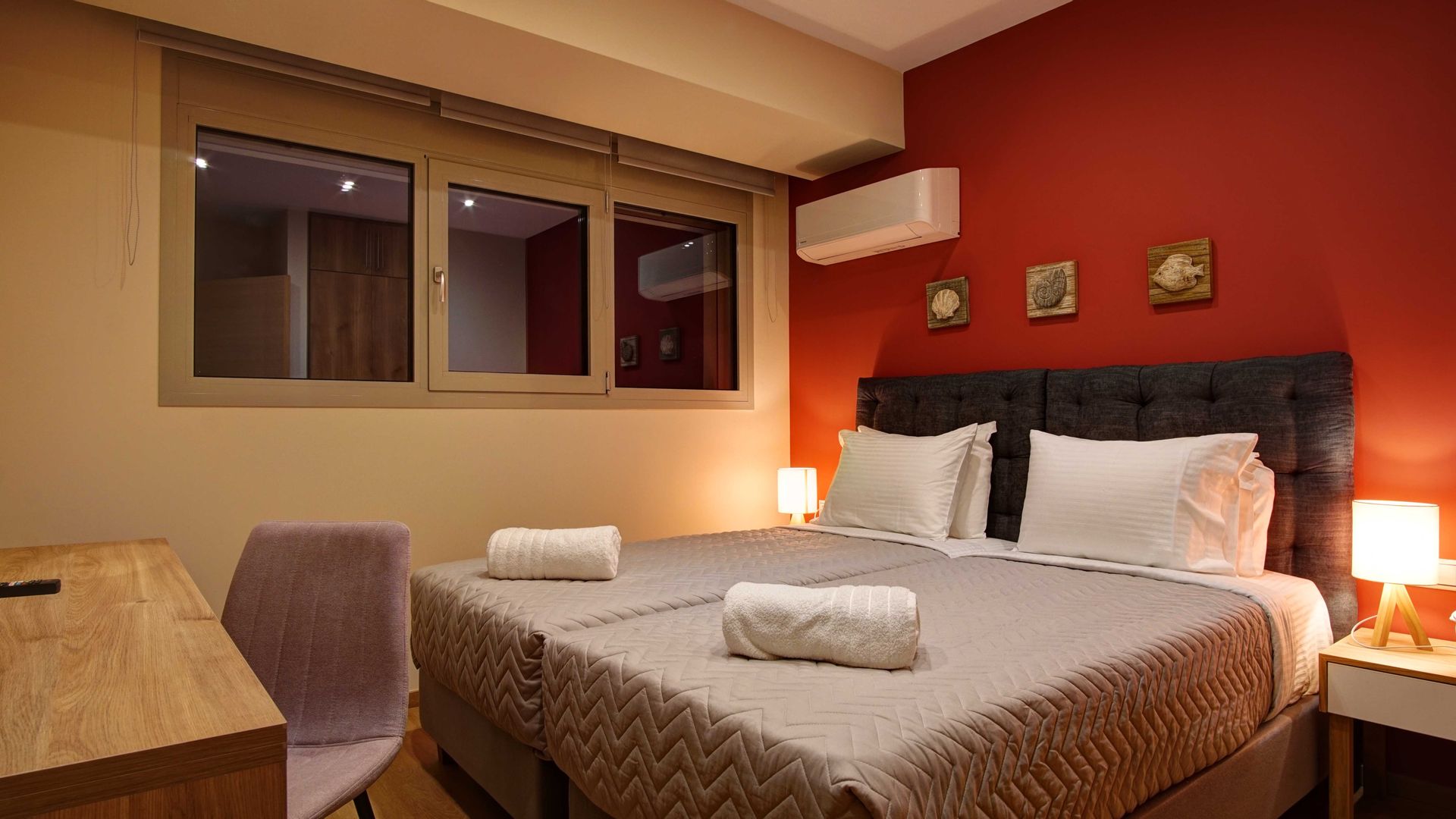 The interior areas are designed in a minimal style with boho touches and wooden furnishing. The maisonette style offers a sense of extended space of two levels, with two bedrooms on the first-floor level and a fully equipped open plan kitchen with dining area and spacious living room with pool view, being ready to offer you moments of relaxation and amusement. The two bedrooms can accommodate four persons comfortably and are equipped with comfortable double beds and ensuite bathrooms with shower, offering elegance with the wooden decorations and touches, both have private balconies. A sofa bed in the living room can accommodate an extra person.