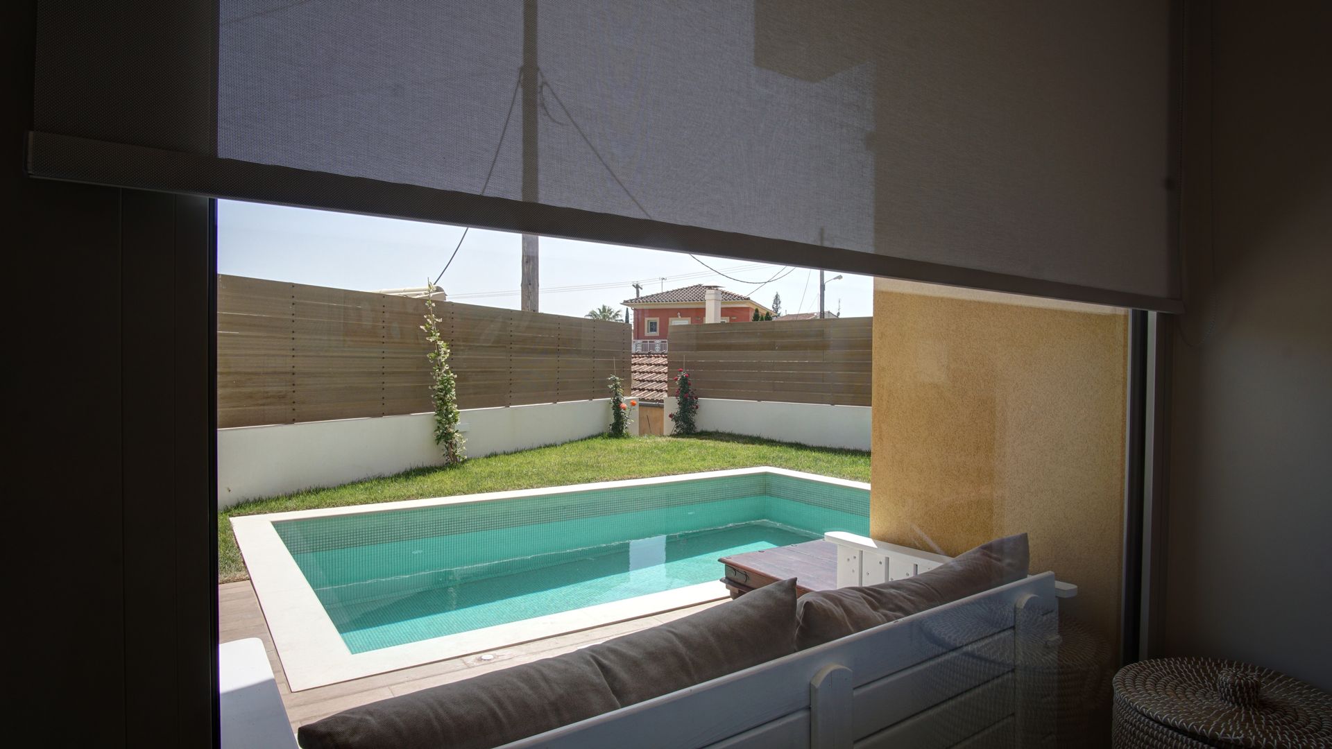 The most dominant feature of the exterior area is the freshwater pool, with the water element contrasting beautifully the earthly tones that decorate the exterior. An outside dining area along with a sitting area will offer you care-free moments under the sun, where you can enjoy the water and have the best time to remember.