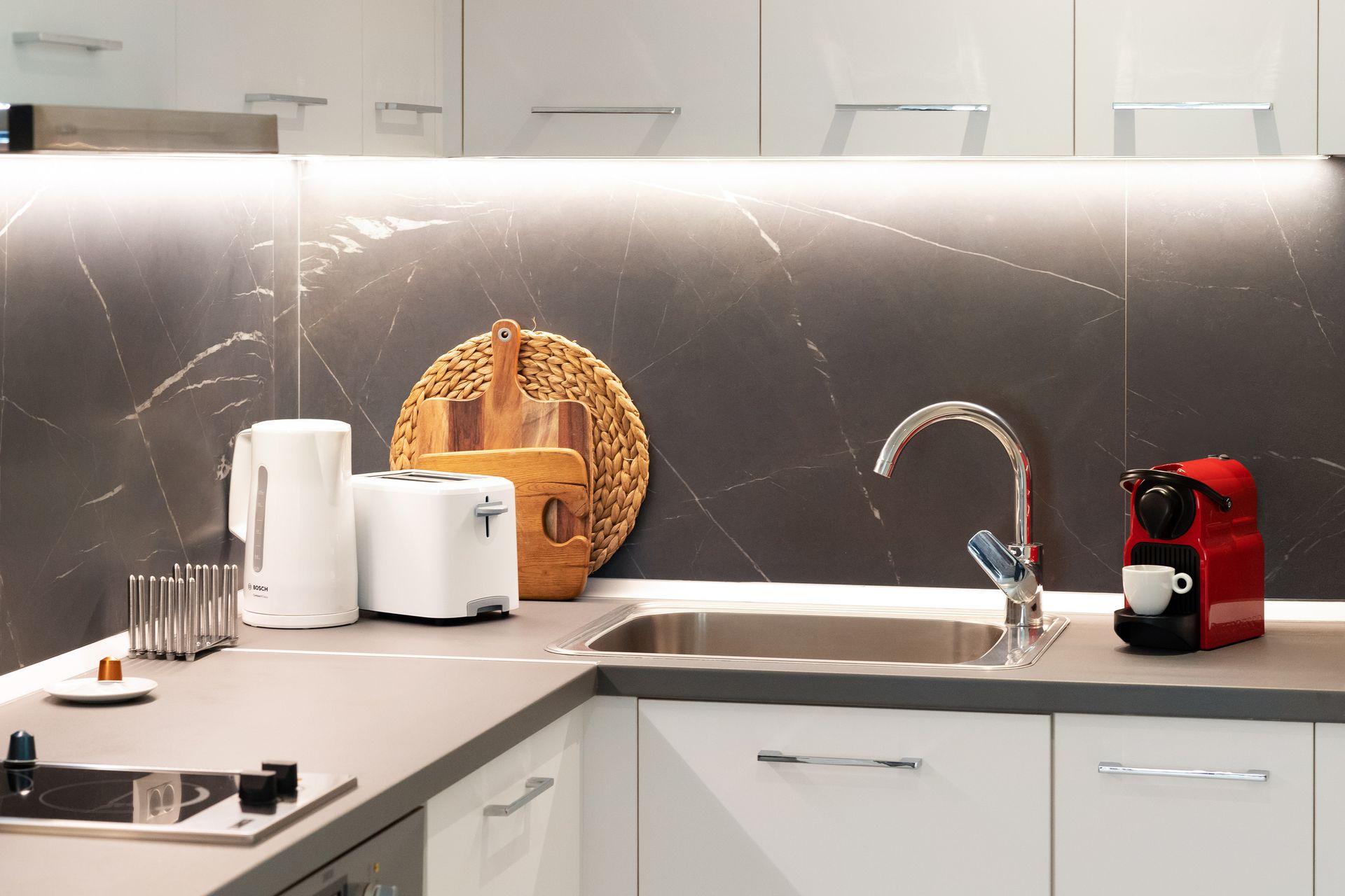A fully equipped kitchen allows the preparation of meals and all necessary small appliances are available. Bathroom with walk-in shower and state of the art facilities.