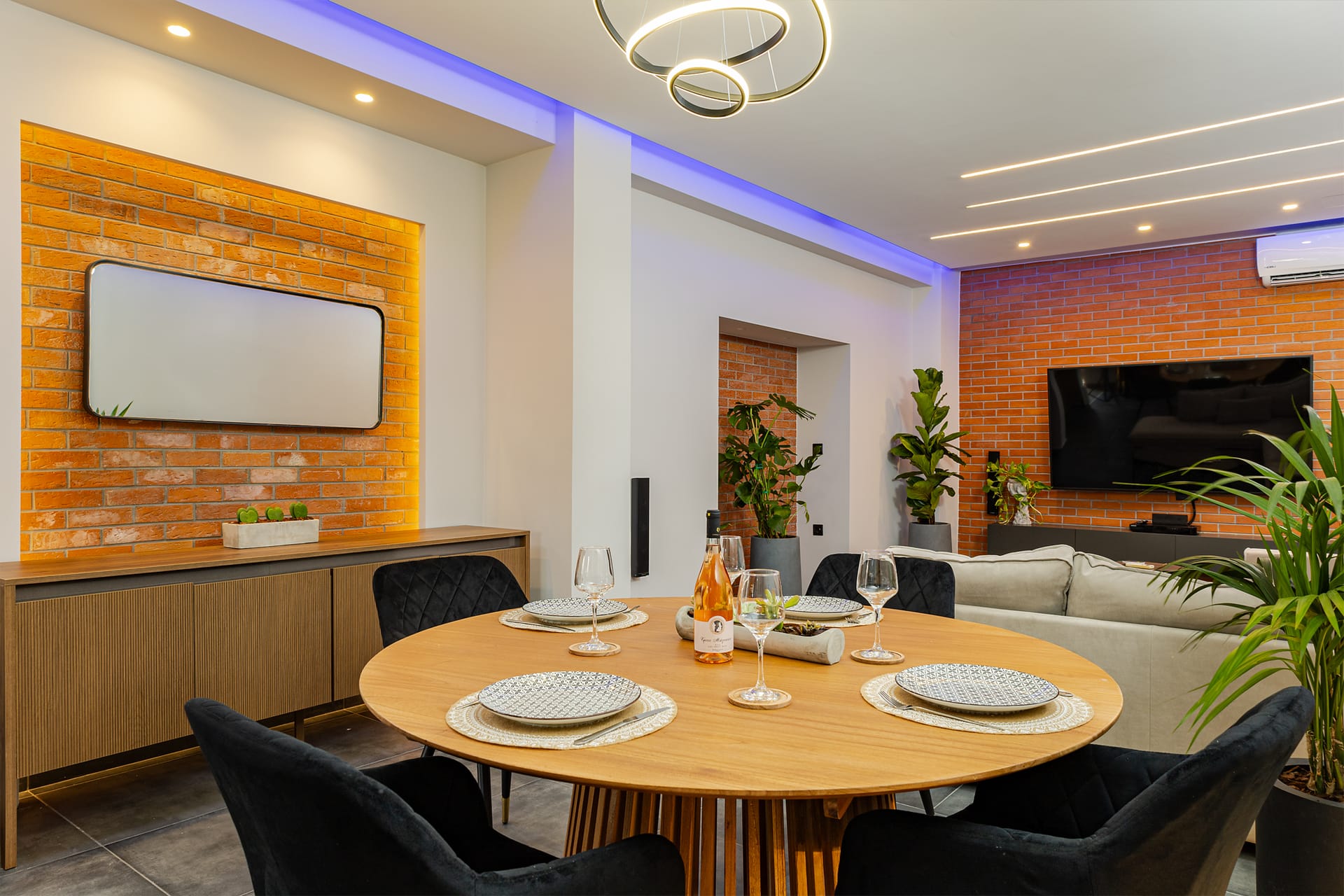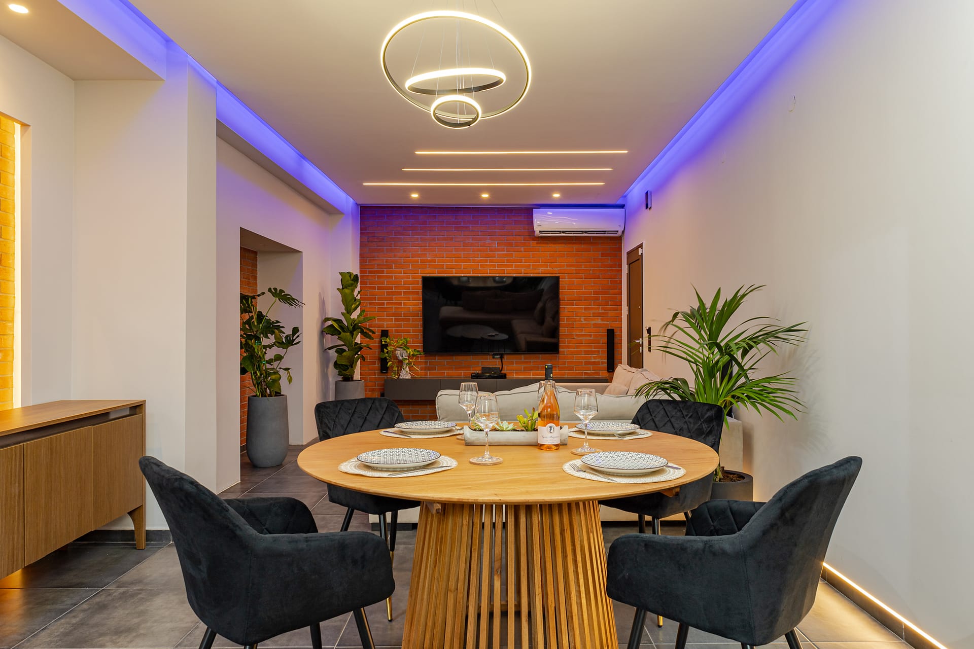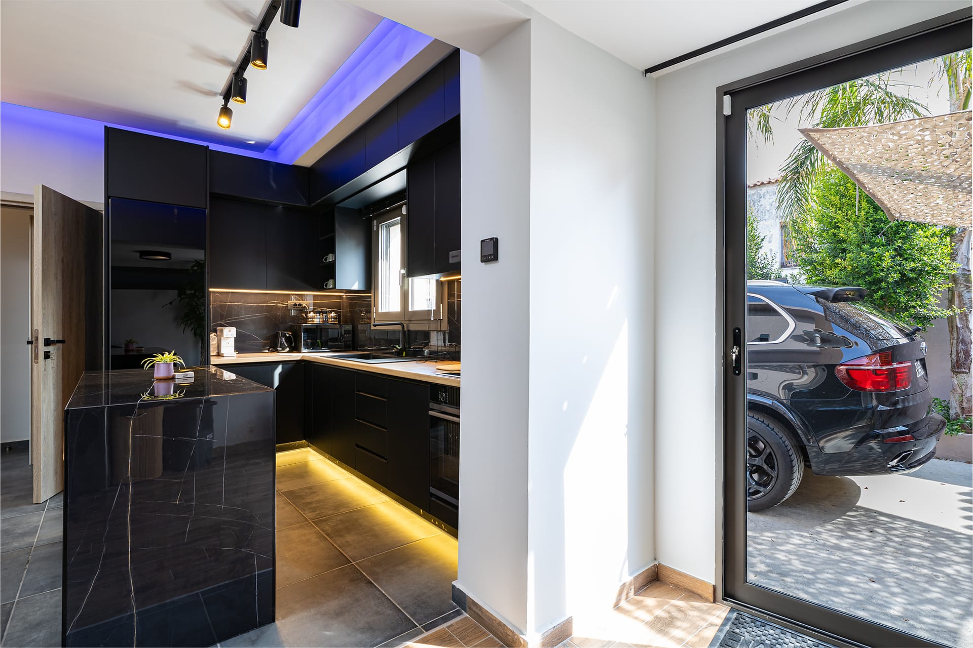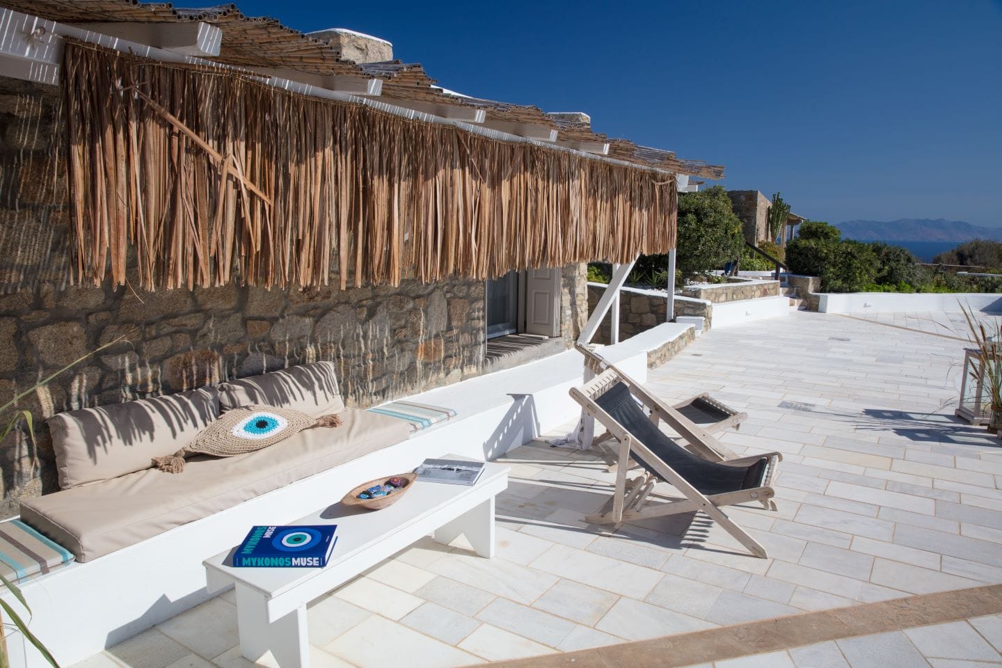 The entertainment area will offer you moments of fun and relaxation while watching movies on the home cinema with the Smart TV 65inches, playing video games on the Playstation or listening to music via Bluetooth on the wireless speaker, which can be carried around the rest of the rooms as well. Additionally, just like in this area and other areas of the villa there is the ability for a wired connection to the internet as well as a continuous connection to the Wi-Fi.