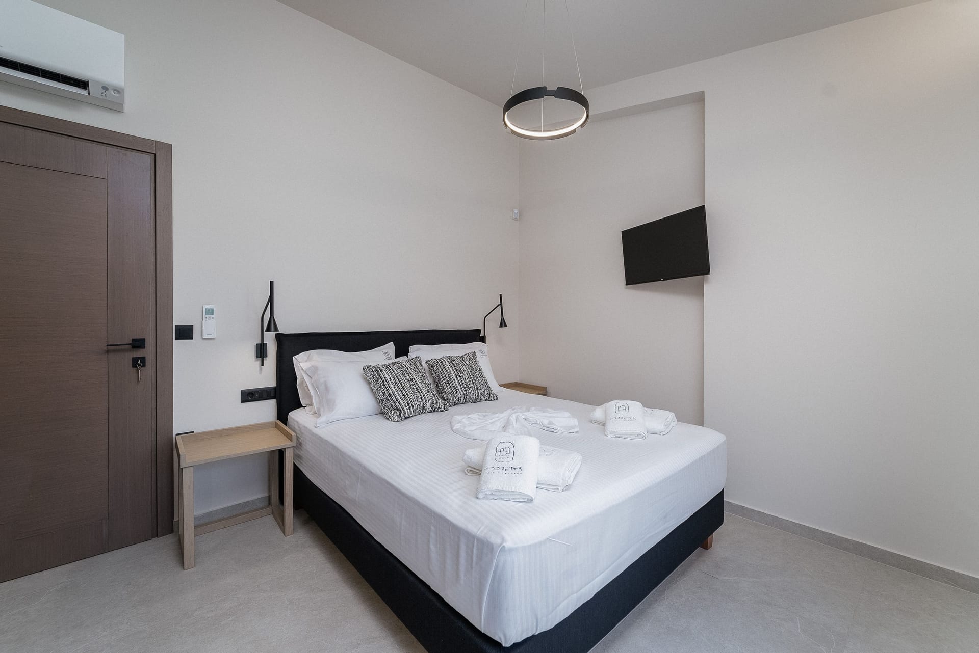 Amneris Villa is the largest Villa of the complex as it occupies 190sqm, it has four bedrooms with en-suite bathrooms and it can accommodate up to 8 people. It is features spacious rooms, delicate luxury and exceptional amenities that will offer you unique moments of comfort, relaxation and wellness.