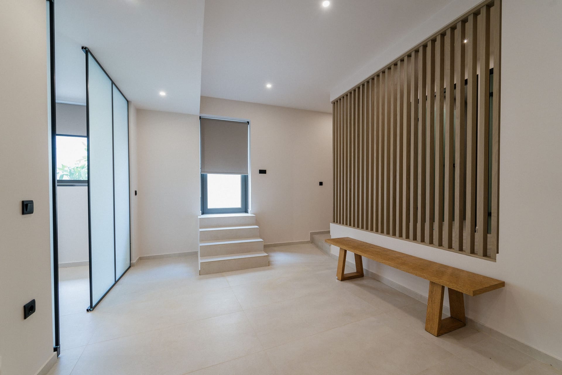 The first level accommodates a bedroom with an en-suite bathroom, entertainment area and sauna. It is ideal for your teenagers, as they will not get bored, for the member of your personal security and care, as well as for those who seek isolation for a few hours from the rest of the household. Due to its underground construction, it is considered as the coolest level of the villa. It is communicating with the other two levels via an outdoor staircase.