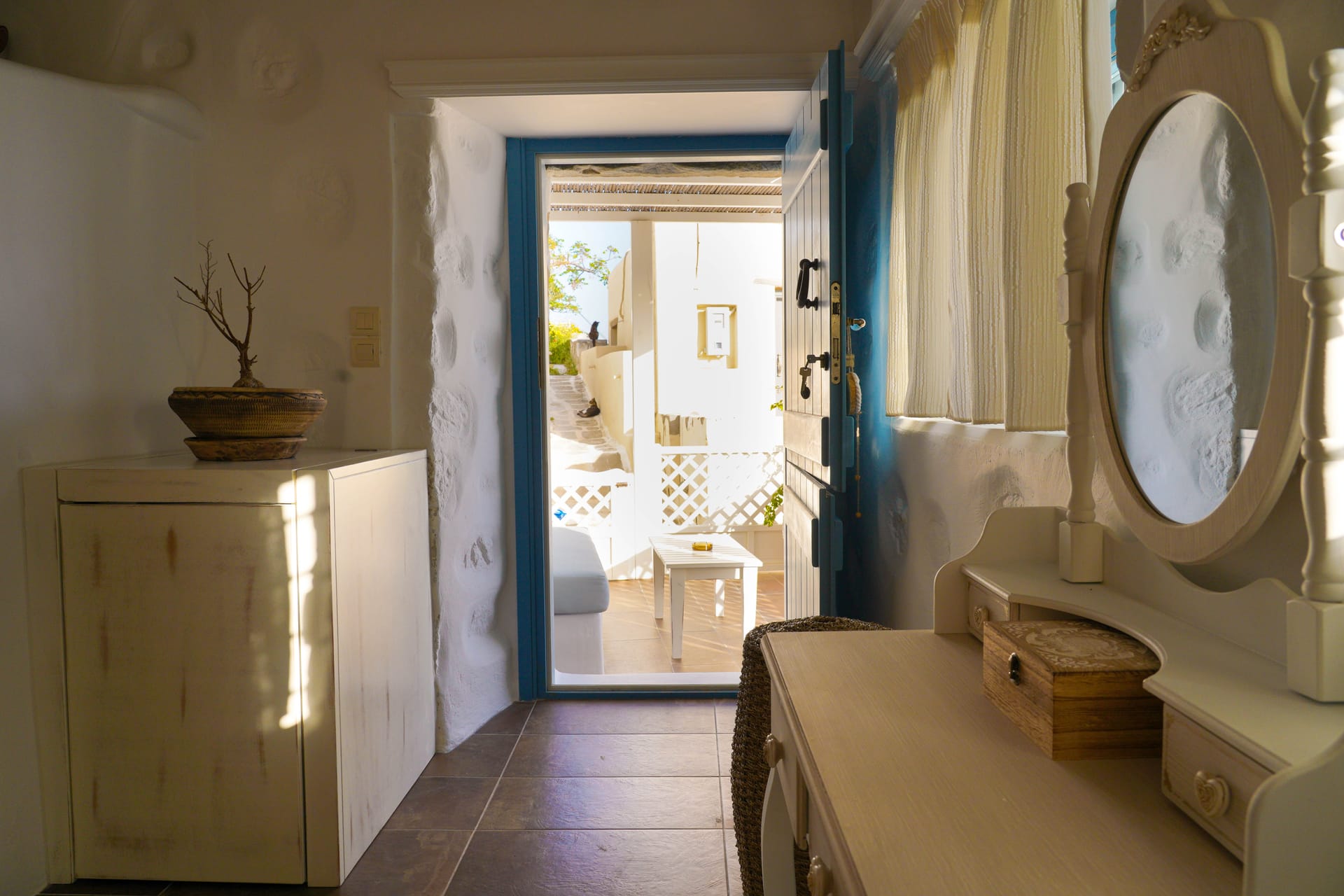 From the veranda and balcony, you can enjoy the spectacular view of the Aegean sea and mountains; a place to relax and enjoy the sunset or the striking sunrise for the early birds.