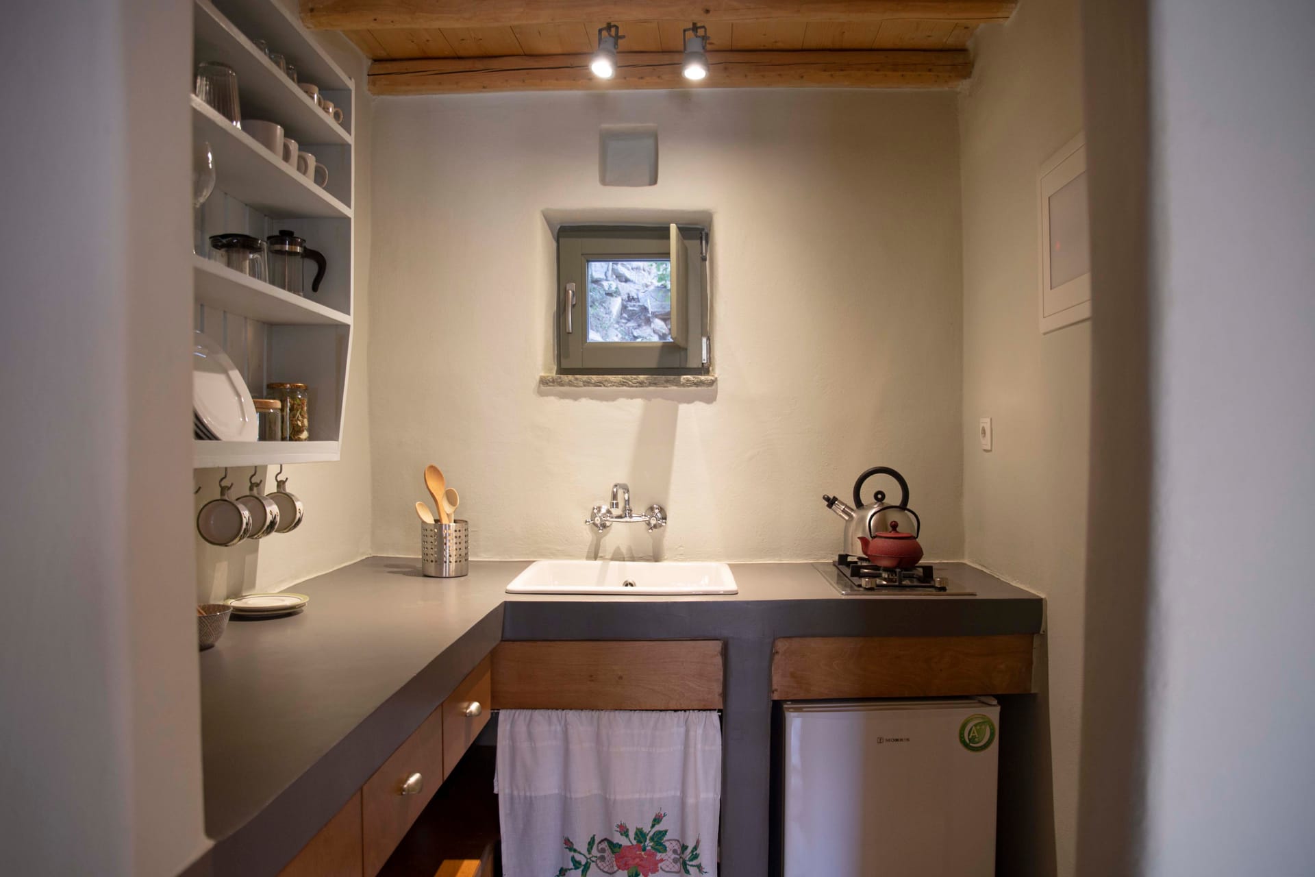 Both units have ensuite bathrooms and kitchens. Unit 1 has a king-sized bed that can be split into 2 singles. Unit 2 has a double bed. Private patios offer lovely views of Exombourgo hill and the beautiful village of Xinara.