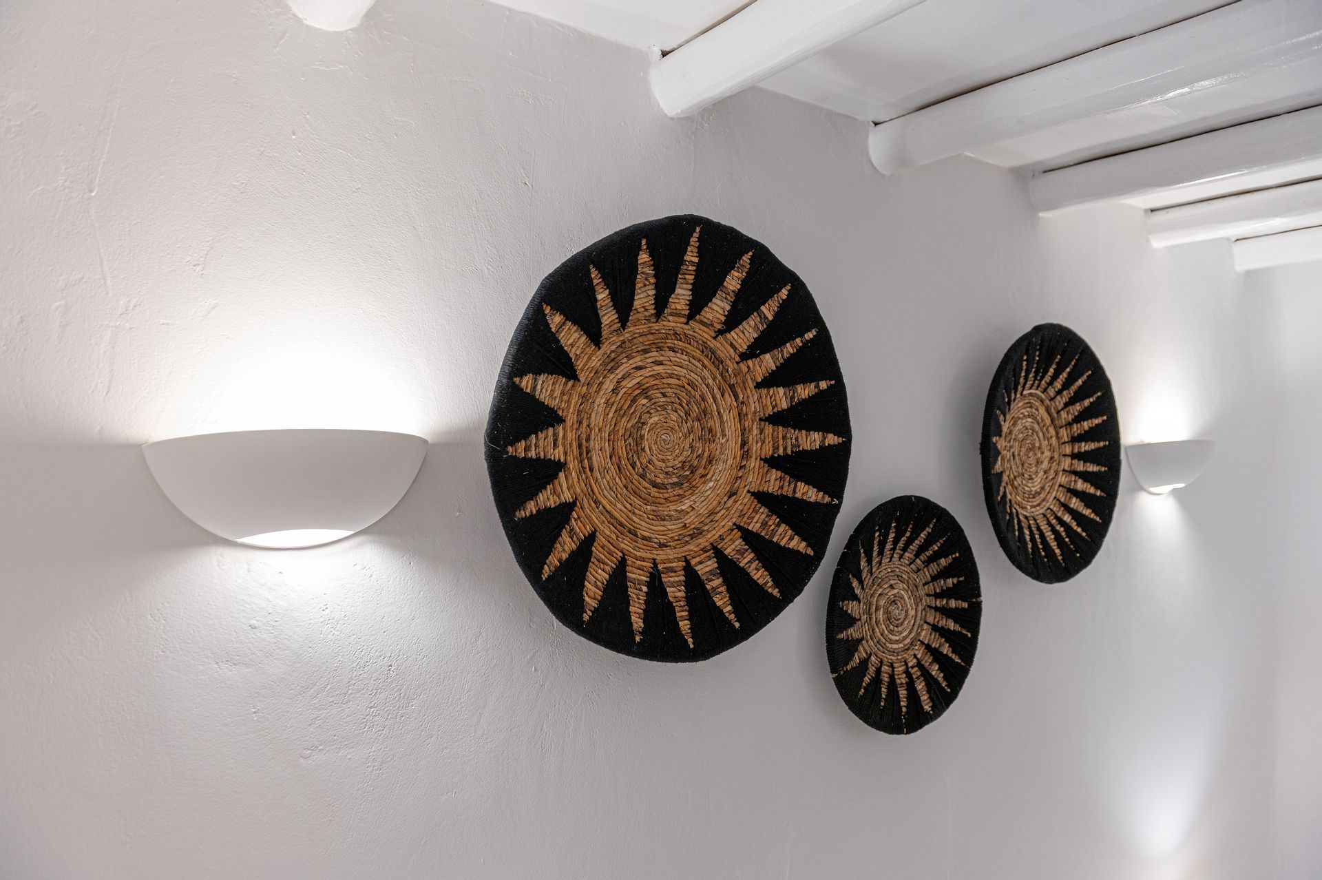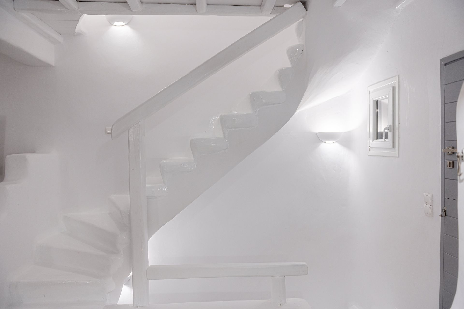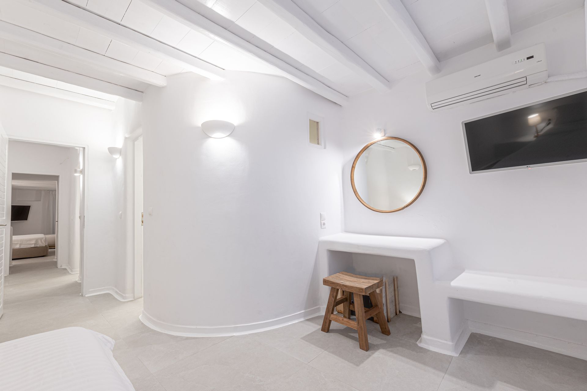 🏛️ White plaster, local stone, built-in couches, and wooden pergolas intertwined with Cycladic arches