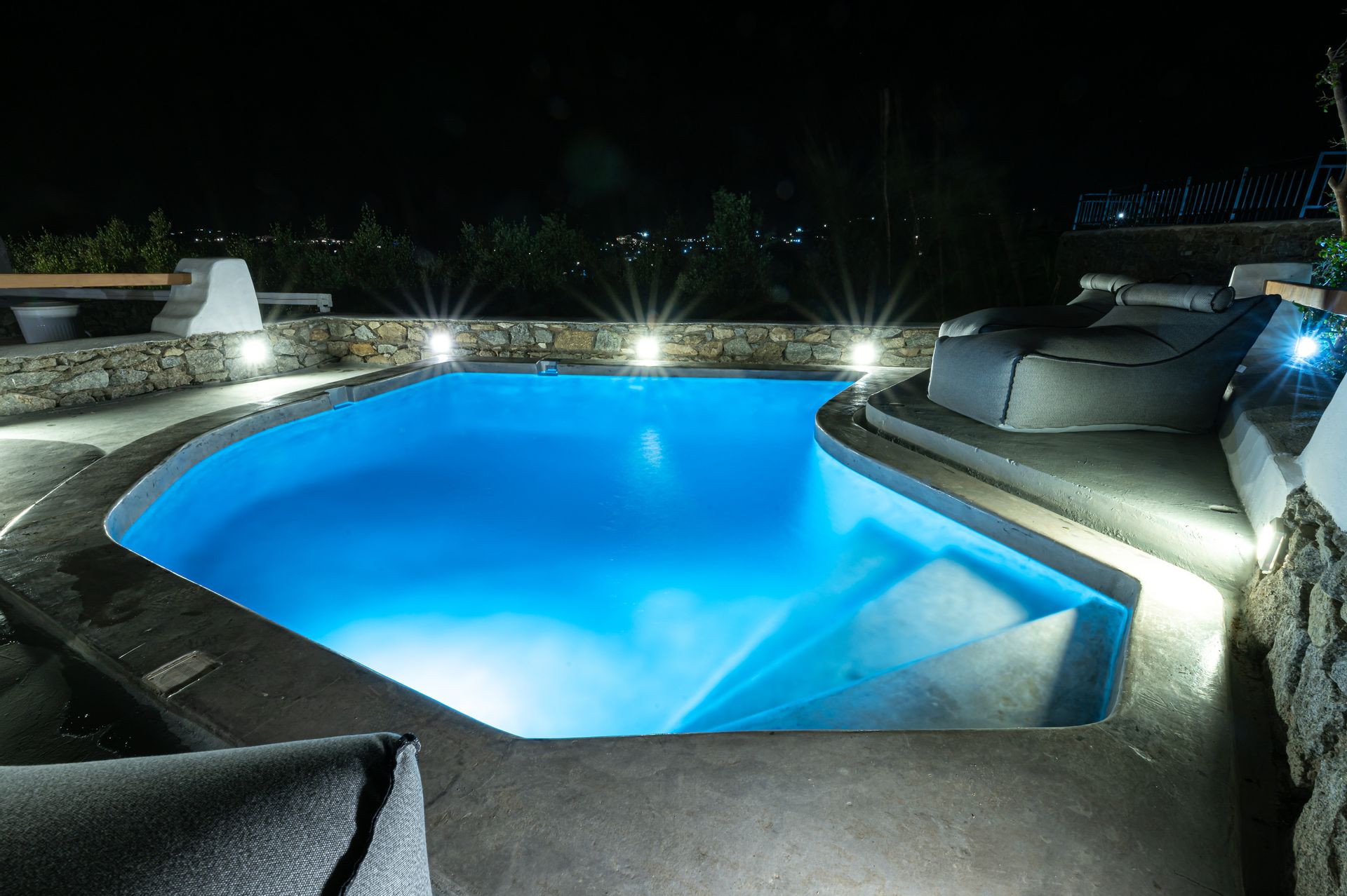 The nearest public transportation stop is 800 meters from the villa, though it’s uphill. We recommend Using our Convenient Private mini van service or renting a car or motorcycle to explore all that Mykonos has to offer—from stunning beaches by day to the vibrant nightlife.