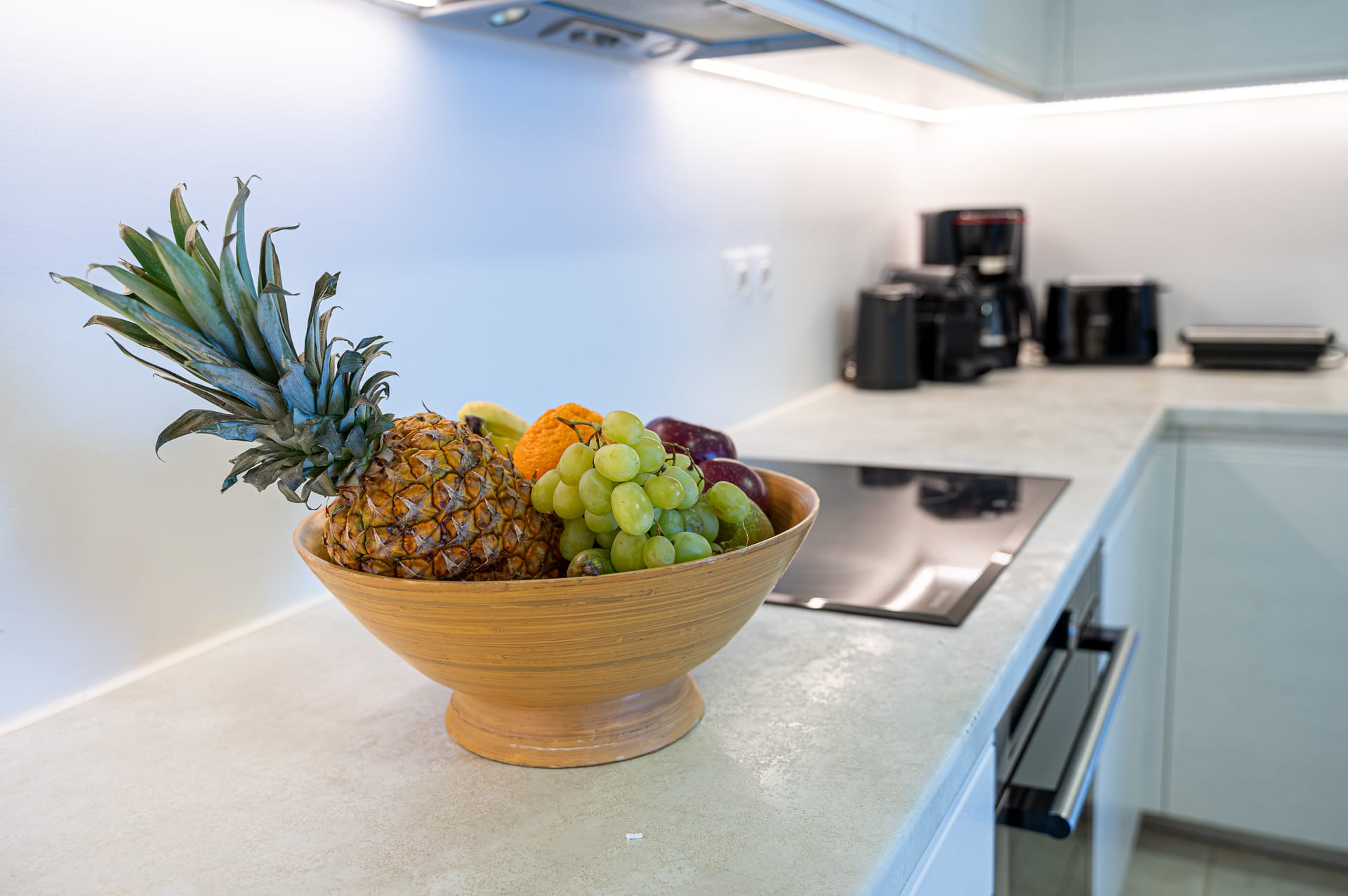 🍽️ Open-plan fully equipped kitchen with state-of-the-art appliances: oven, hotplates, fridge, Nespresso machine, filter coffee maker, toaster and easy access to the terrace.