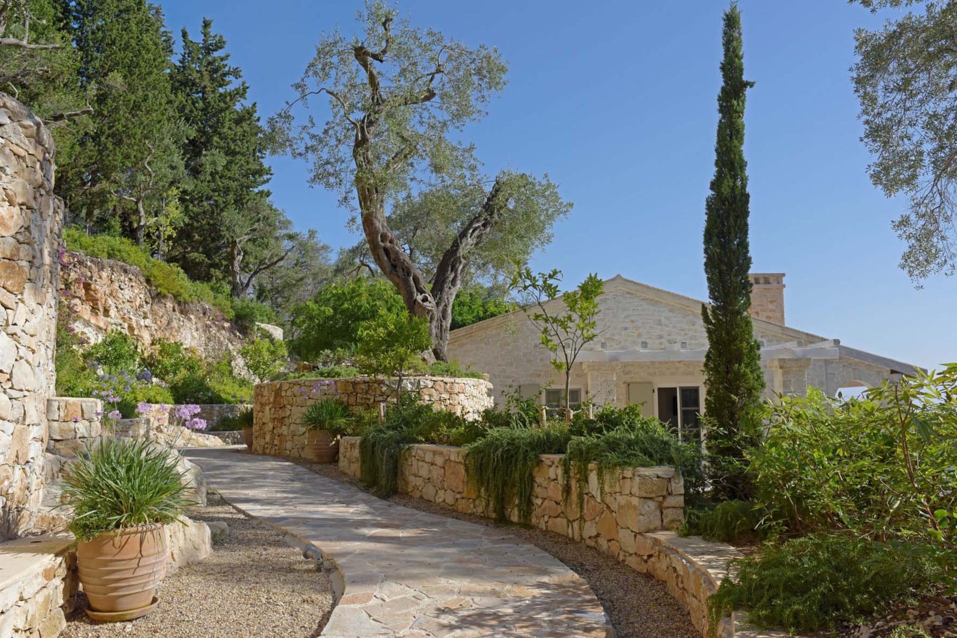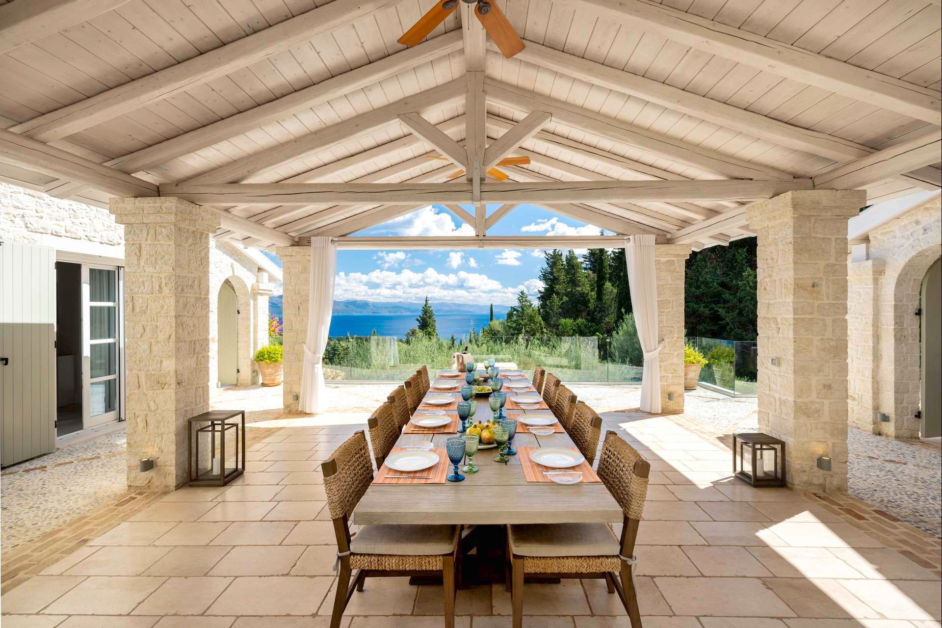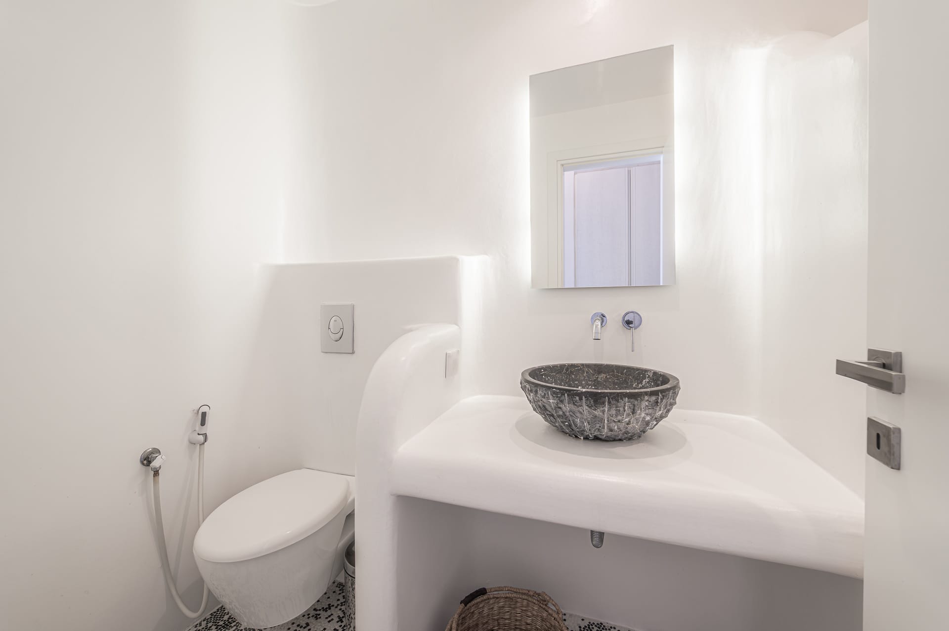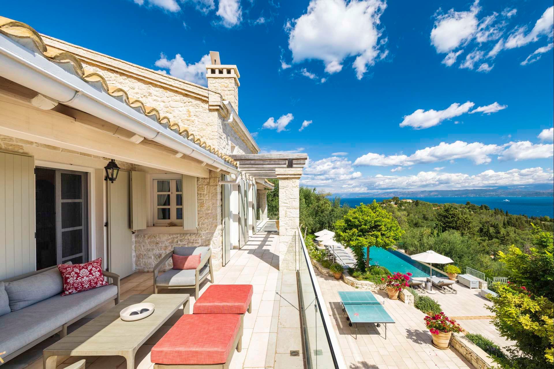 The Cycladic Mykonian architecture of this beautiful villa, in combination with the modern furniture, creates an elegant result as well as an impressive atmosphere.