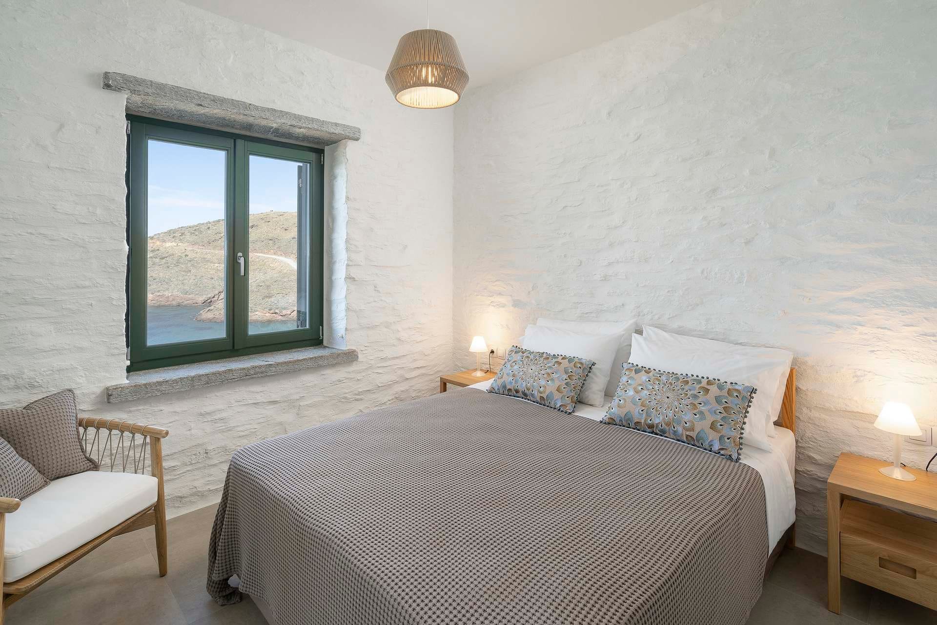 The luxurious 220 sq. meter, 5-bedroom villa is a stunning property meticulously designed to offer a fairy-tale holiday experience. Nestled in the scenic Kastro area, near the new port of Mykonos and overlooking the Aegean sea all the way to Tinos island this villa combines elegance with an idyllic location, promising an unforgettable stay.