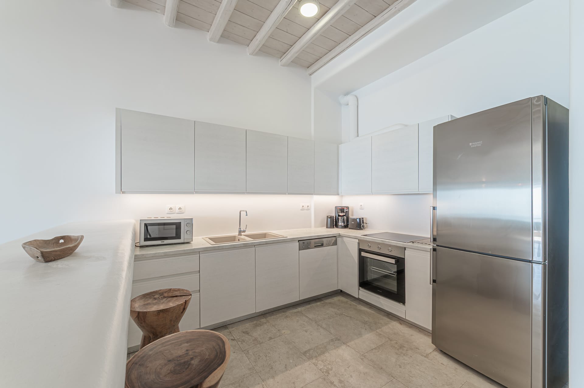 🍽️ Open-plan fully equipped kitchen with state-of-the-art appliances: oven, hotplates, fridge, Nespresso machine, filter coffee maker, toaster and easy access to the terrace.