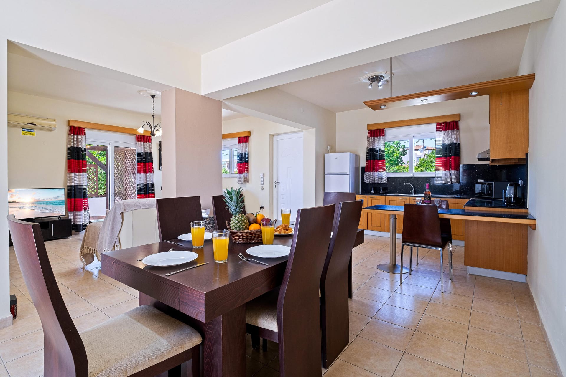 Modern decor combines with traditional architecture for a luxurious Greek holiday. Swim and relax during the day, party and enjoy the lights in the evening.3 distinctive and spacious bedrooms accommodate up to 8 people in commodious style.