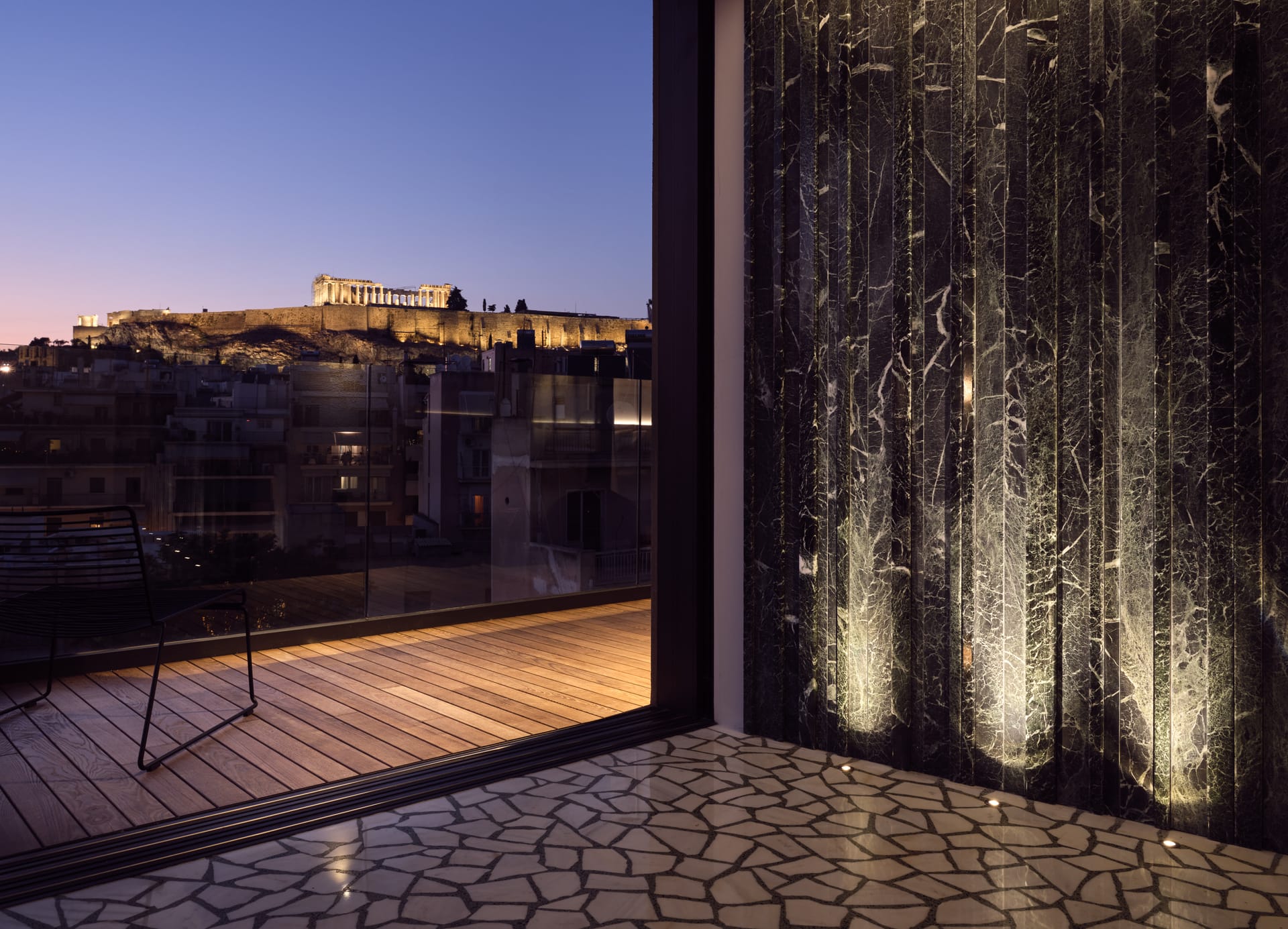 After a restful and rejuvenating sleep, enjoy your morning coffee relaxing on our elegant daybed with an unobstructed view of the architectural masterpiece of the ancients, the Parthenon.