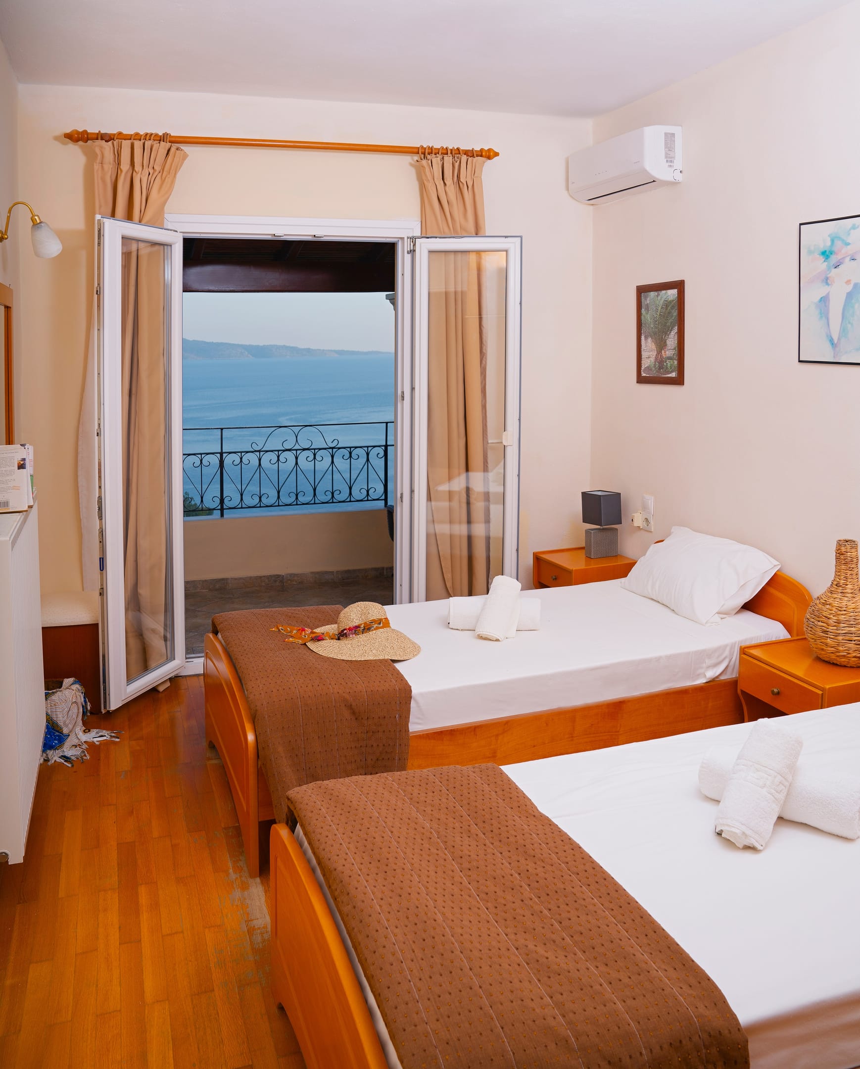 The 3-Bedroom Houses of Vasso Residences are 2 storey maisonettes with interior staircase and offer spectacular views to the pool and the infinity Ionian Sea. There is one bedroom with a double bed and two more with twin beds. The house has air-conditioning throughout and free Wi-Fi internet access. The kitchen is well-equipped with utensils & appliances ideal for your morning tea or coffee at the patio or balcony.