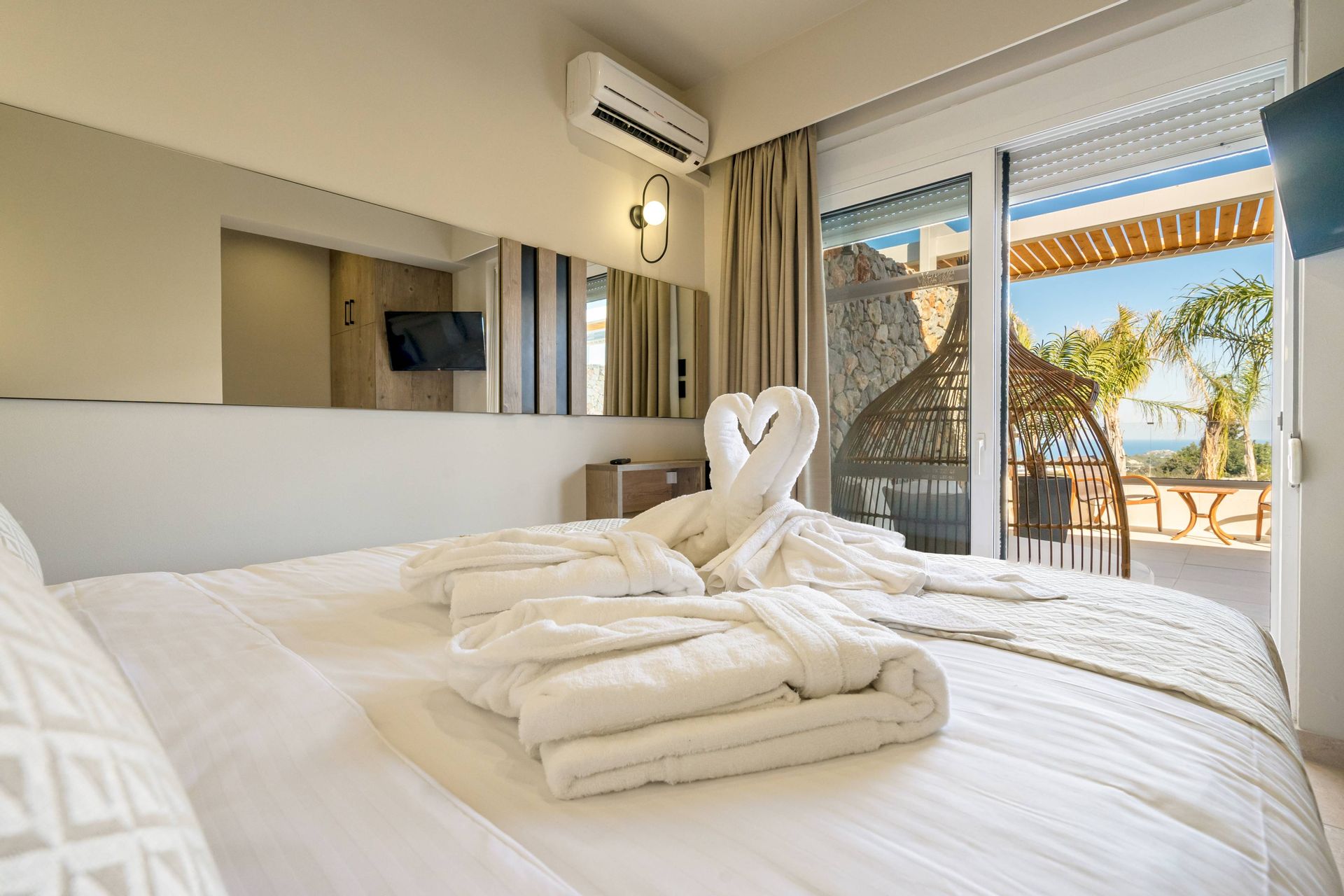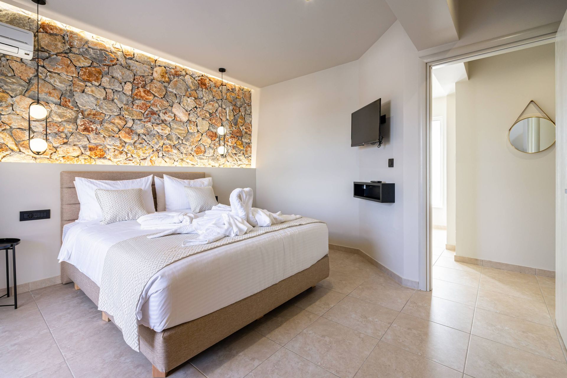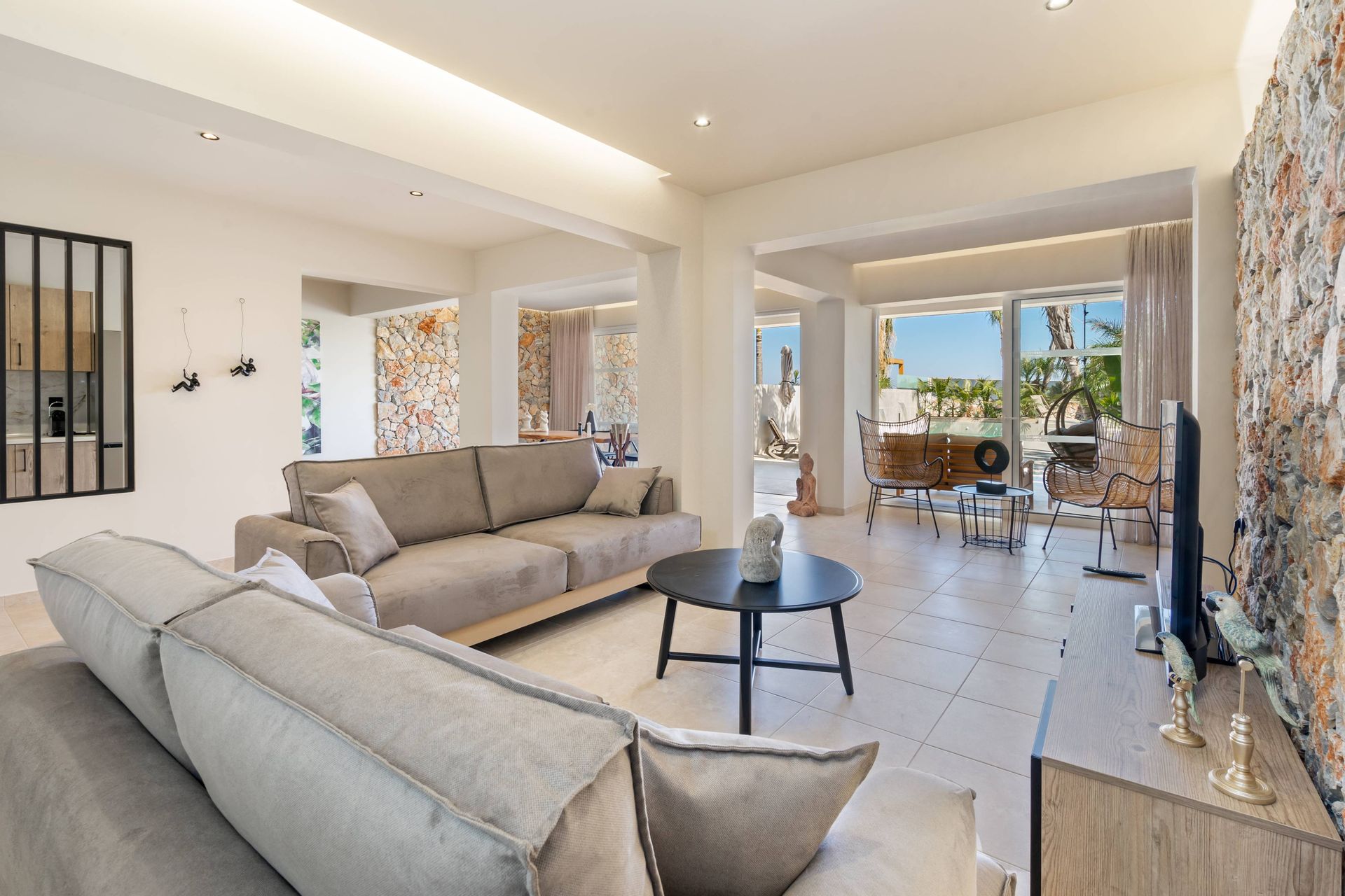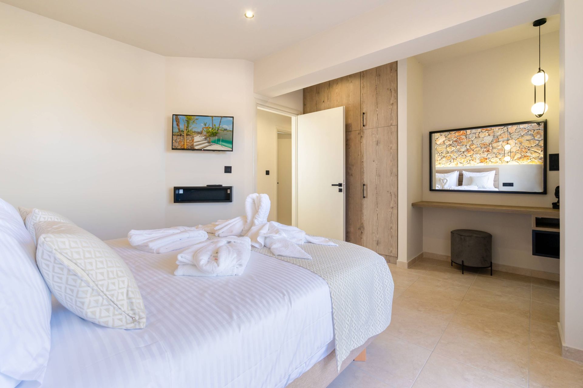 The Executive Luxury Villa at Venezia Luxury Living offers an exquisite blend of sophistication and comfort, designed for those who seek an exclusive retreat in the heart of Rhodes. This stunning villa features elegantly furnished interiors with high-end finishes, creating a space that is both stylish and inviting. Spacious living areas seamlessly connect to the outdoor terraces, where guests can relax while soaking in breathtaking views of the Aegean Sea. Every detail, from the contemporary decor to the state-of-the-art amenities, ensures a stay that is both indulgent and serene.