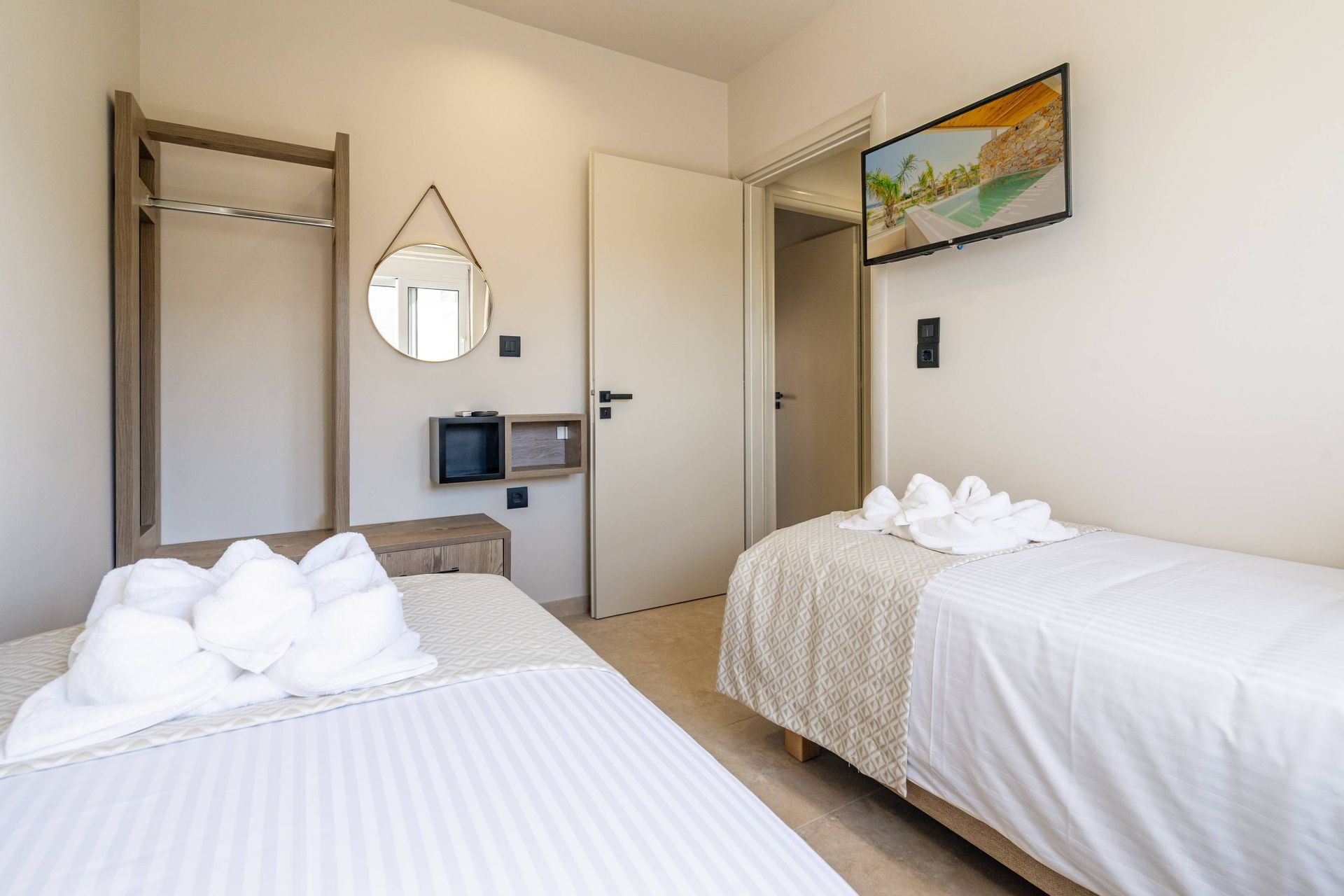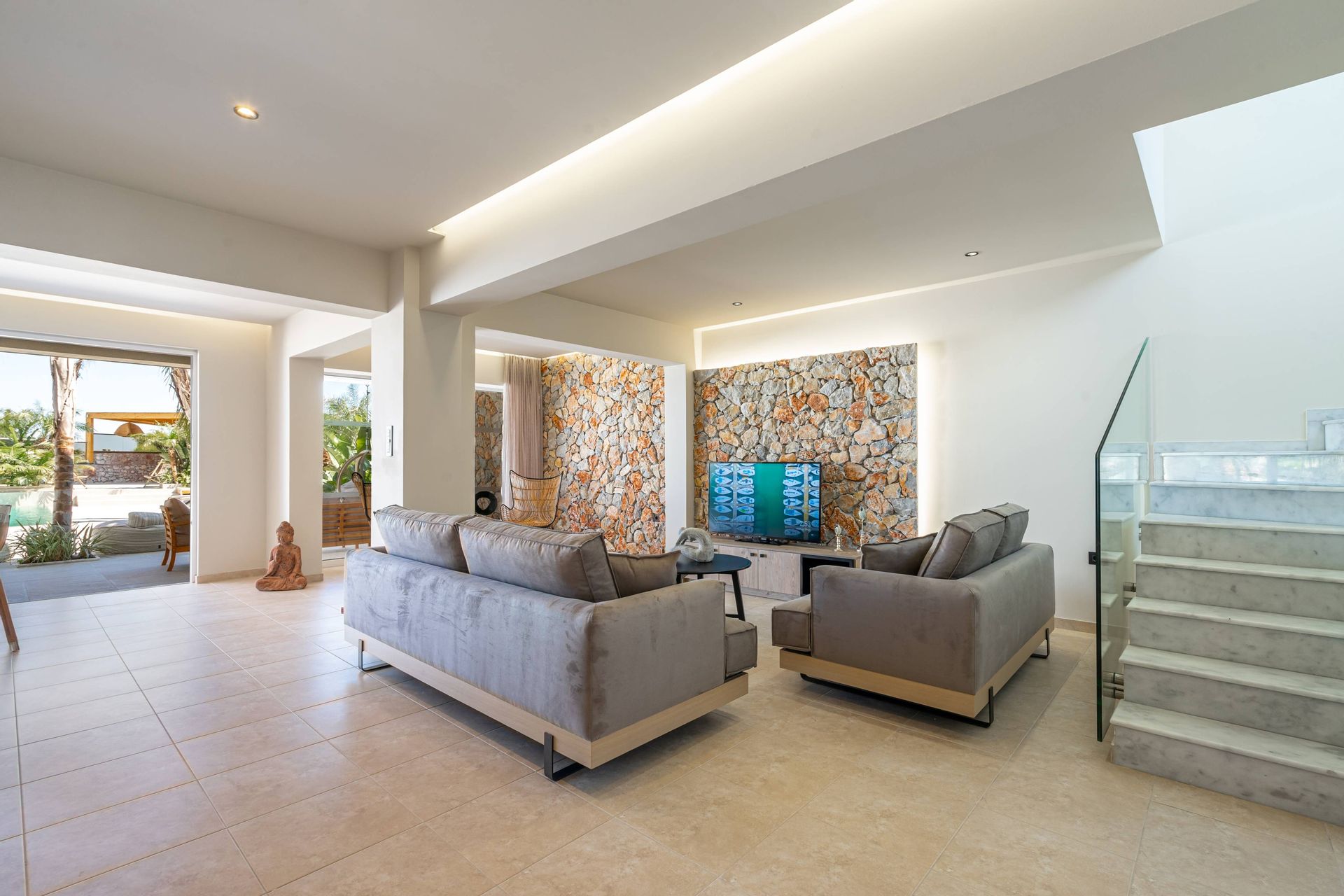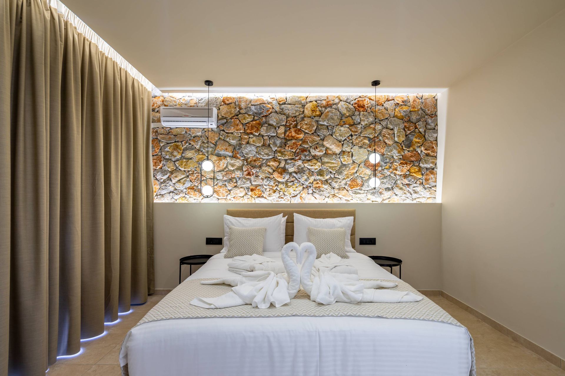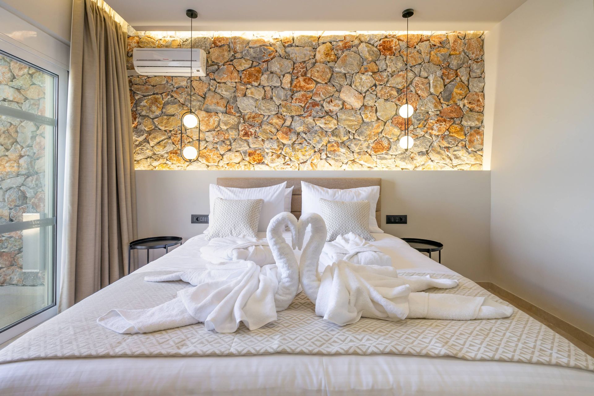 The Executive Luxury Villa at Venezia Luxury Living offers an exquisite blend of sophistication and comfort, designed for those who seek an exclusive retreat in the heart of Rhodes. This stunning villa features elegantly furnished interiors with high-end finishes, creating a space that is both stylish and inviting. Spacious living areas seamlessly connect to the outdoor terraces, where guests can relax while soaking in breathtaking views of the Aegean Sea. Every detail, from the contemporary decor to the state-of-the-art amenities, ensures a stay that is both indulgent and serene.