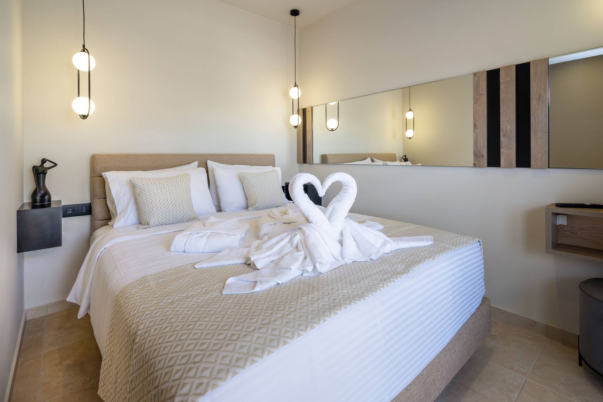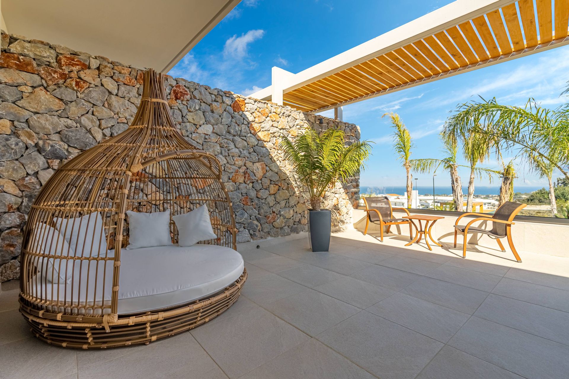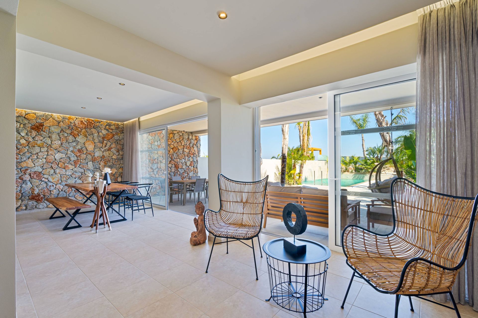 Ideal for families or groups looking for a private sanctuary, the Executive Luxury Villa accommodates up to 6 guests and boasts spacious bedrooms with en-suite bathrooms, a fully equipped kitchen, and beautifully designed outdoor spaces for ultimate relaxation. Guests can enjoy sun-soaked afternoons on the terrace, unwind in the tranquil ambiance, or dine under the stars in an intimate al fresco setting. Whether seeking a peaceful escape or a lavish island experience, the Executive Luxury Villa at Venezia Luxury Living promises unparalleled comfort, elegance, and breathtaking surroundings.