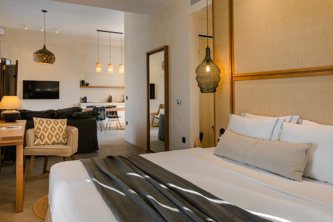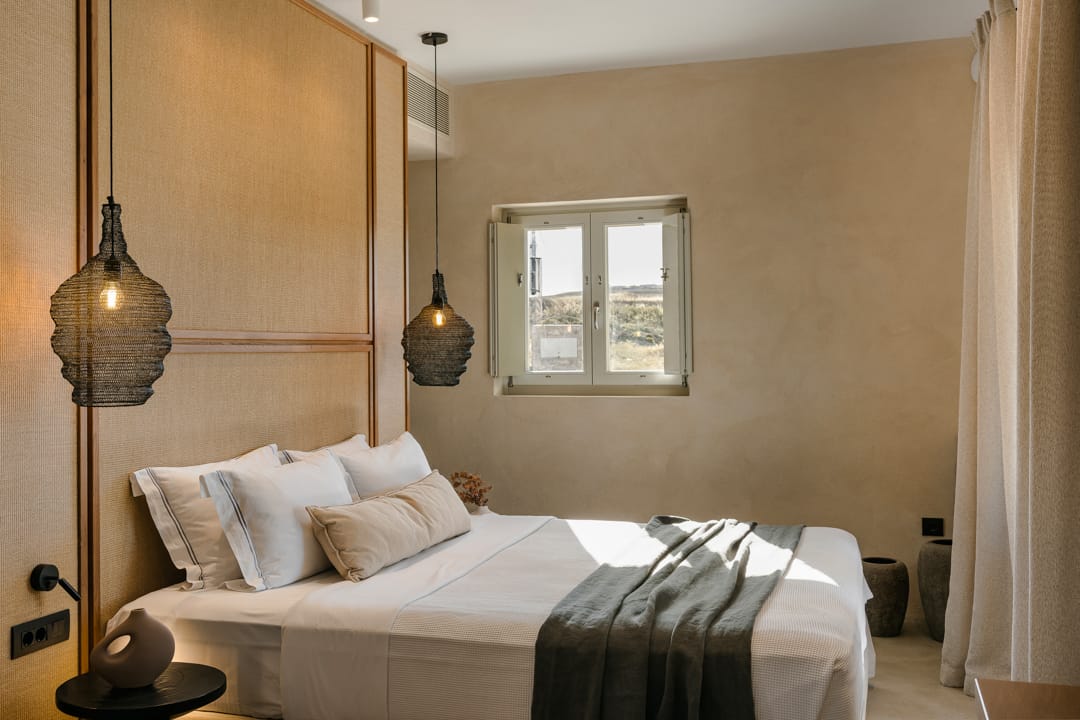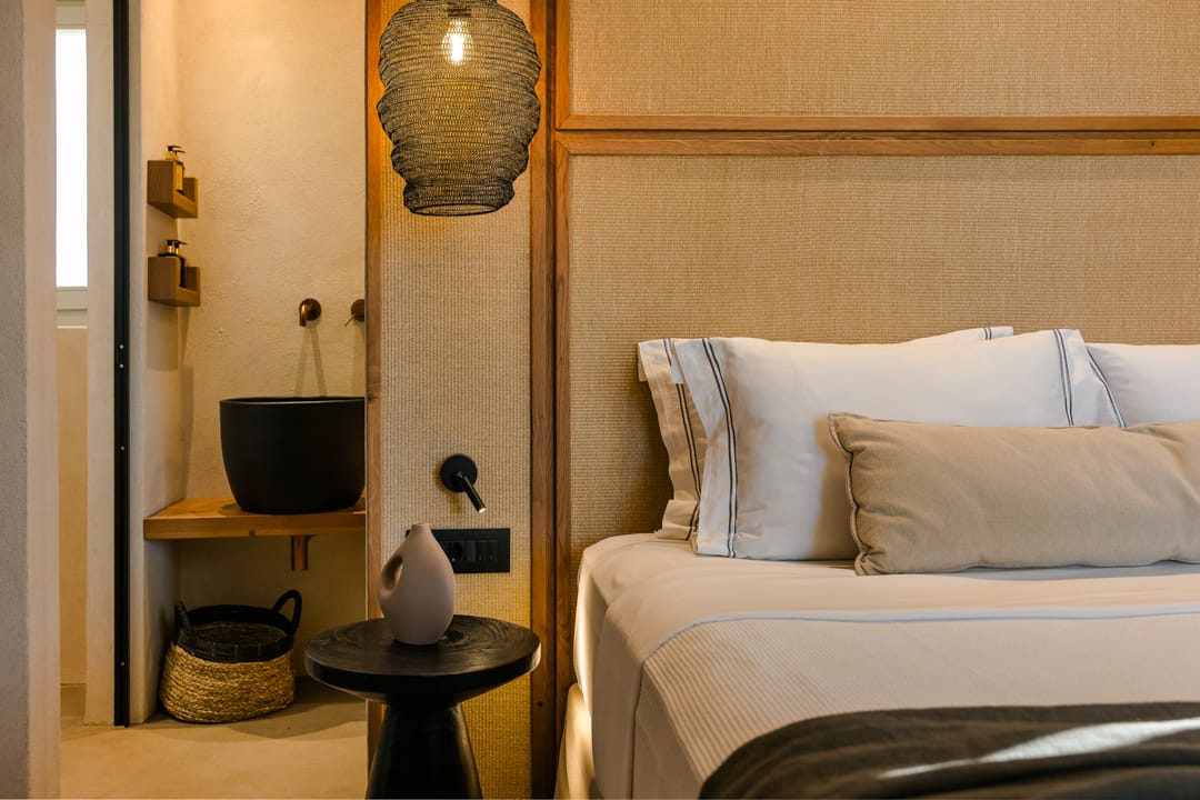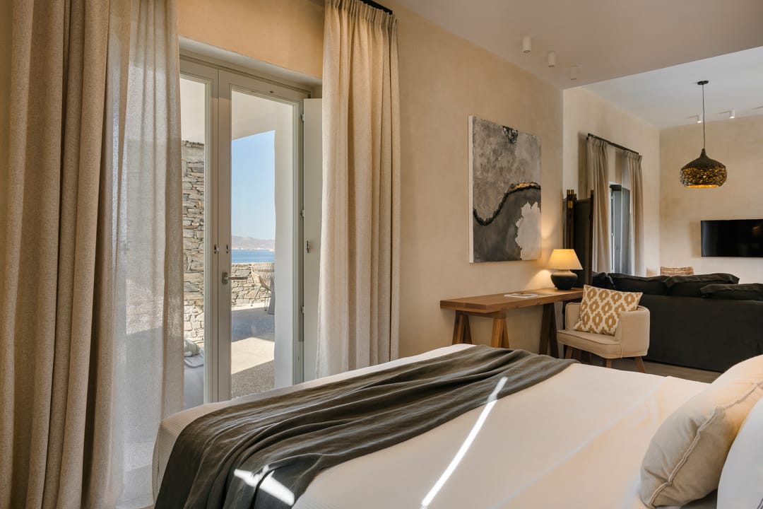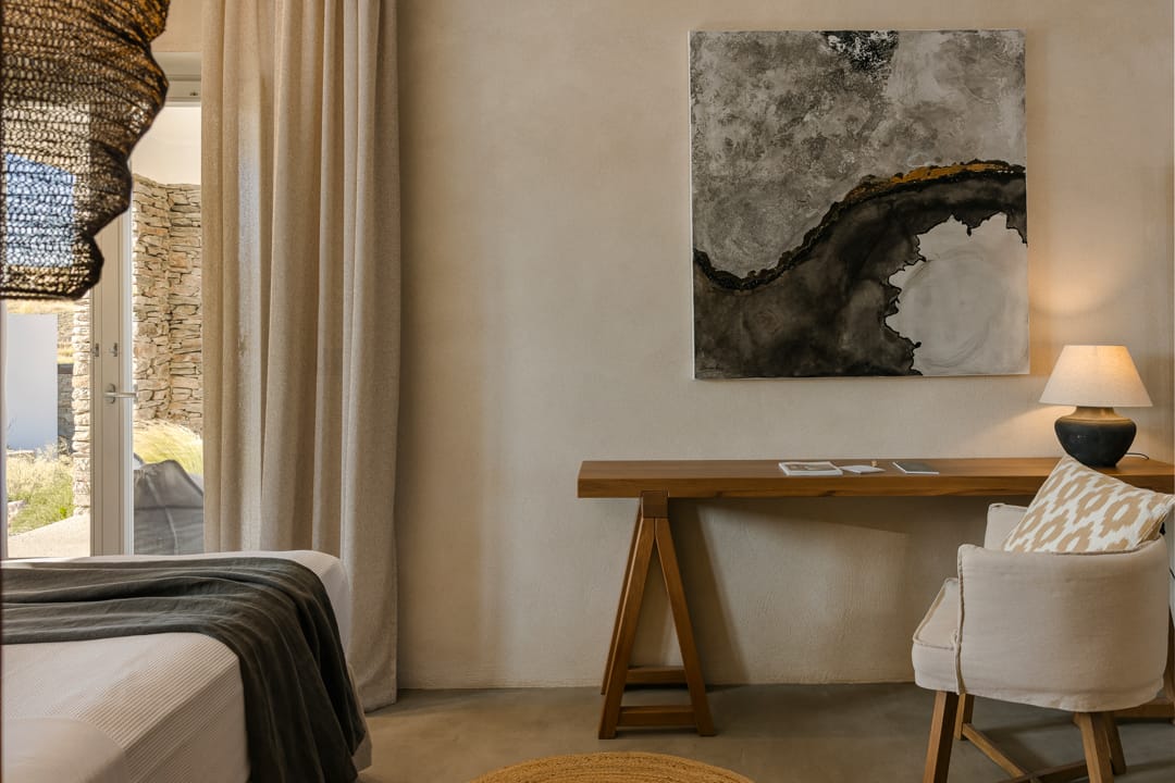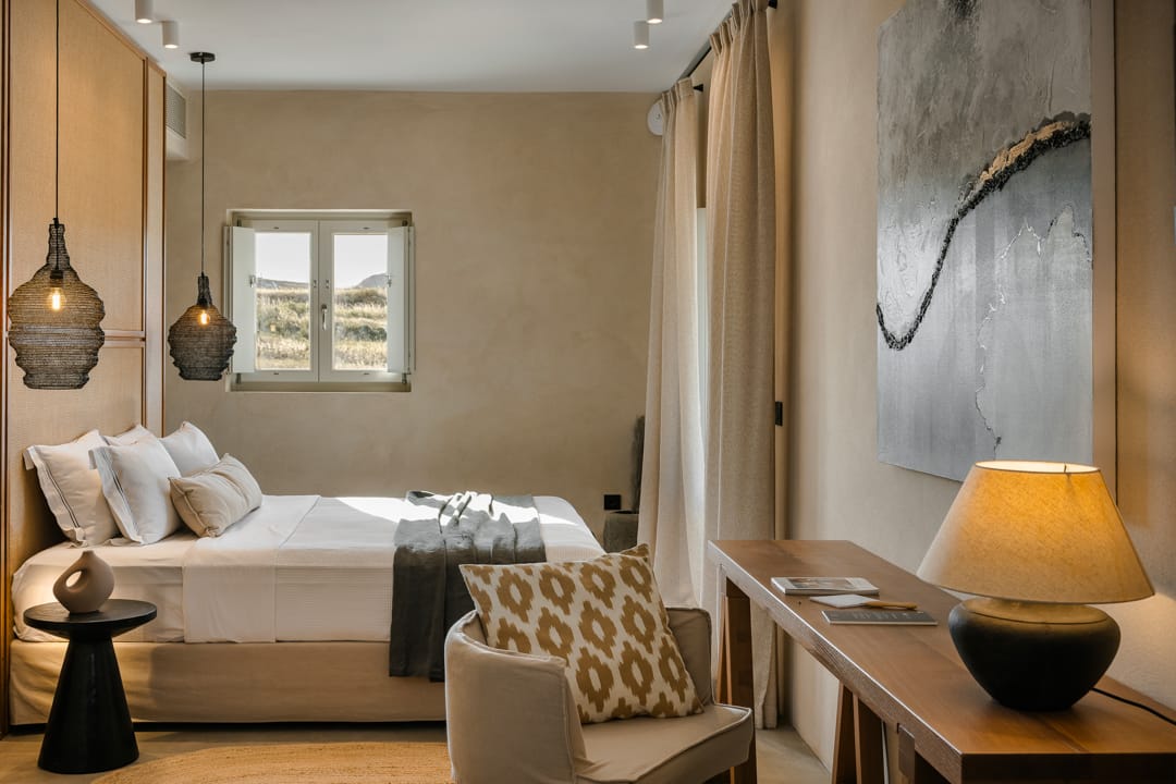 The Open Space Exclusive Suite combines minimalist decor, earthy colours, fine linens, details, artwork with Cycladic architecture.