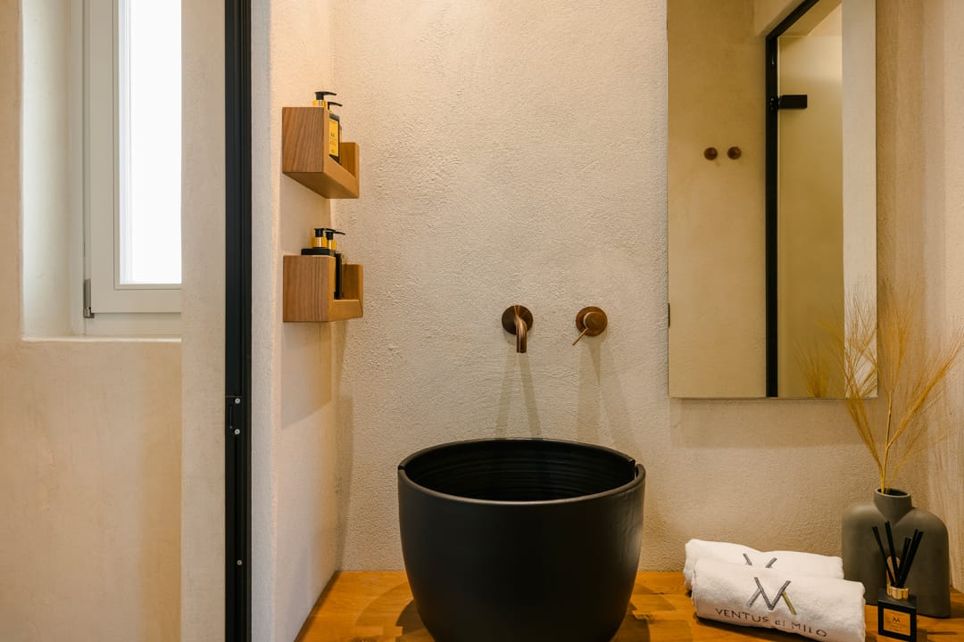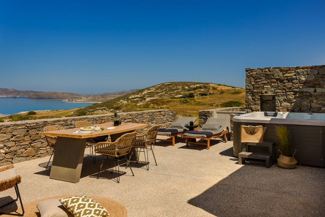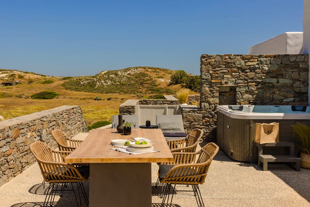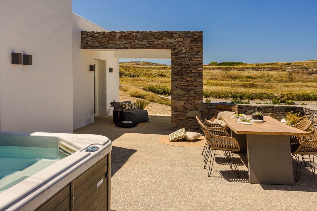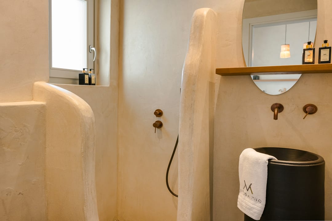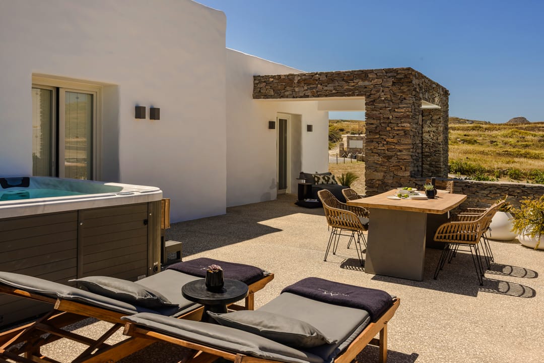 The Open Space Exclusive Suite combines minimalist decor, earthy colours, fine linens, details, artwork with Cycladic architecture.