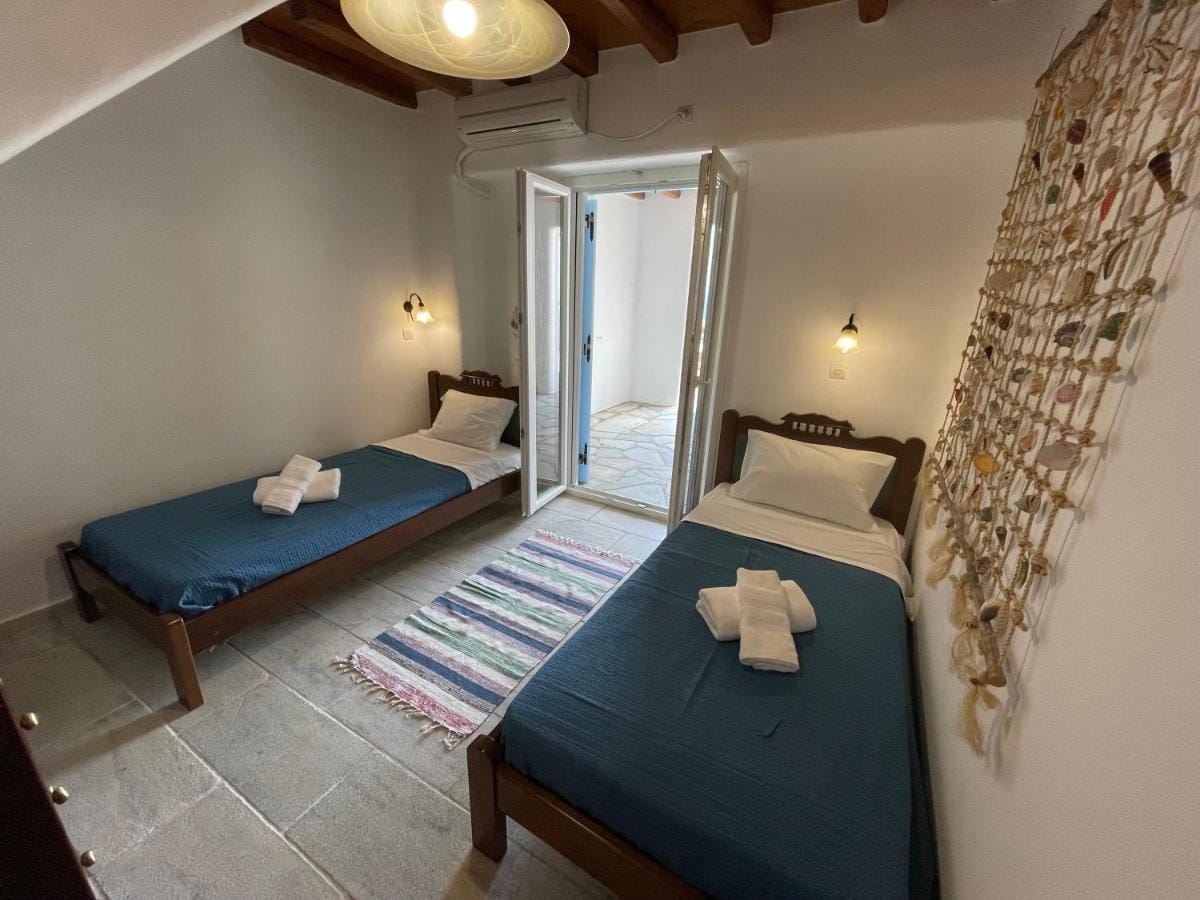 - Combining Cycladic architectural tradition includes two bedrooms, one with a double bed and the other with two single beds.