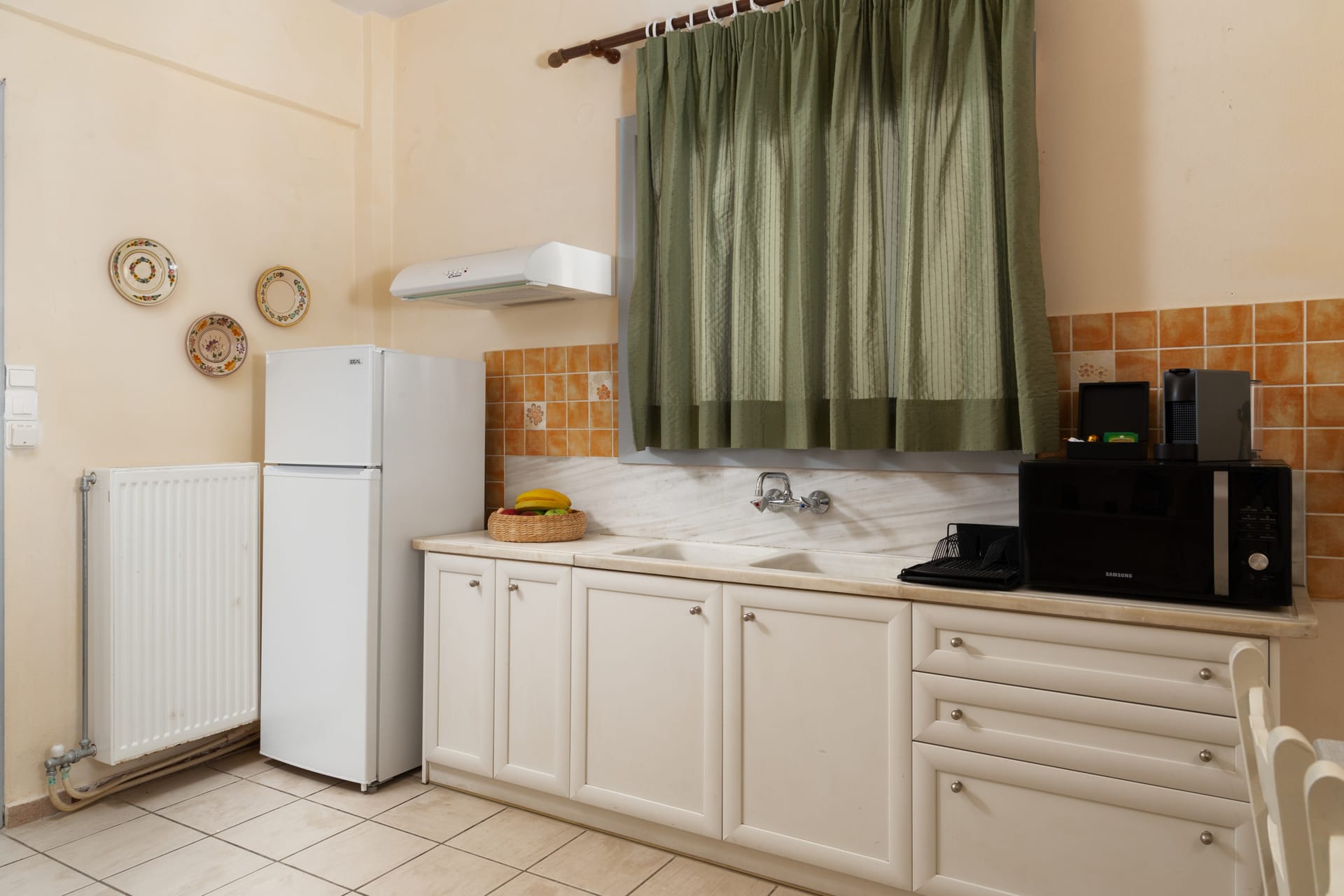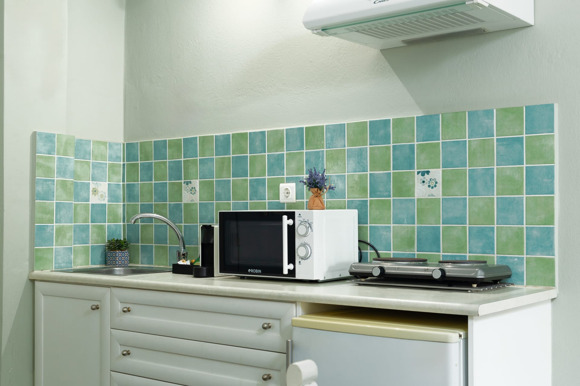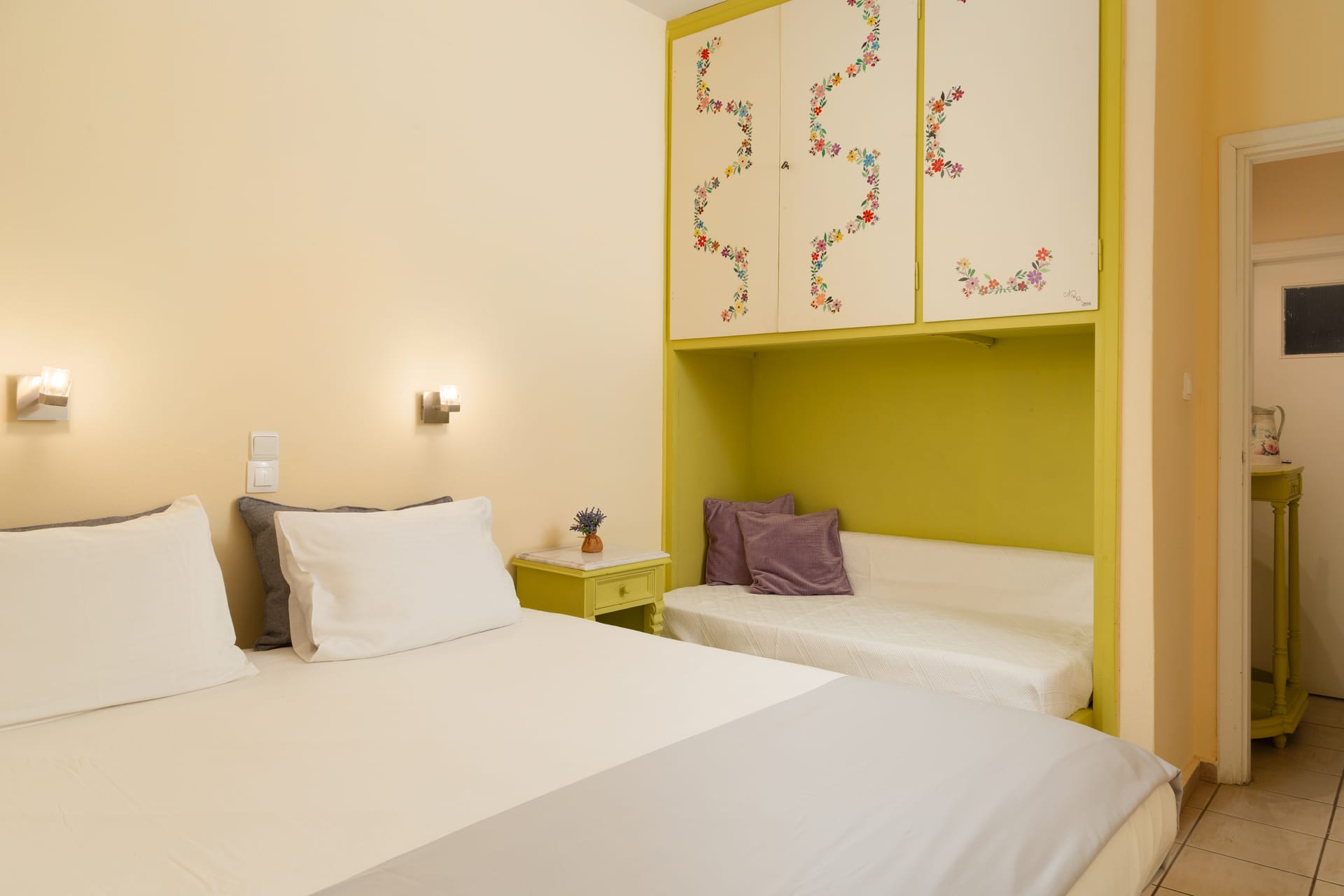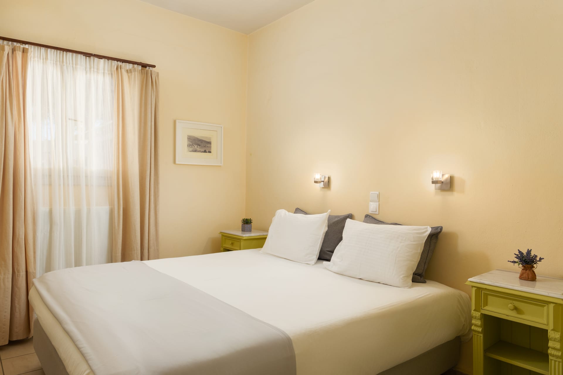 These apartments feature a spacious terrace with beautiful views—ideal for enjoying both the sea and the village. They accommodate 2 to 4 guests and include a separate bedroom with a large double bed, while the kitchen area offers single beds for additional sleeping space. The terrace is furnished with outdoor seating, so you can relax with the view and comfortably enjoy your coffee or meals.