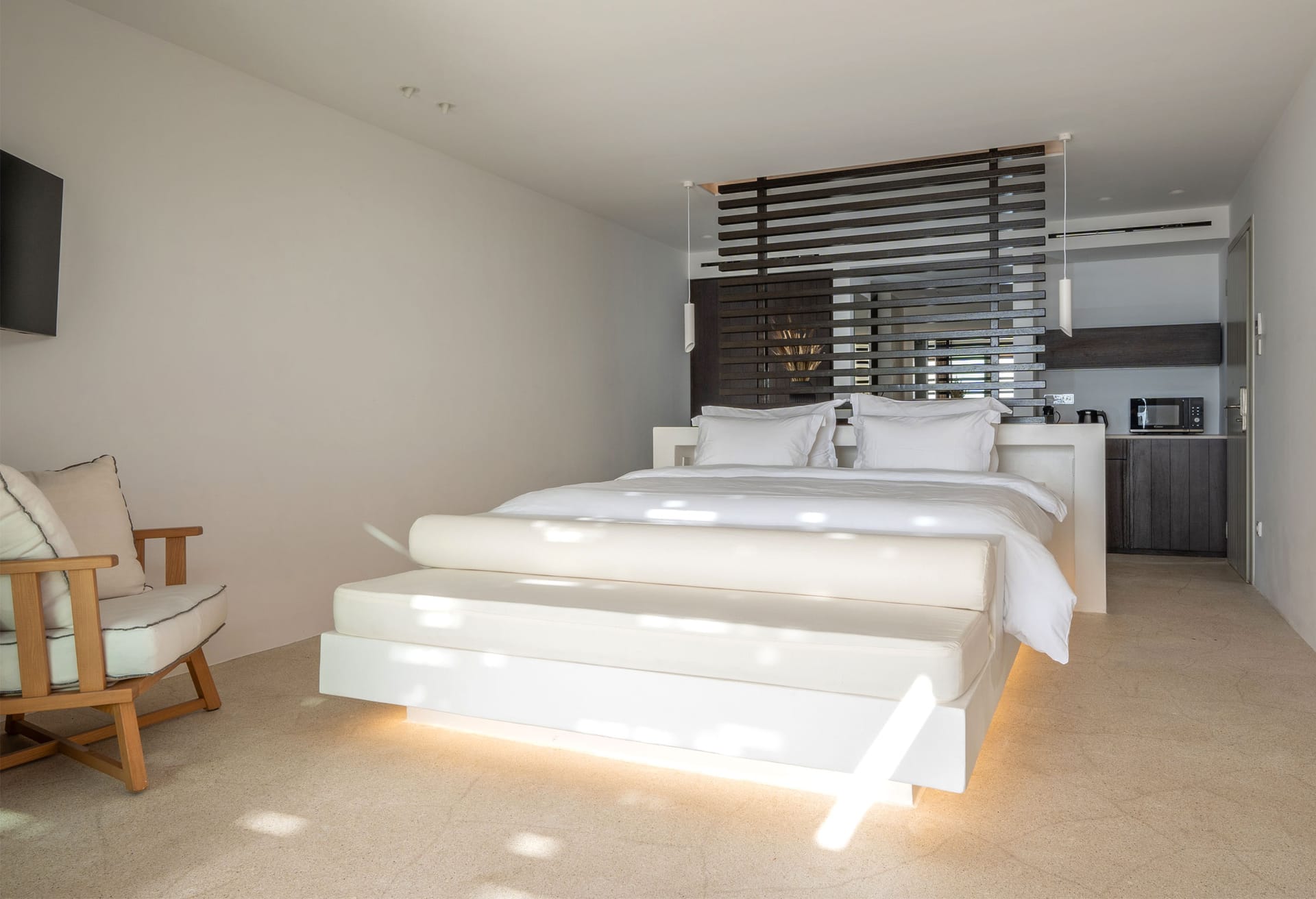 The outdoor area is designed to offer relaxing moments during the day and night. A pergola offers shade on the outdoor terrace of the house where you will find a BBQ area with a dining table. An outdoor sofa is an ideal place to enjoy the infinite sea view. The house is just a few steps away from the sea. You can relax on the outdoor veranda and gazes at the amazing sunsets and listen to the sounds of the sea.