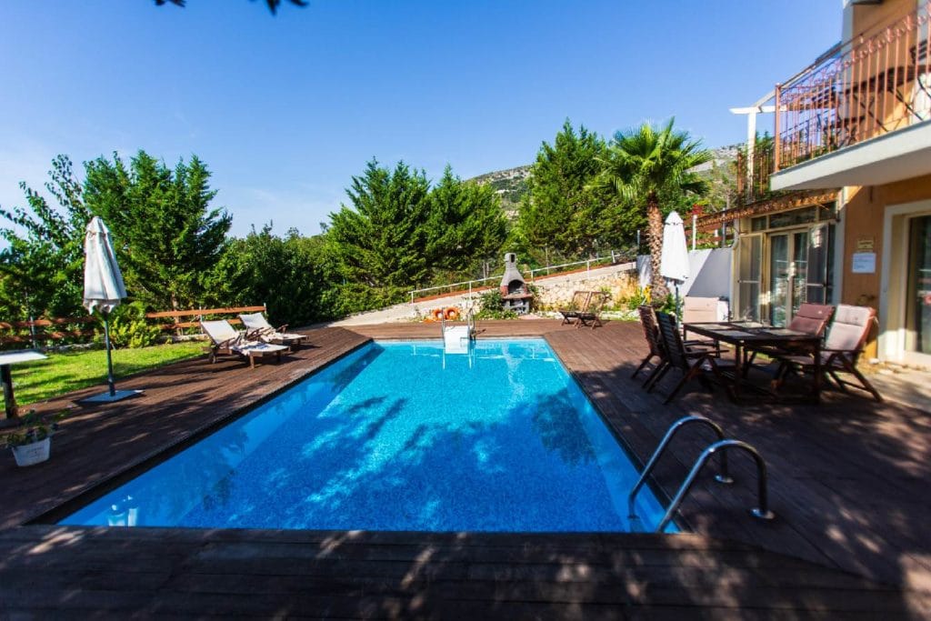 Ground floor: Second bedroom with double bed, A/C, en-suite bathroom, small living area & third bedroom with double bed. All bedrooms with wooden floor, premium mattress and full cotton duvet and two types of pillows for a perfect night’s sleep, A/C, en-suite bathrooms and large terrace with pool and sea view. All the hotel amenities like soaps, travel size shampoos, body lotions, and complete bathroom amenities kits and hair dryer. Safe box.