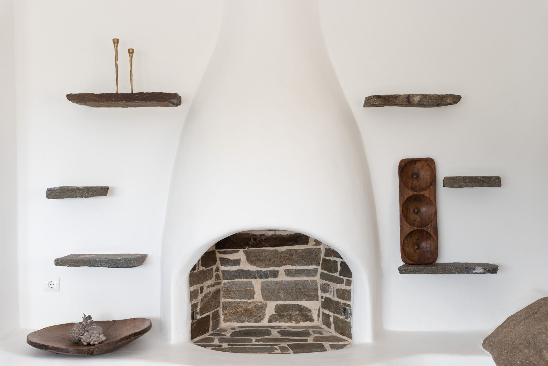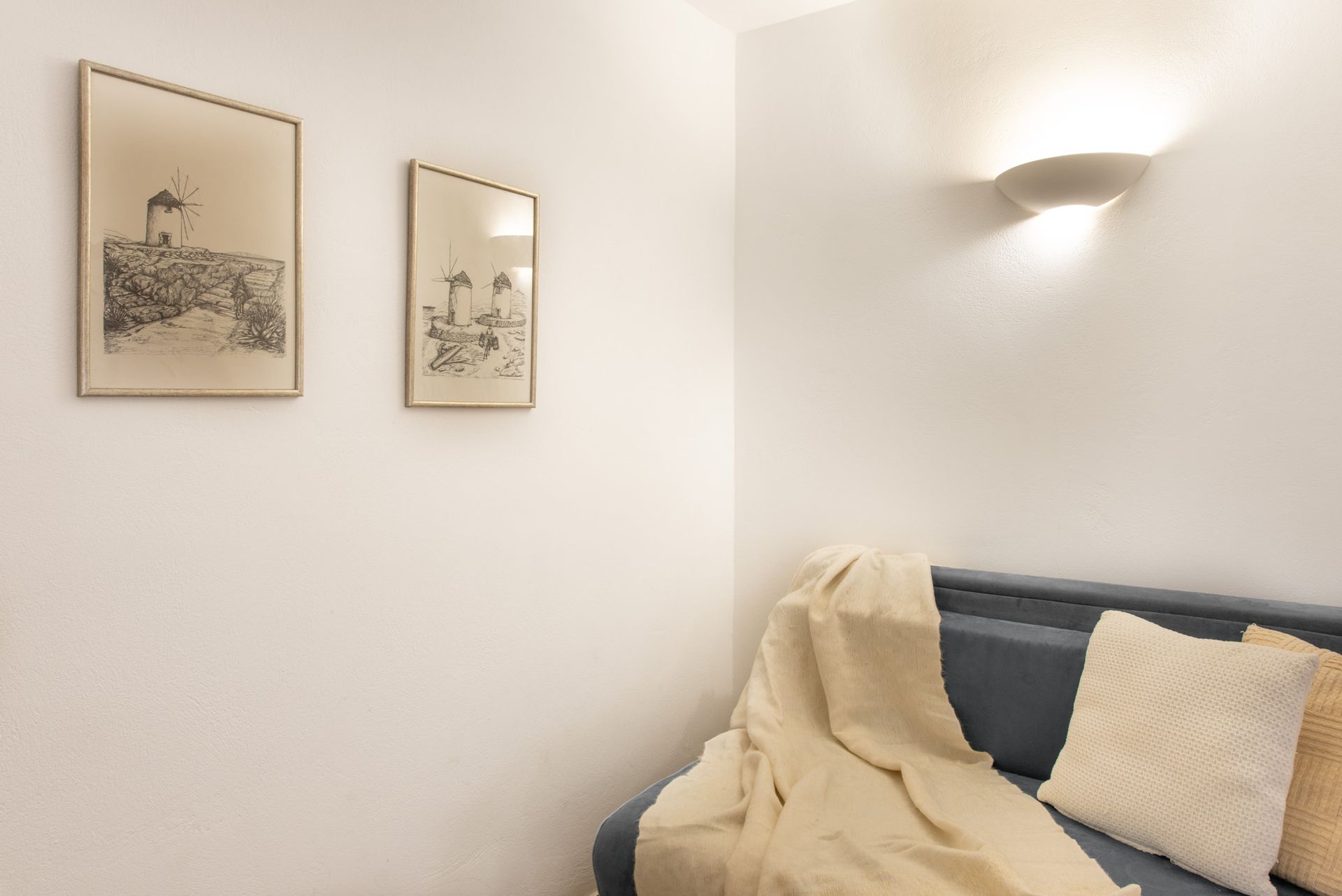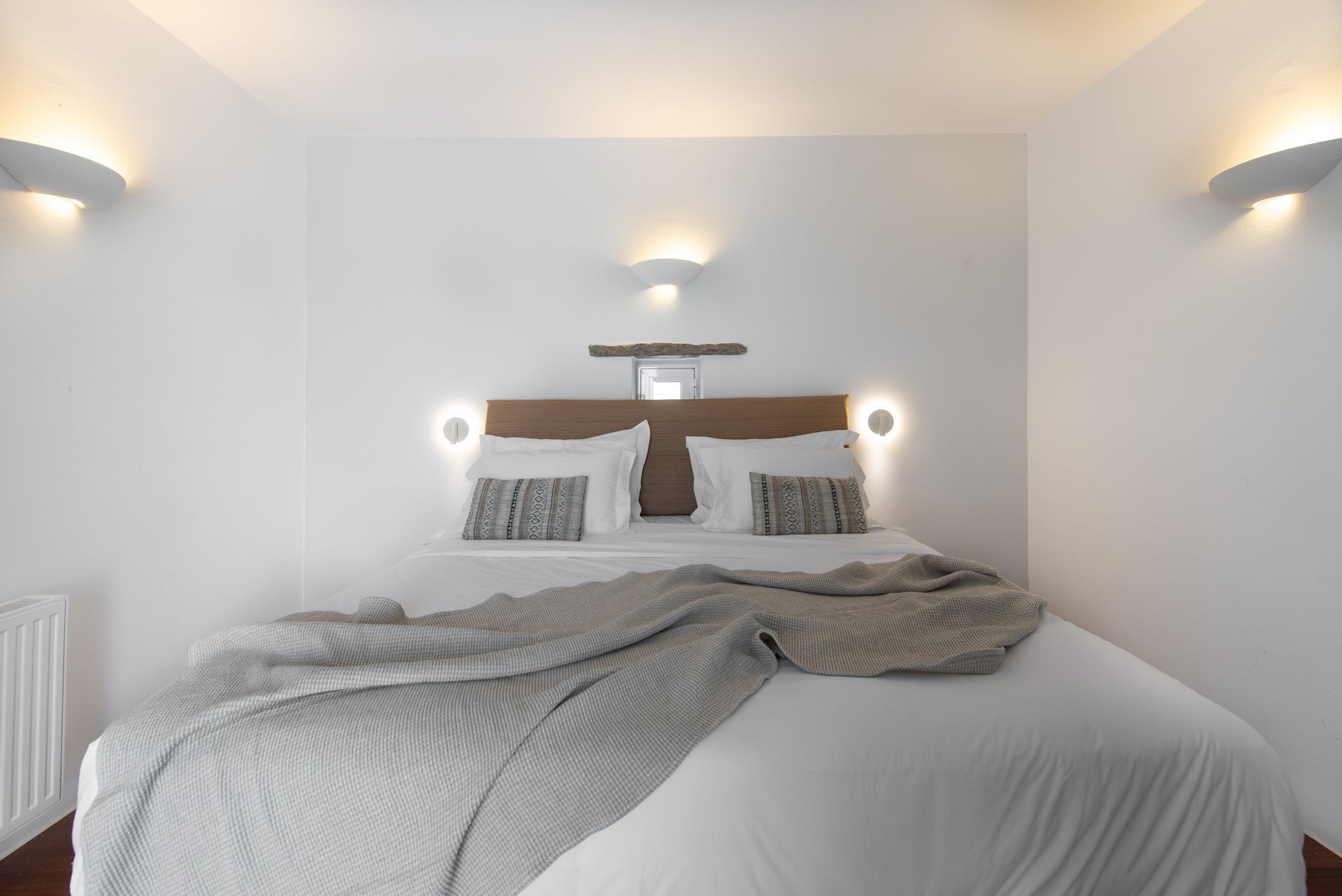 Upper floor: One master bedroom with wooden floor and minimal design, windows and large terrace that faces the Aegean Sea. Independent access.