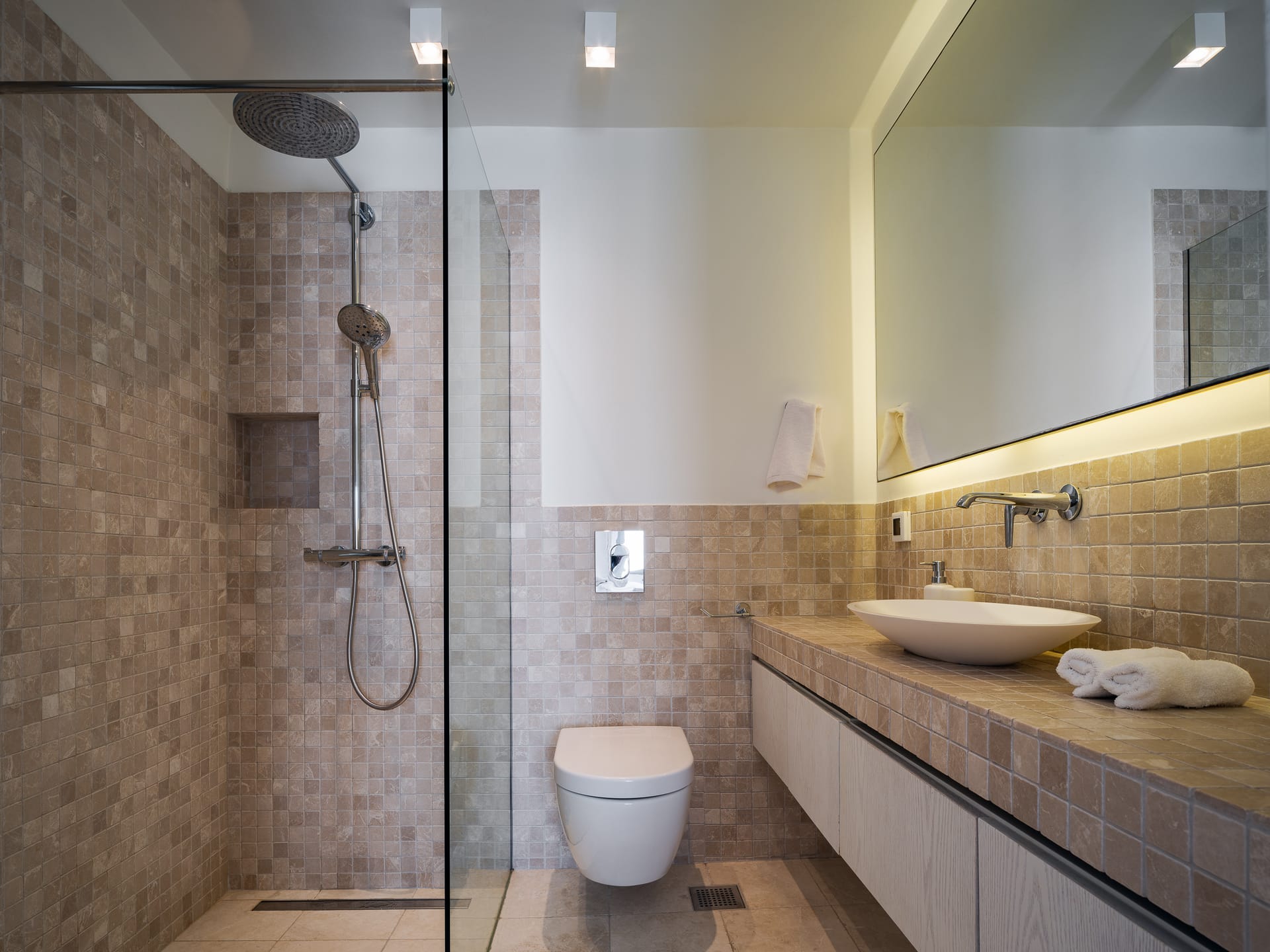 Each bedroom is thoughtfully equipped with modern amenities, including air conditioning, underfloor heating, high-speed Wi-Fi, and a flat-screen TV, ensuring every comfort for a memorable stay.