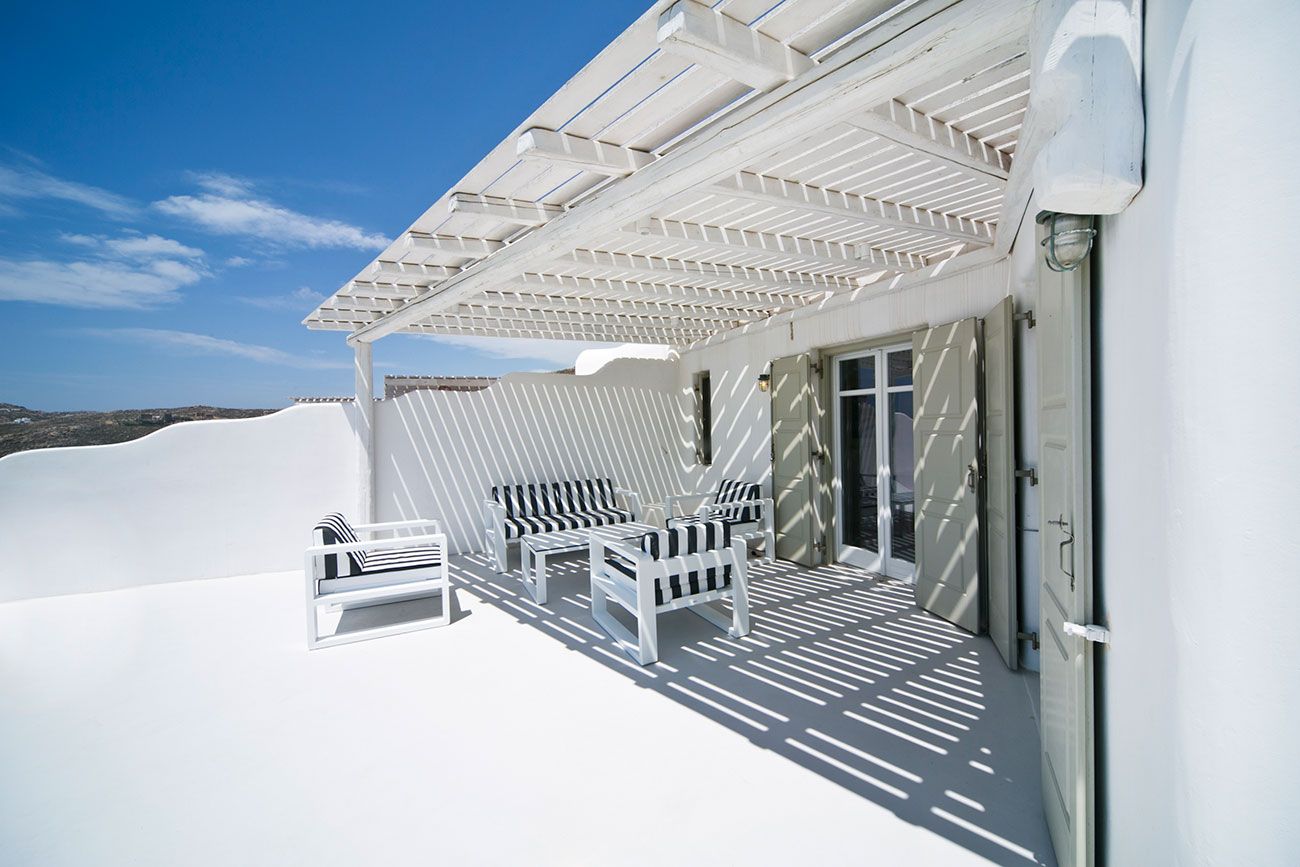 The luxurious minimalism of the Cycladic architecture of the interiors combined with an entire range of modern day conveniences offered at the Badani Villa make up for an incredible holiday villa accommodation for people who find delight in blissful solitude. The most exclusive feature of the Villa is that nearly 85% of its assets are fully recyclable and all the electronic appliances equipped inside belong to the lowest Energy consumption class, making it one of the most environment-friendly properties in the neighborhood.