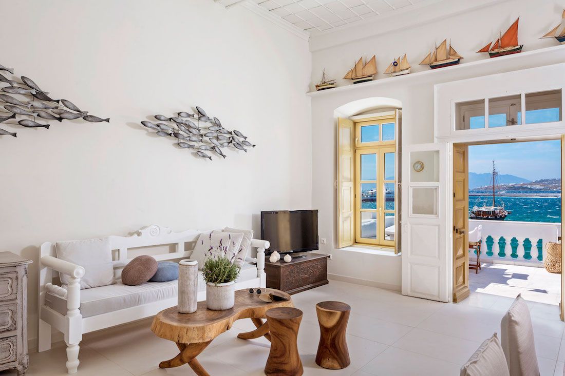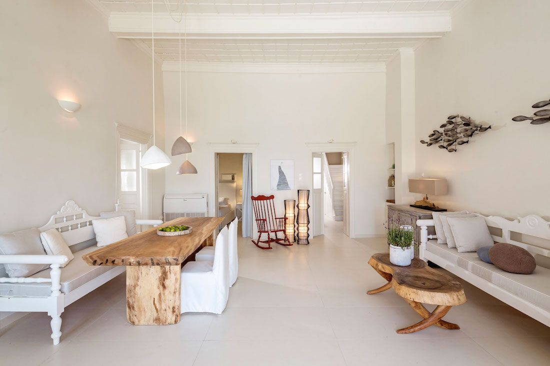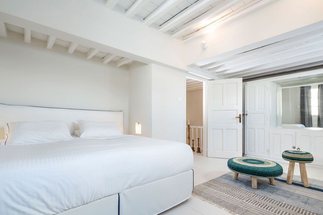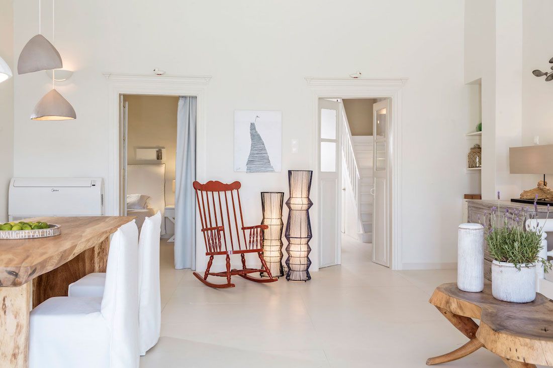 Recently renovated in the year 2014, the architecture of the Chora Villa draws its inspiration from the traditional Mykonian style and showcases the rich cultural heritage with its towering wooden beam ceilings and wide rocky walls. The villa has now been fitted with new technology double glazing soundproof windows that provide effective noise insulation from the bustling city atmosphere to keep the interiors quiet and calm.